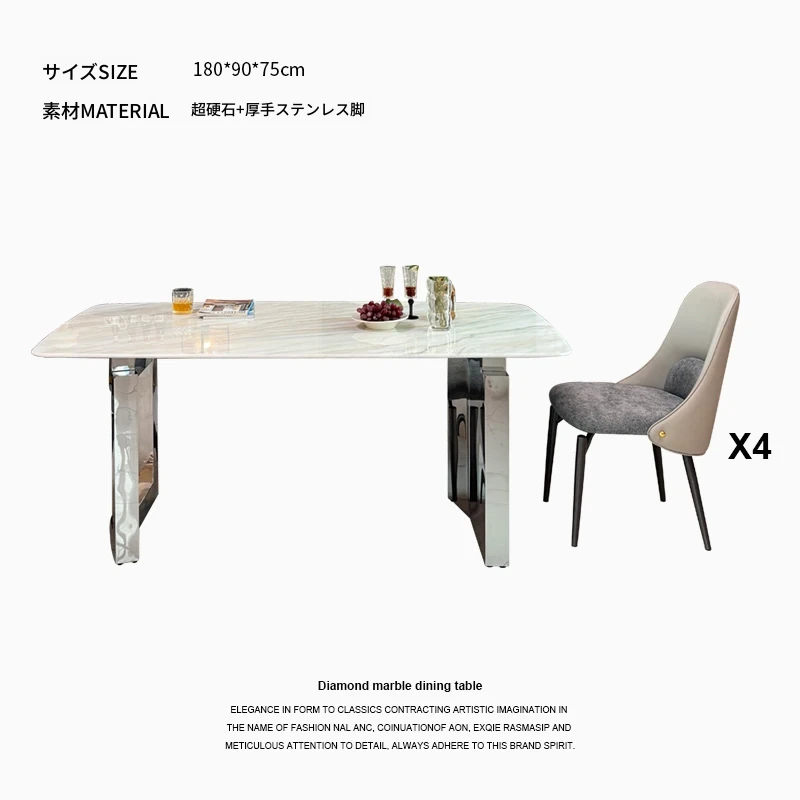 1.8メートル大理石ダイニングテーブル+4椅子