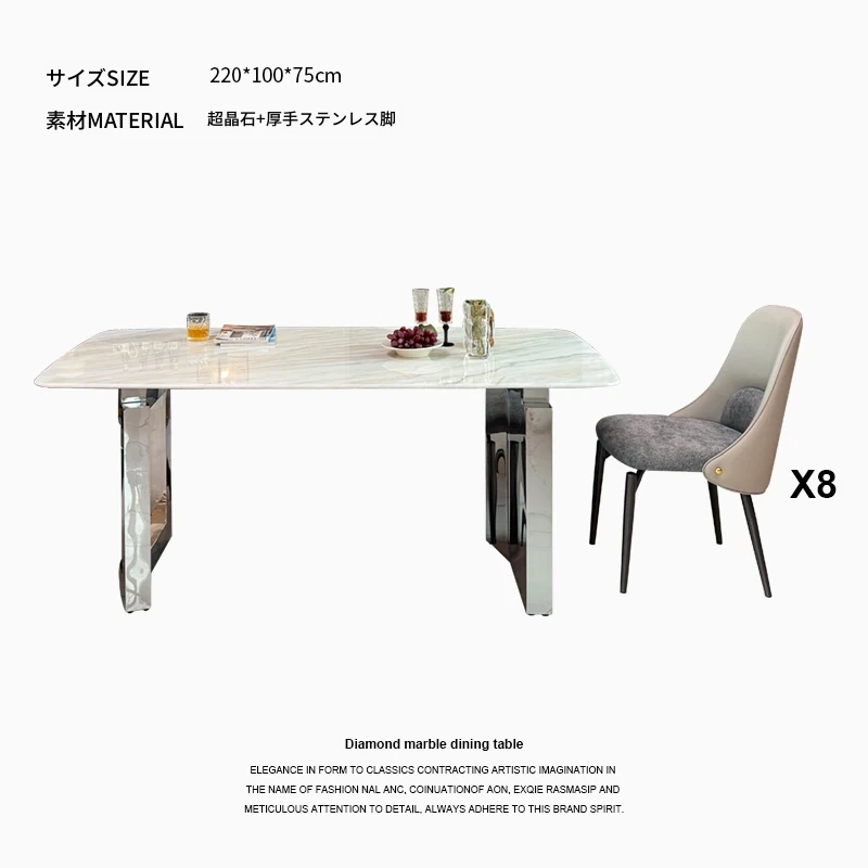 2.2メートル大理石ダイニングテーブル+8椅子