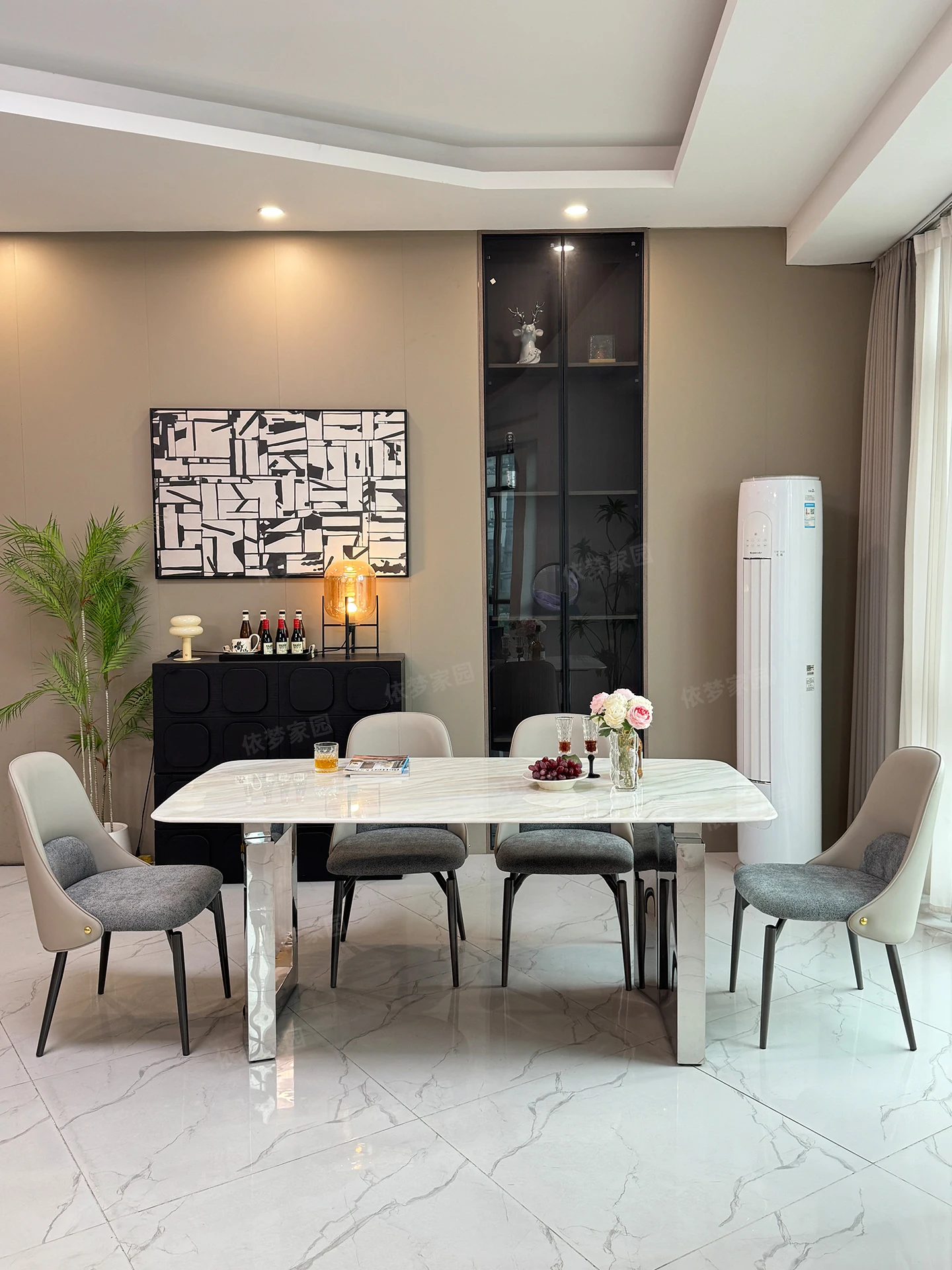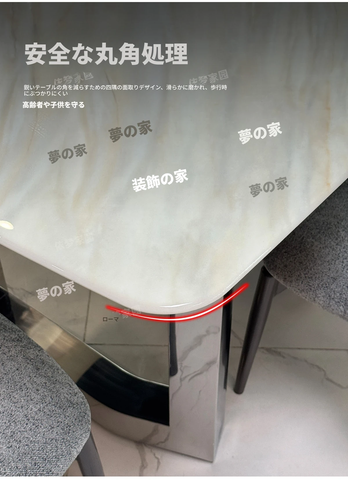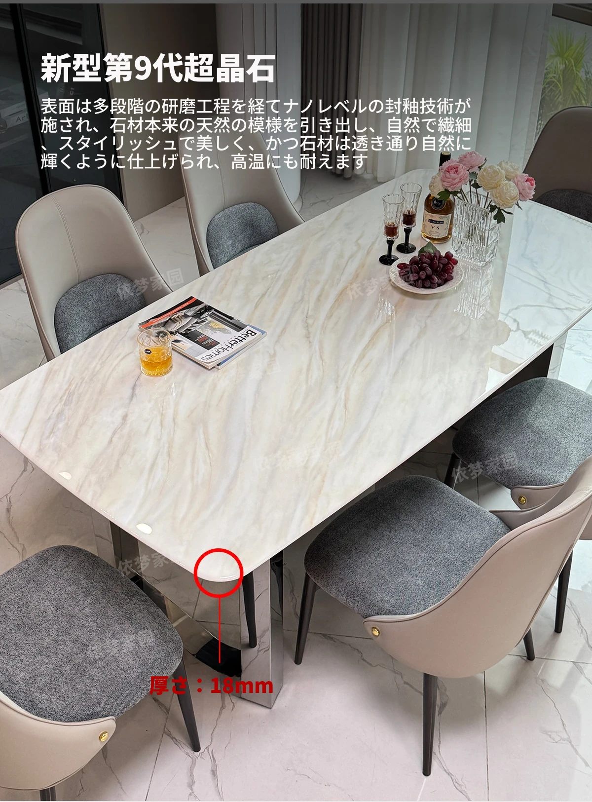 1.8メートル大理石ダイニングテーブル+6椅子