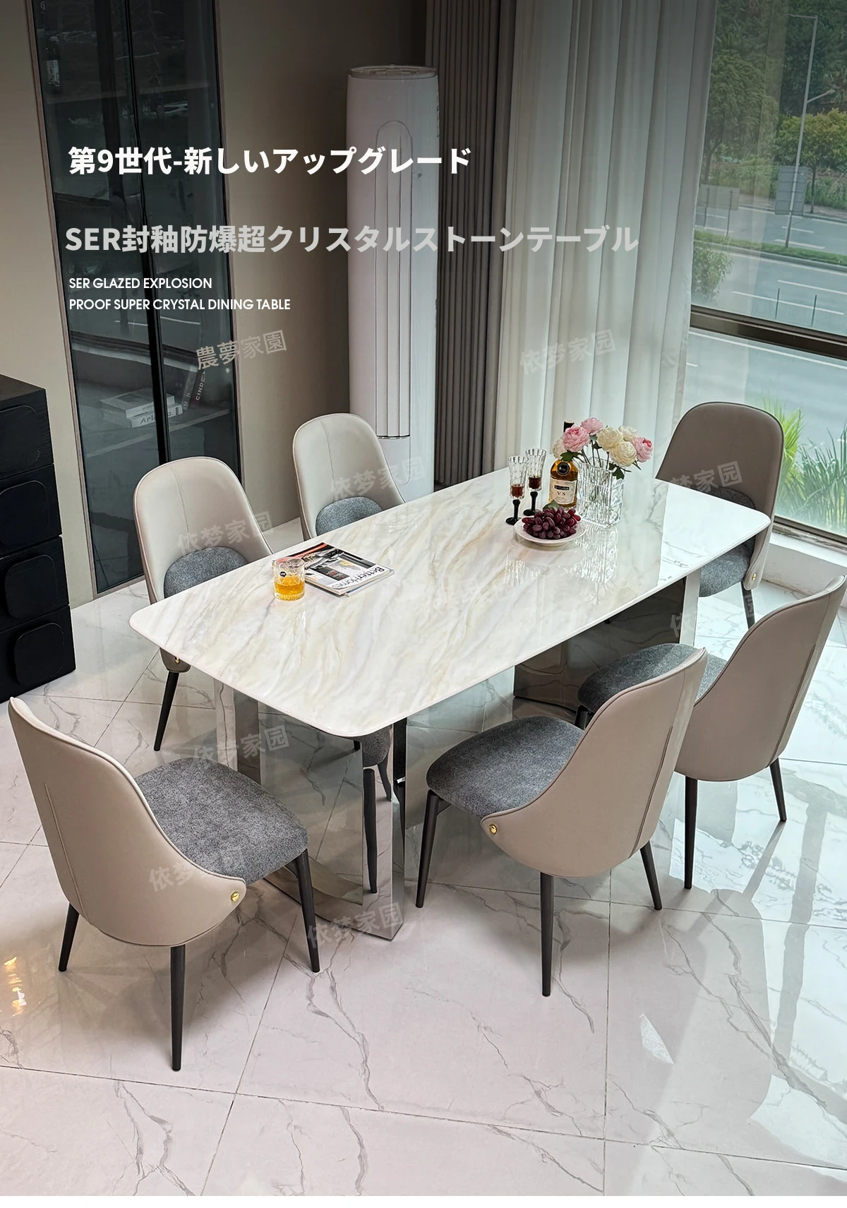 2.4メートル大理石ダイニングテーブル+8椅子