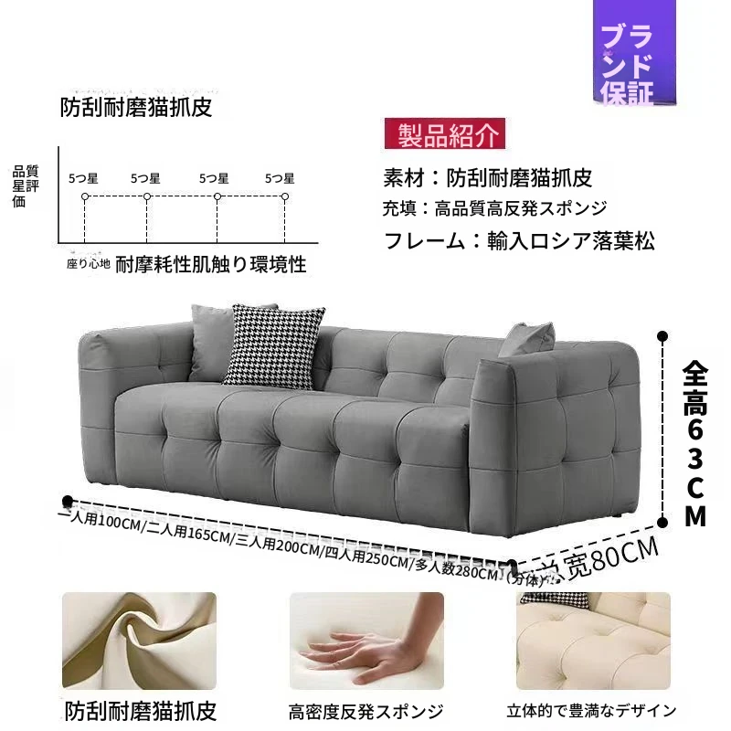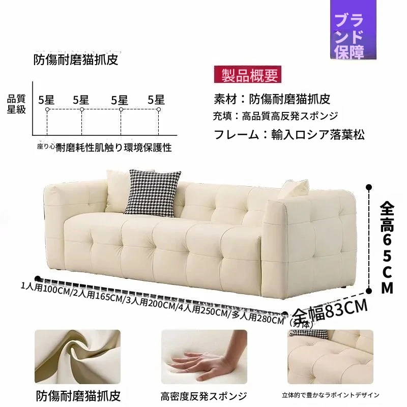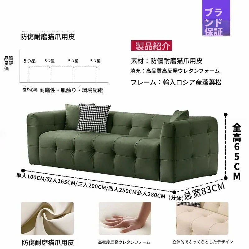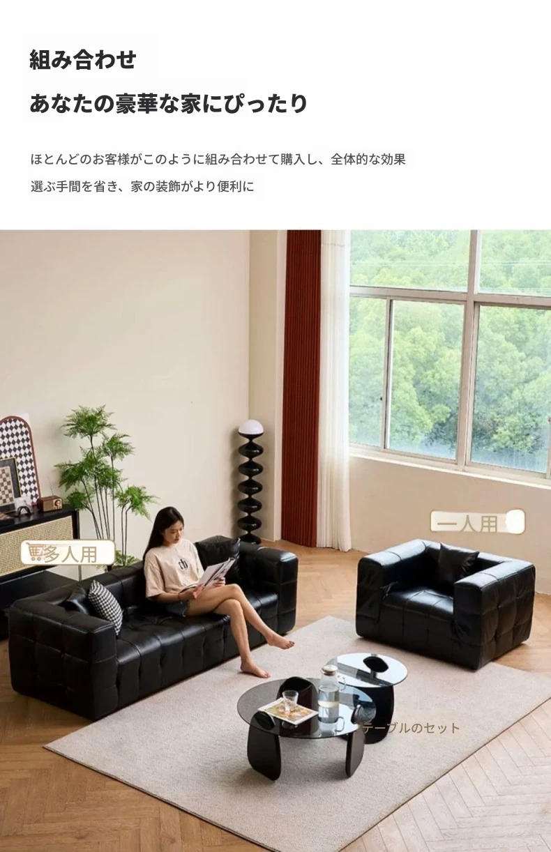 香港送料無料!現代風皮革ソファー、豆腐ブロックデザインのイタリアンミニマリズム。小型リビングに最適な3人掛けコンビネーションソファ。シンプルでスタイリッシュな空間を実現します!