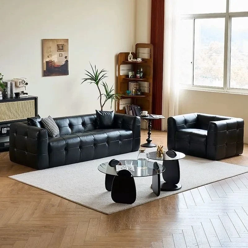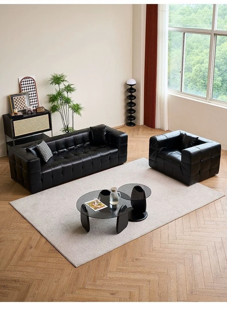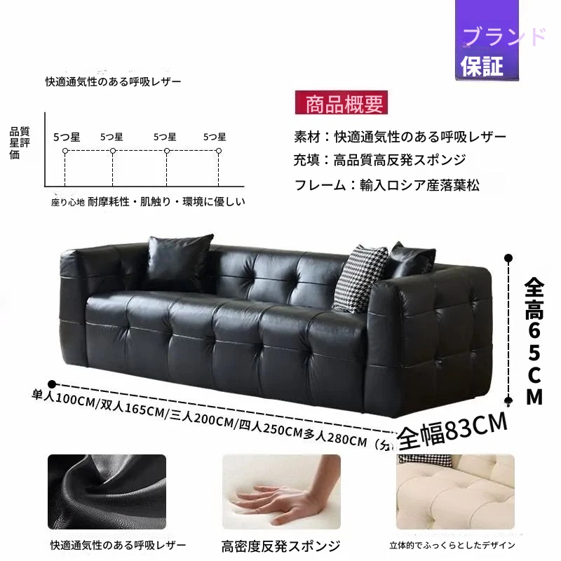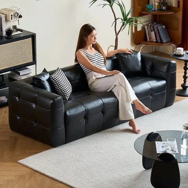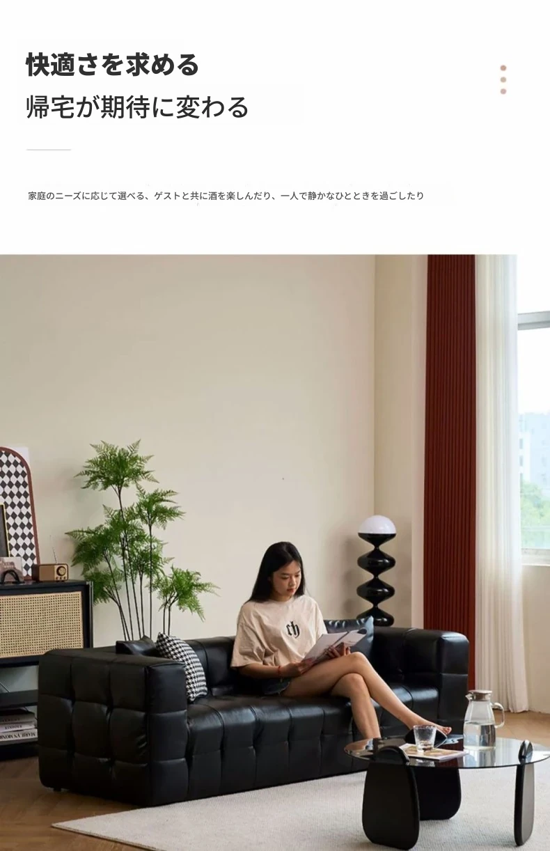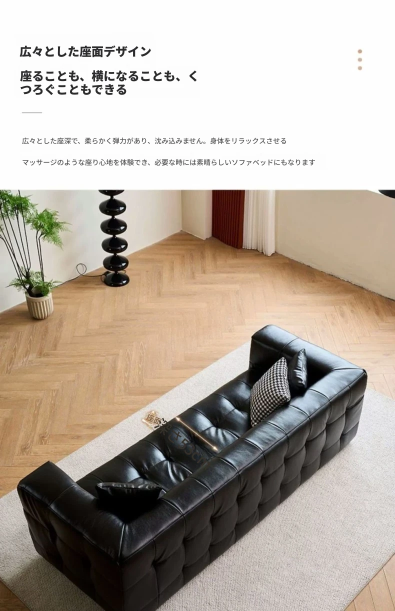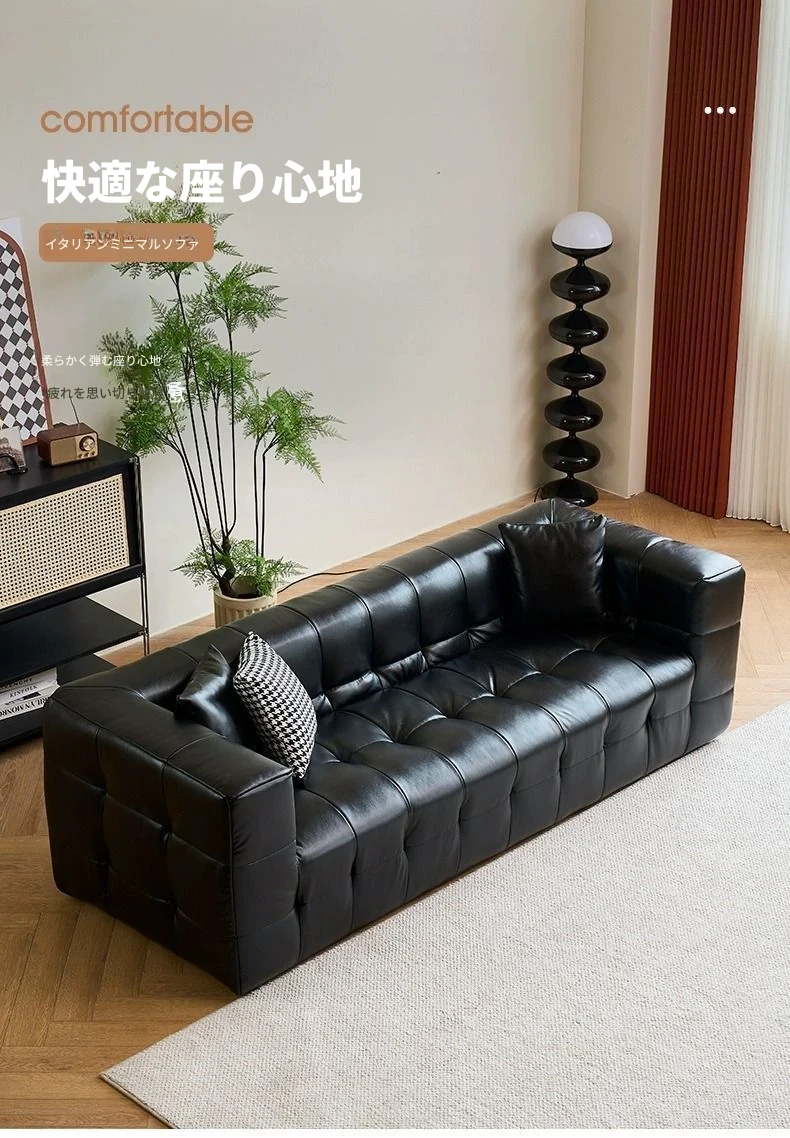 イタリアンミニマルスタイルの本革大黒牛ソファ - 高級S級トップレザー使用、夏にぴったりの快適なリビング空間を演出!