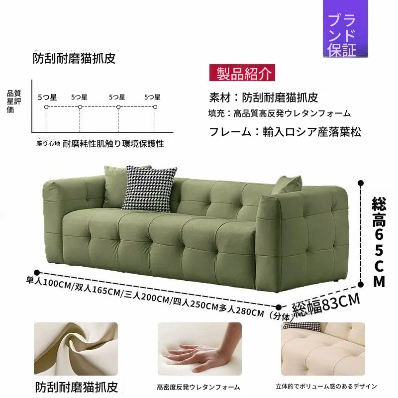 モダンミニマリスト大帆船デザイン布製ソファ|イタリアンスタイルのシンプルな小型リビング向けラテックスソファ|新登場!おしゃれで快適な空間を演出します。