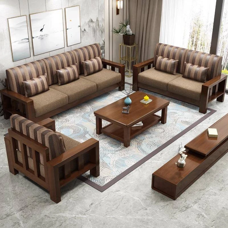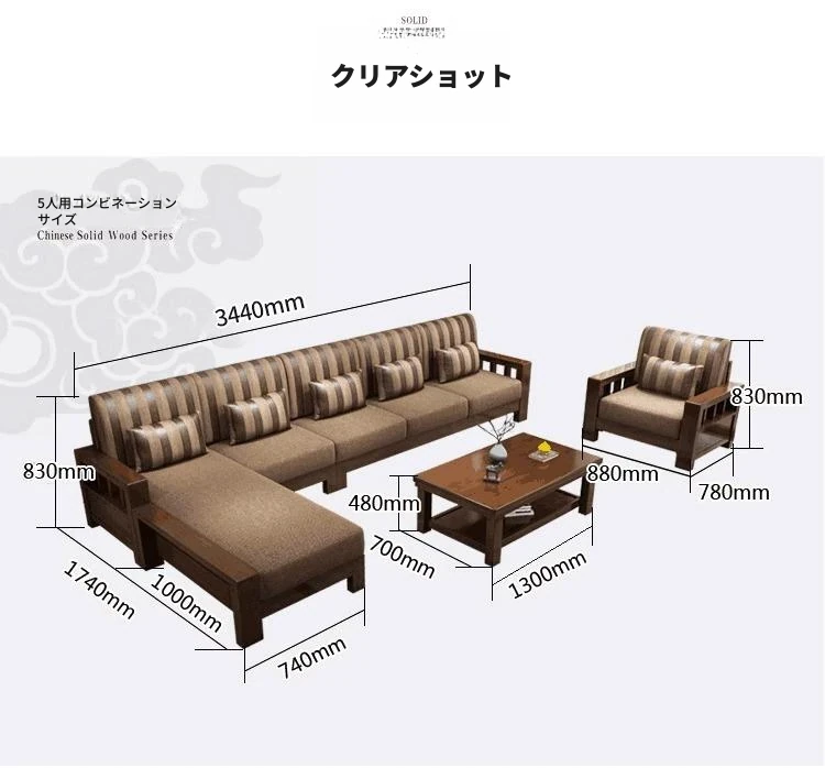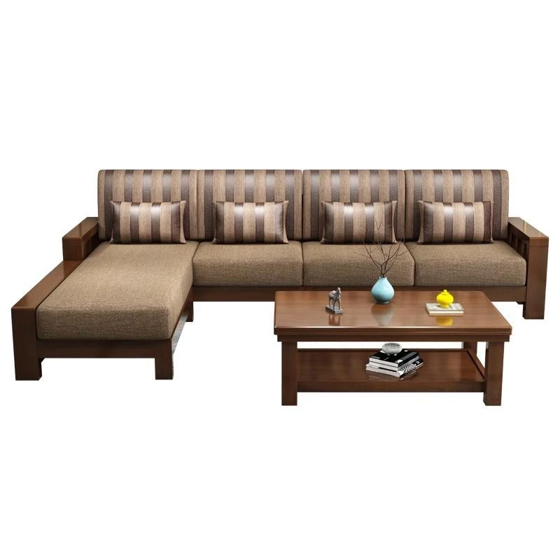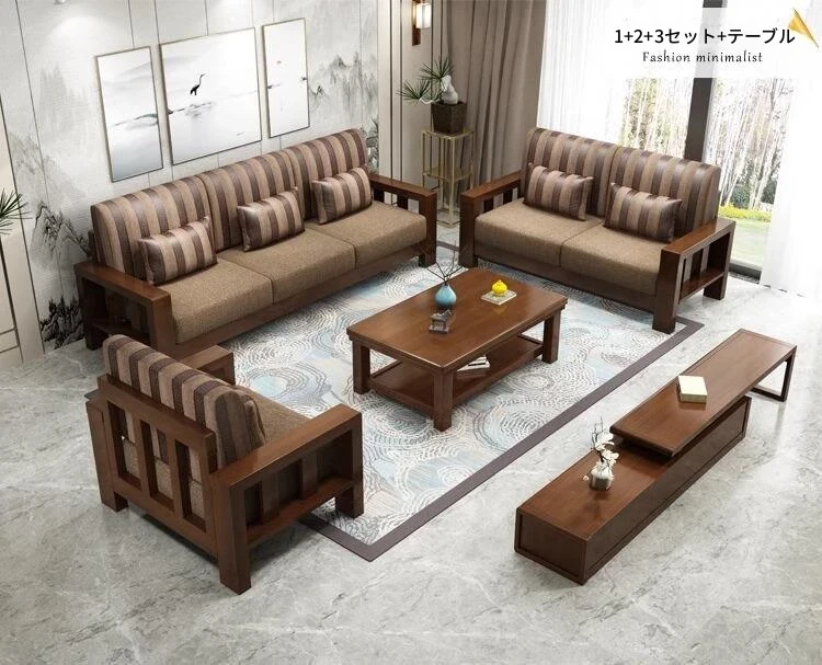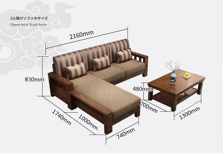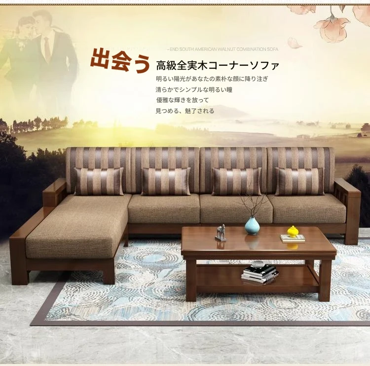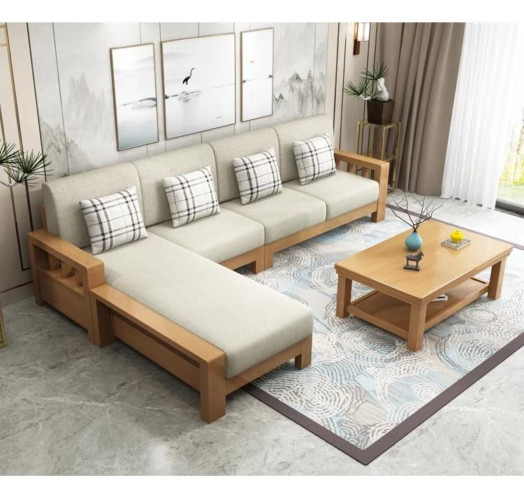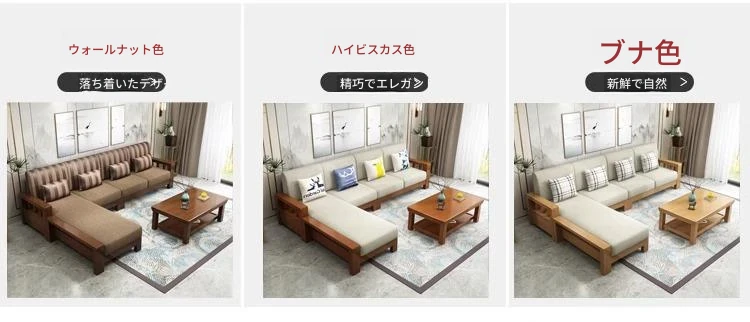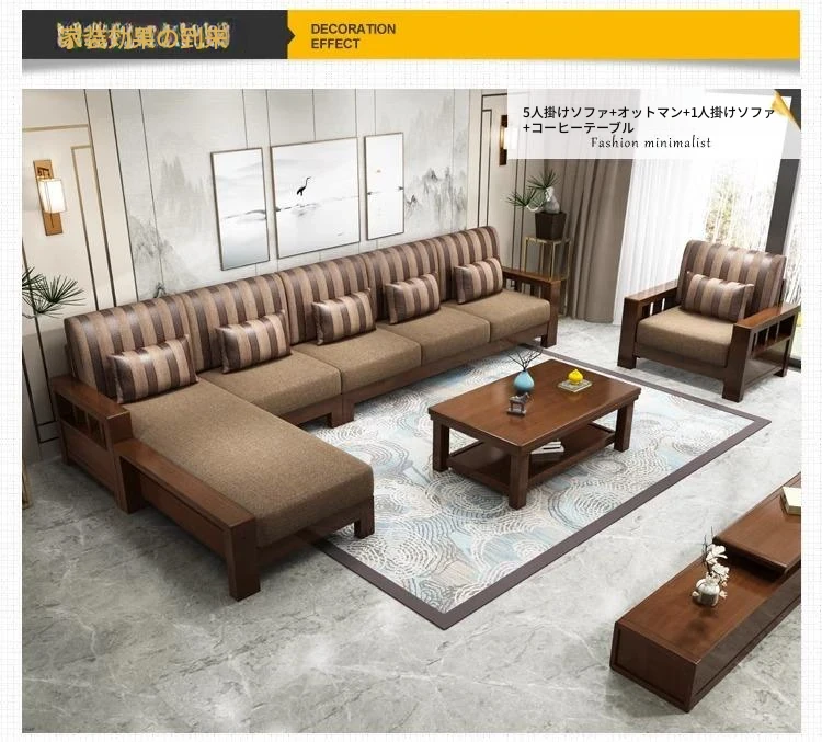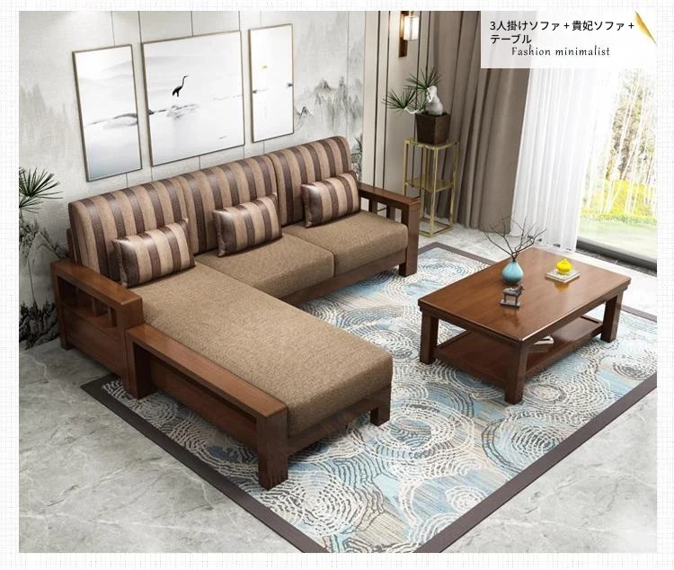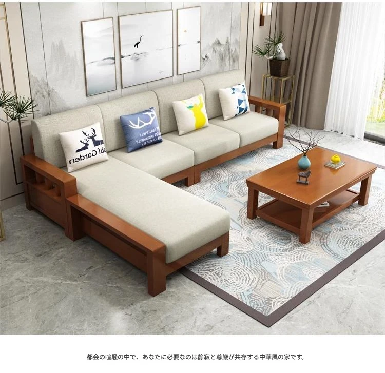 現代的シンプルな中式デザイン!実木製のファブリックソファ、コーナータイプ&収納付き、コンパクトな小型住宅に最適な家具。おしゃれで機能的な空間を演出します!