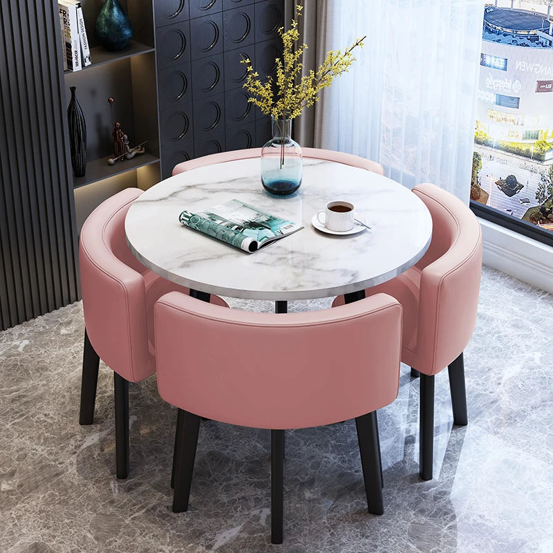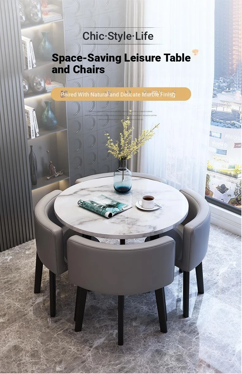 Modern Minimalist Folding Dining Table for Small Spaces - Round Table Set for Home, Casual Meetings, and Reception Areas