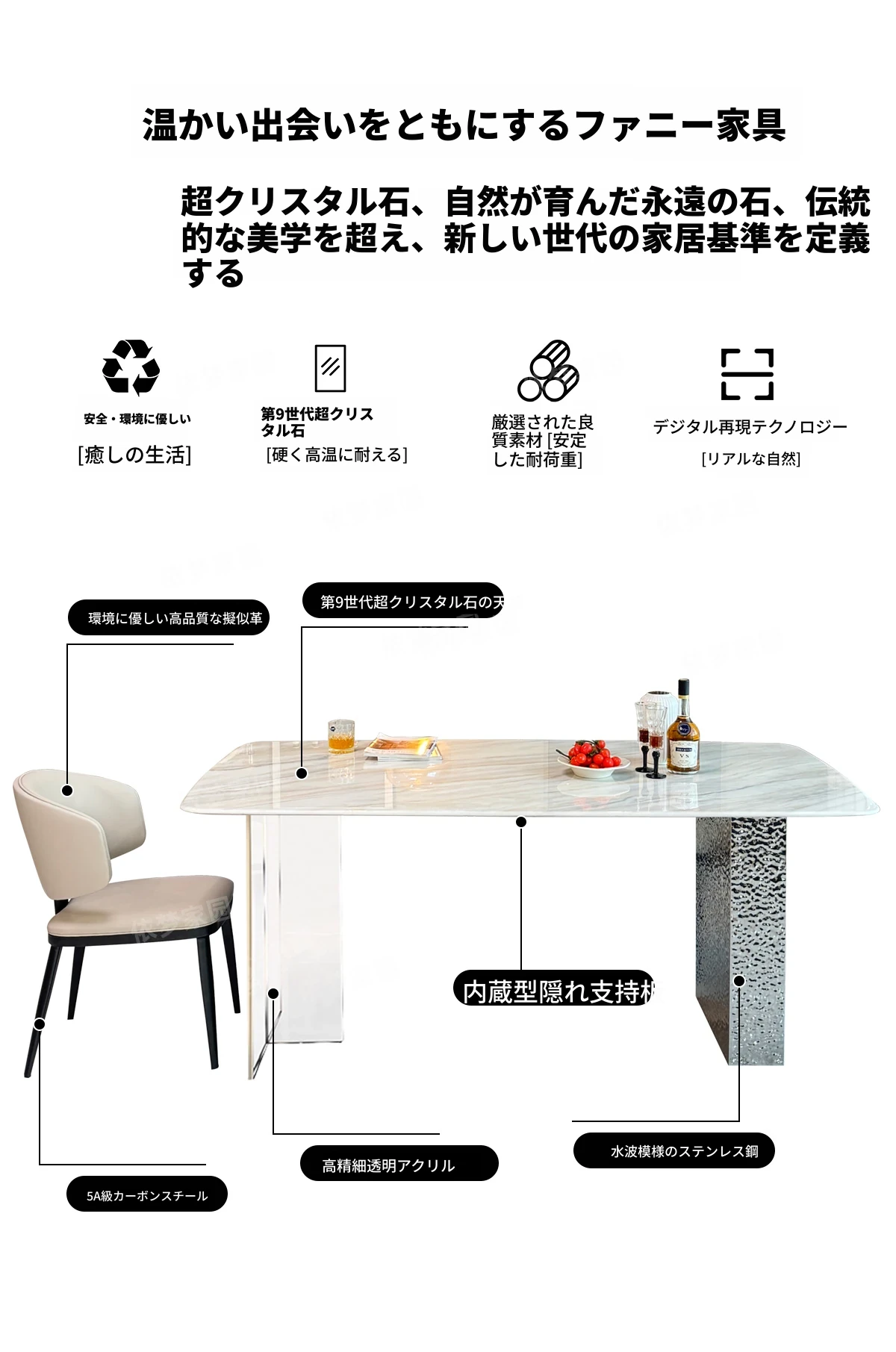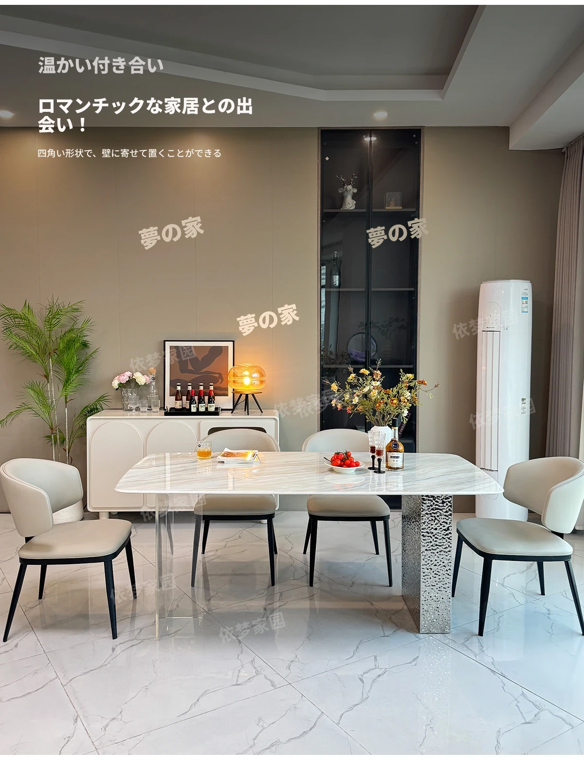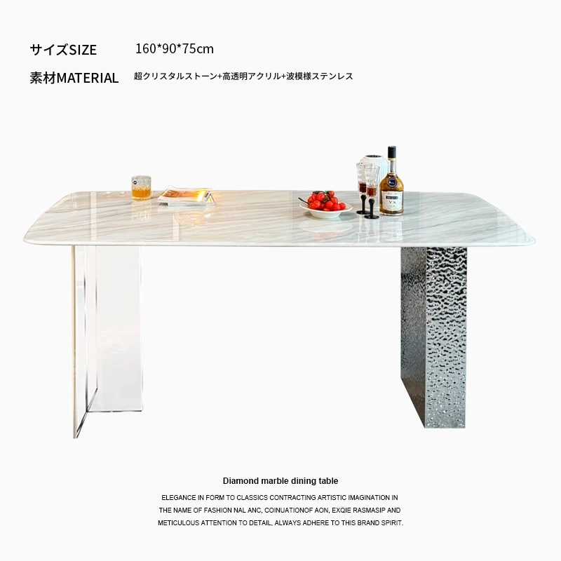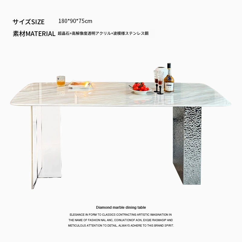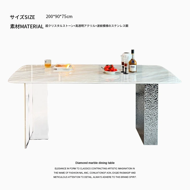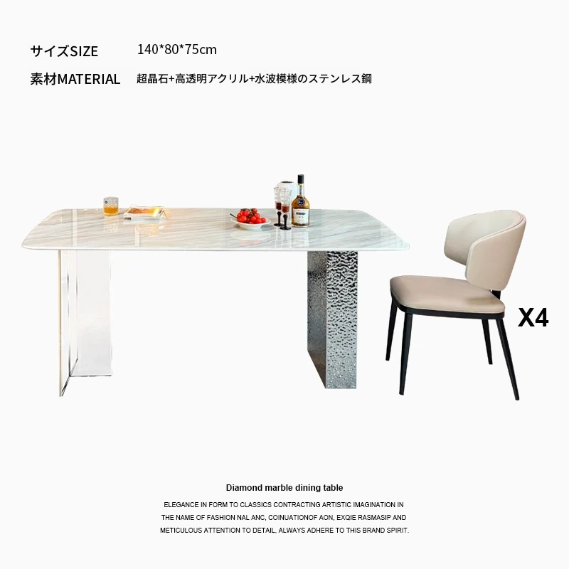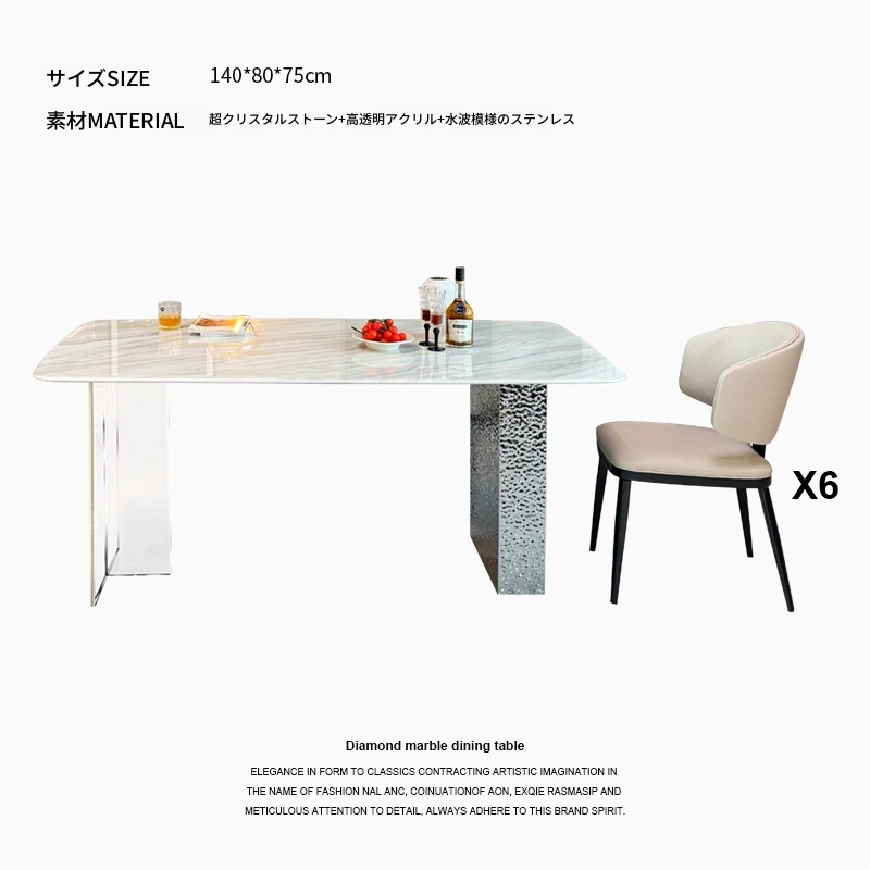 高級感溢れる軽奢大理石ダイニングテーブルセット|モダンシンプルデザインの長方形超晶石テーブル|おしゃれで使いやすい家庭用食卓|食事を特別なひとときに演出します!