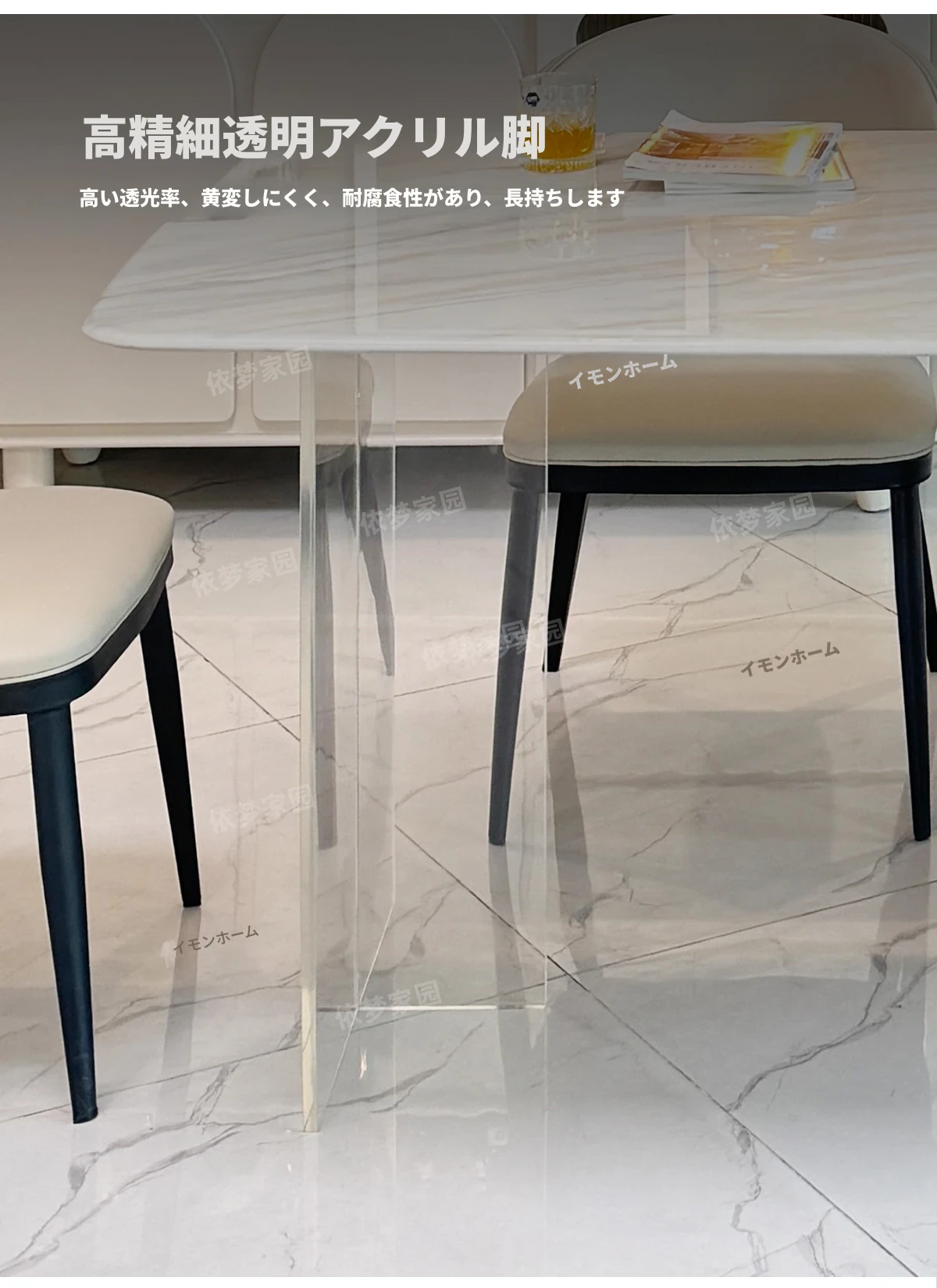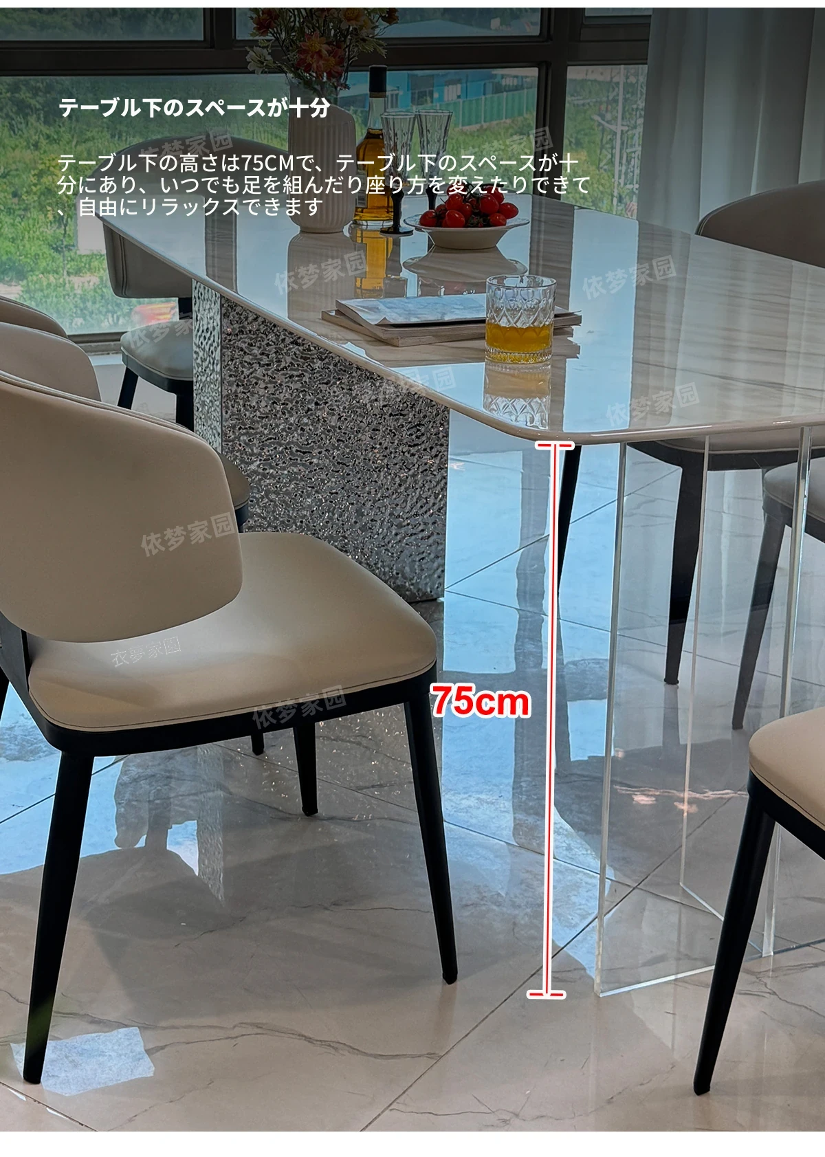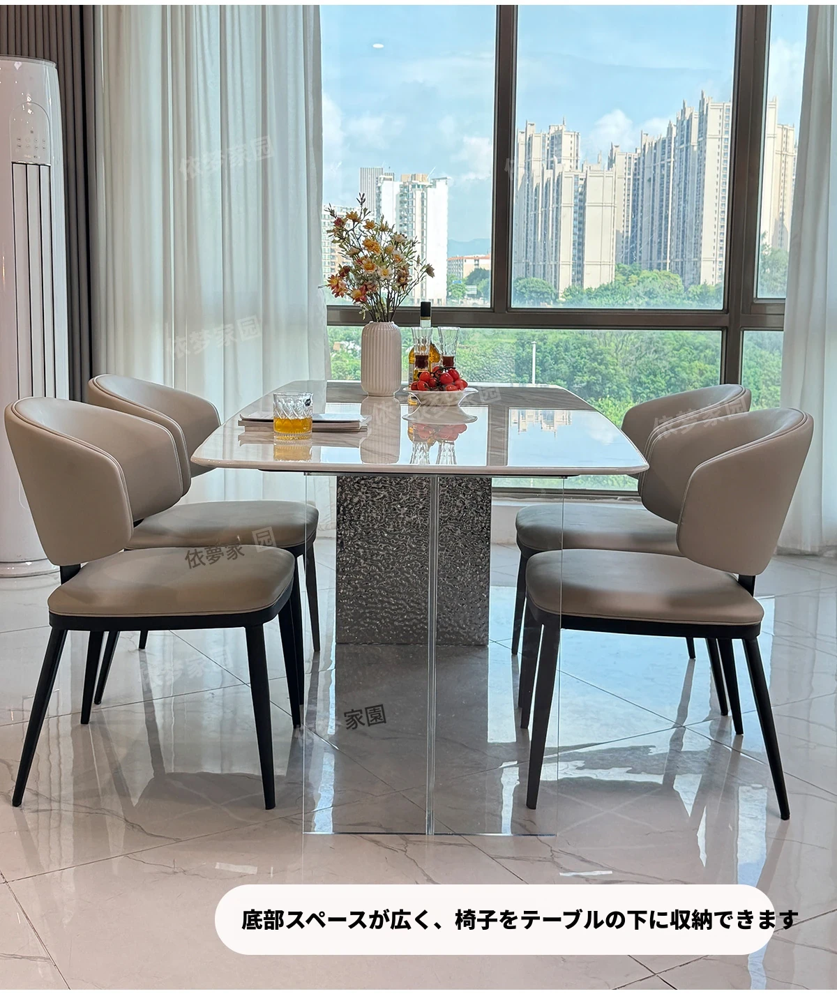 2.4メートル大理石ダイニングテーブル+4椅子