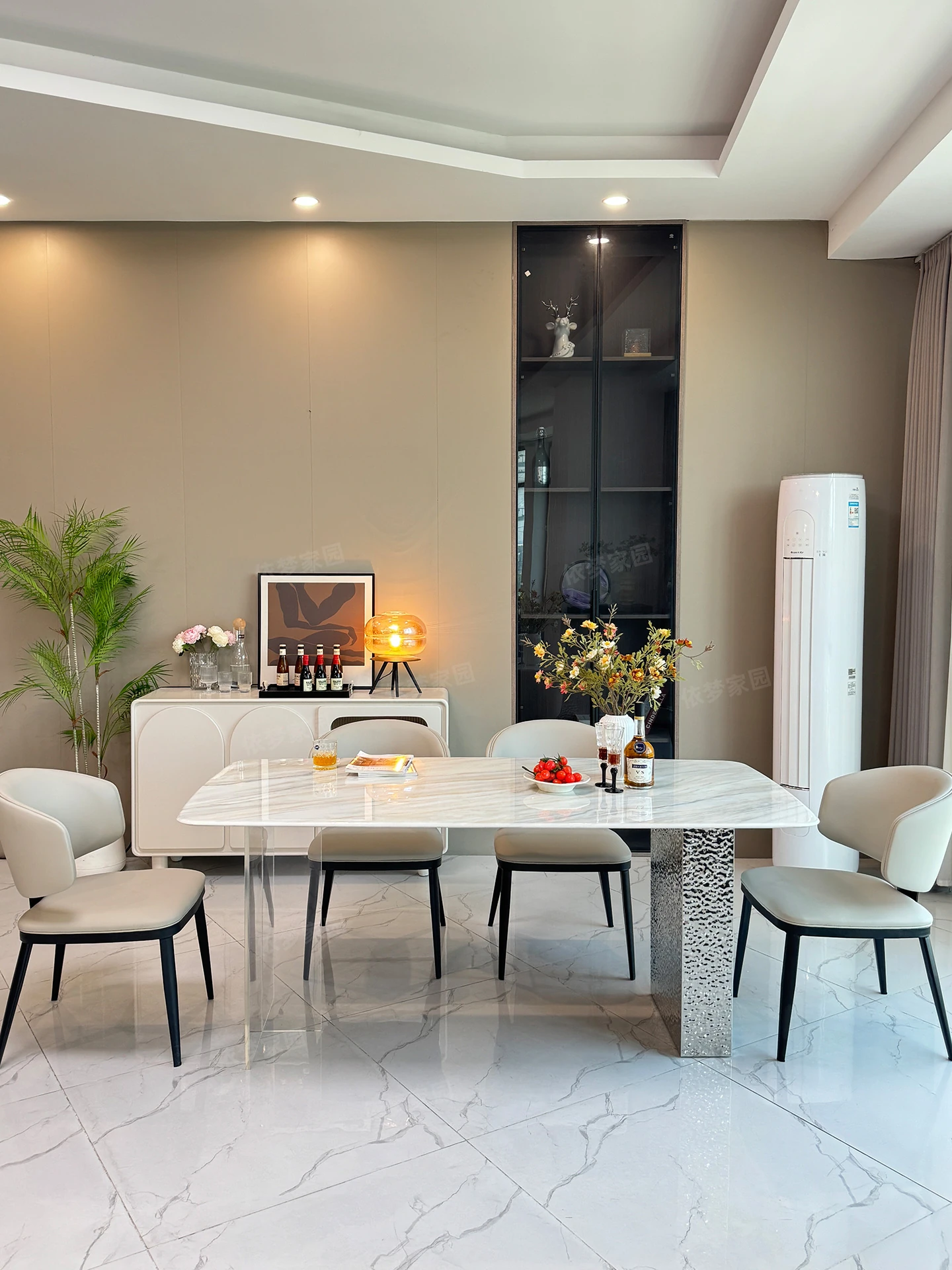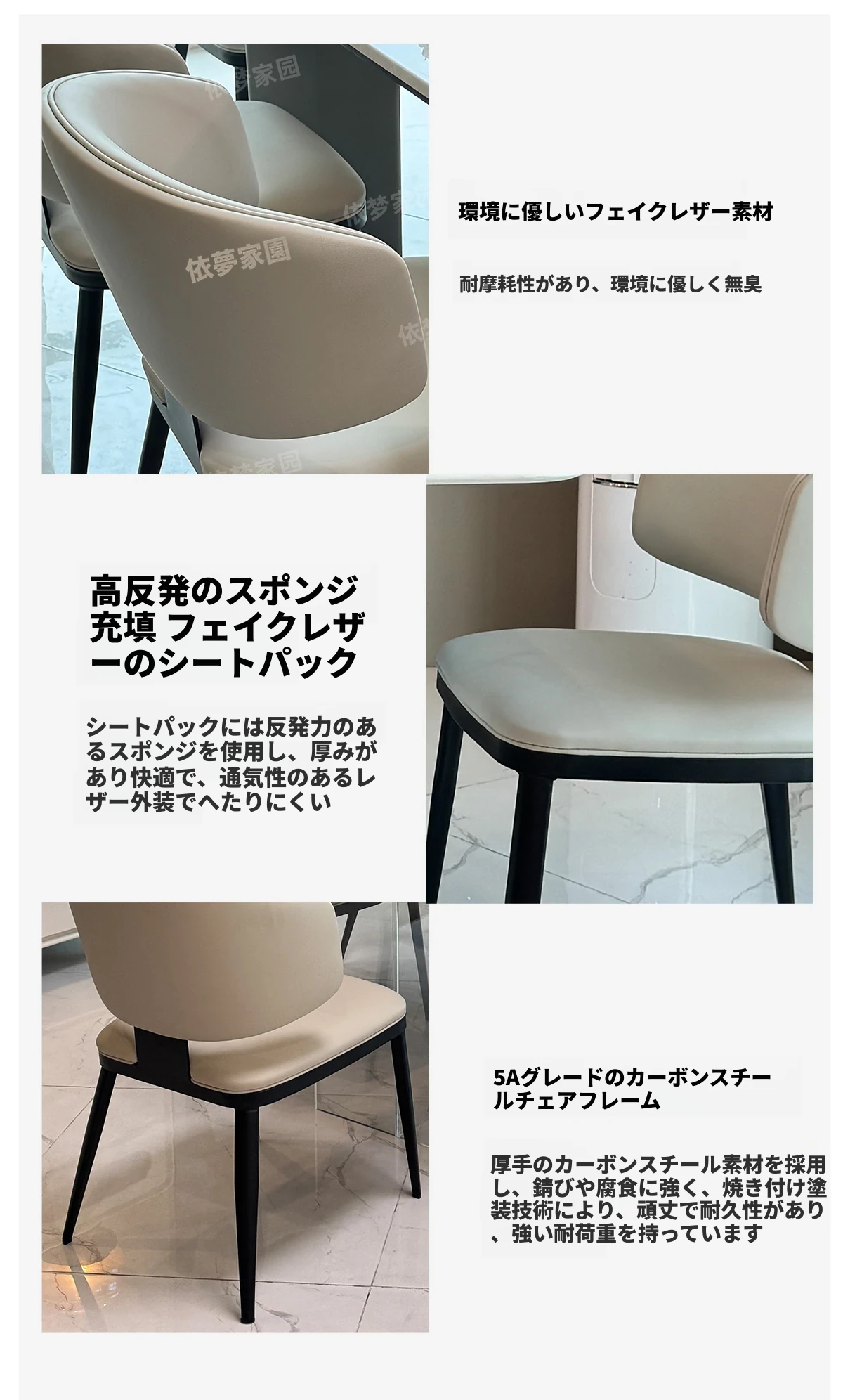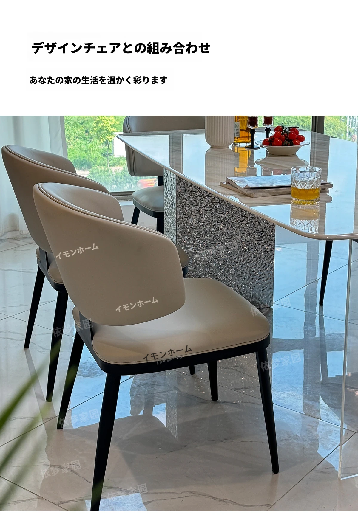 2.4メートル大理石ダイニングテーブル+4椅子
