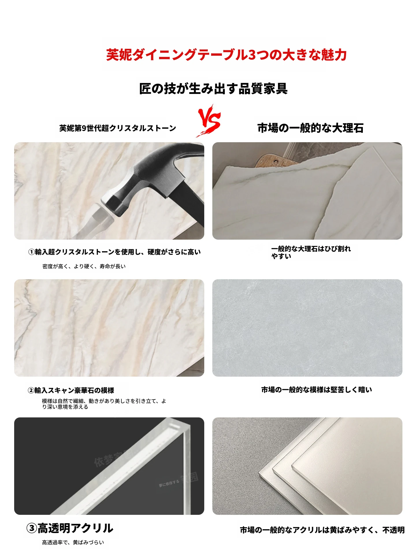 2.4メートル大理石ダイニングテーブル+6椅子