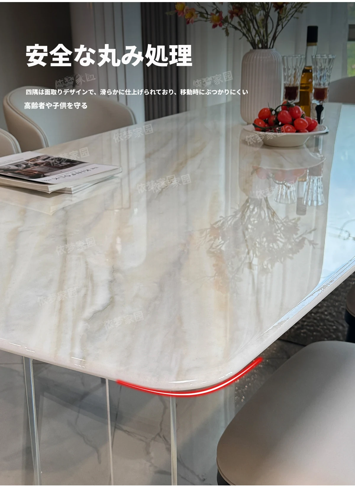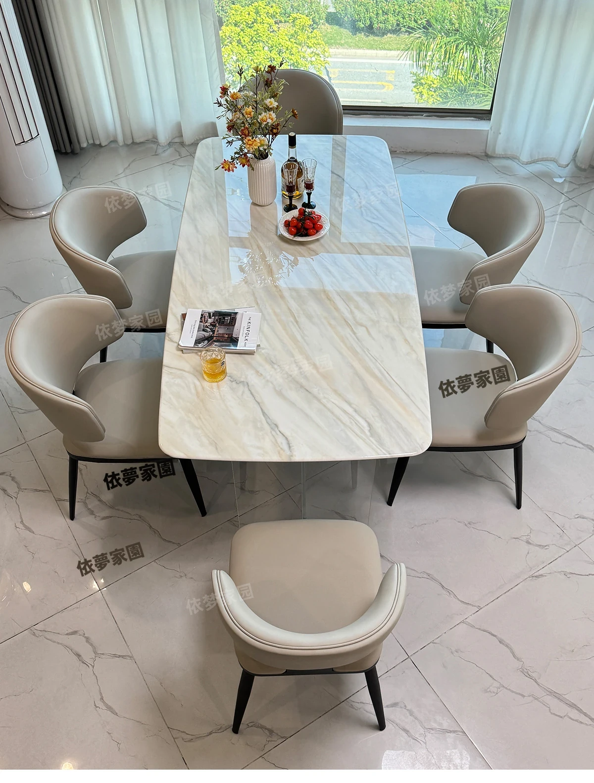 1.8メートル大理石ダイニングテーブル+6椅子