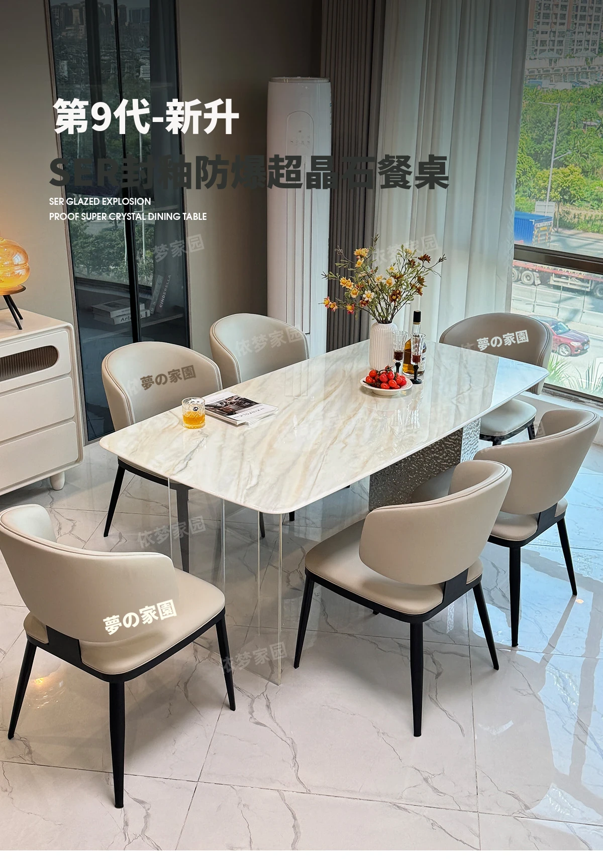 2.4メートル大理石ダイニングテーブル+8椅子