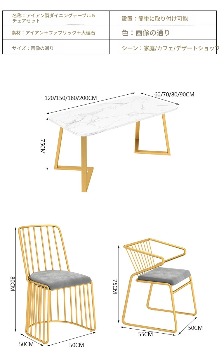 モダンでシンプルな大理石製のカジュアルダイニングテーブル&チェアセット。北欧スタイルで、スイーツやドリンクにぴったり!おしゃれなカフェやティールームに最適な人気のテーブルです。