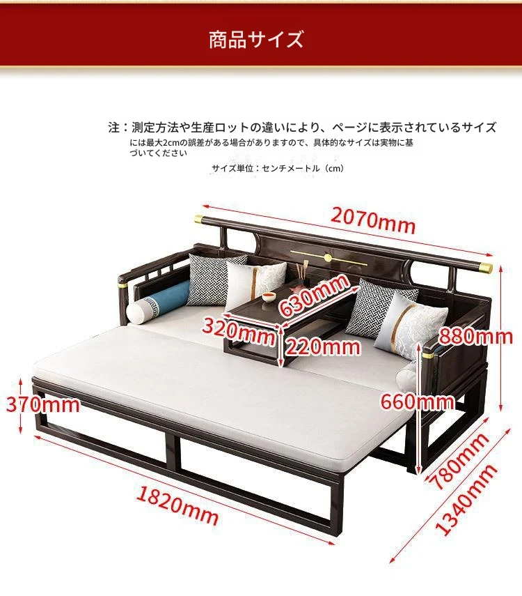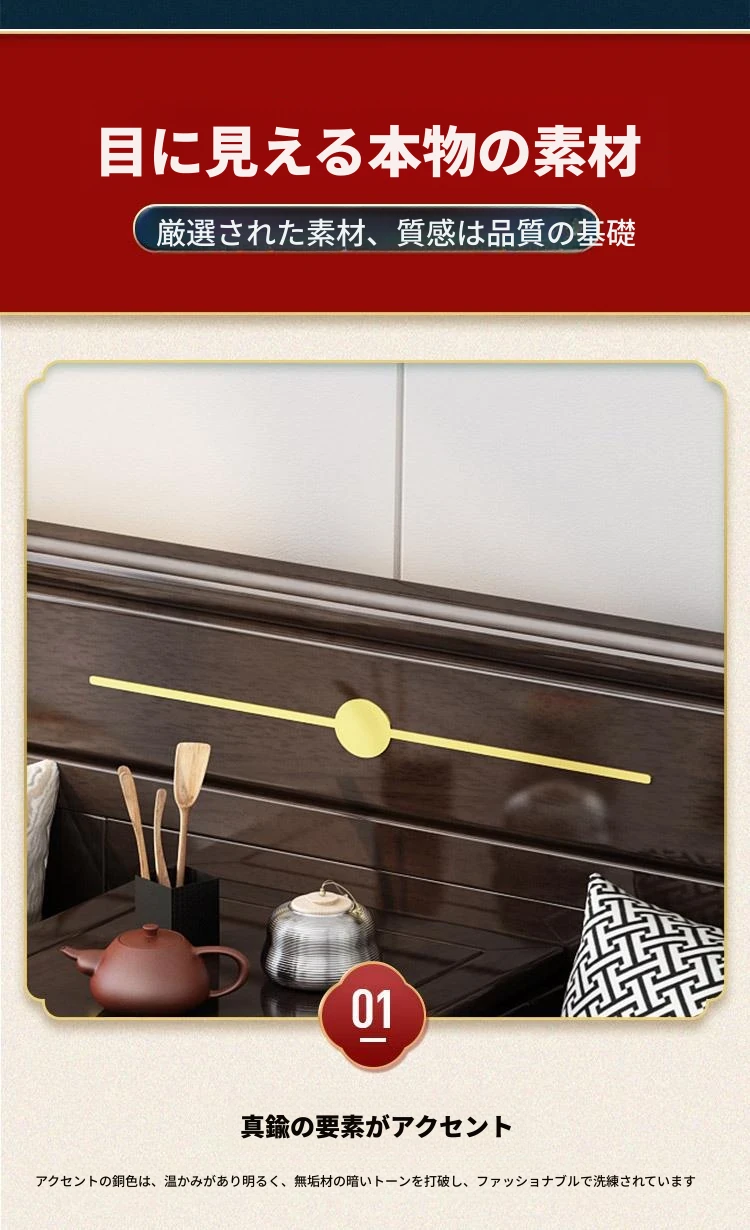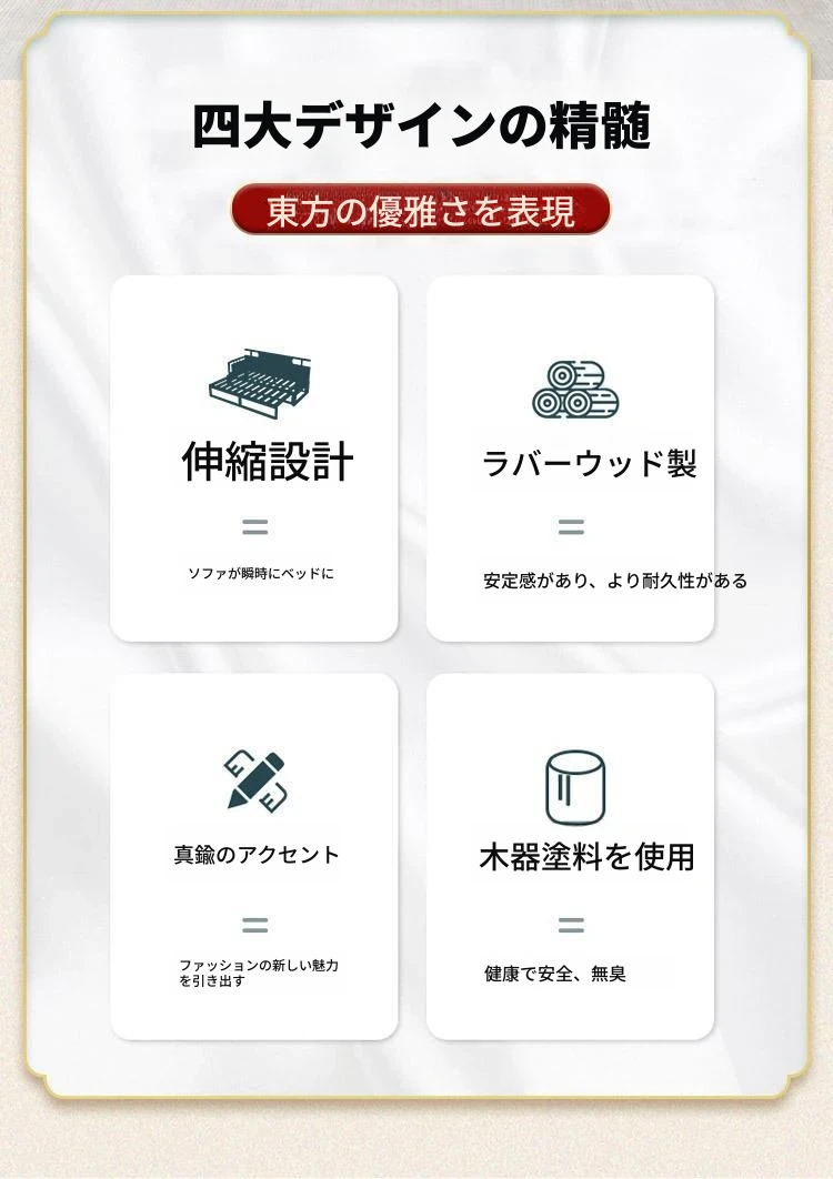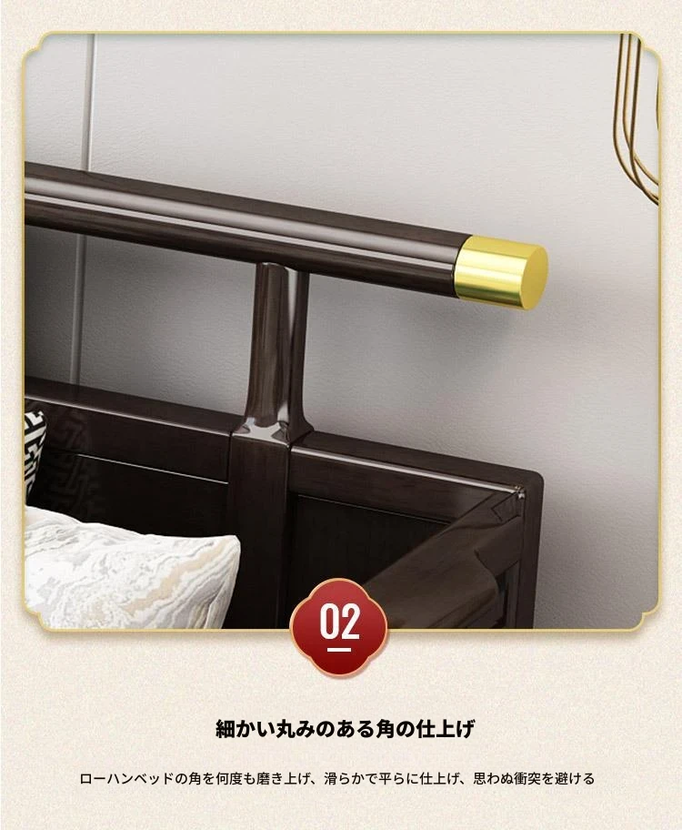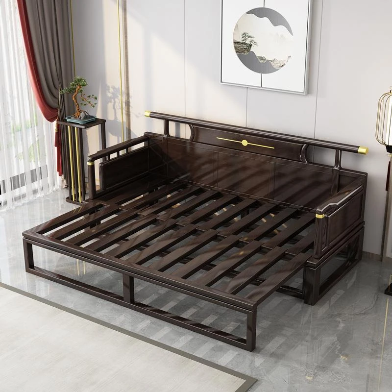 現代新中式の無垢材ローハンソファベッド - シンプルでスタイリッシュな小型リビングに最適!引き出し式の多機能ベッドで、快適な寝心地とおしゃれな空間を実現。ローハンベッドでリラックスしたひとときをお楽しみください。