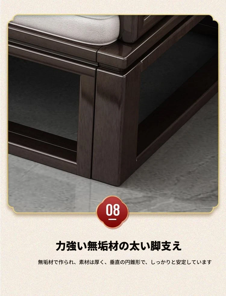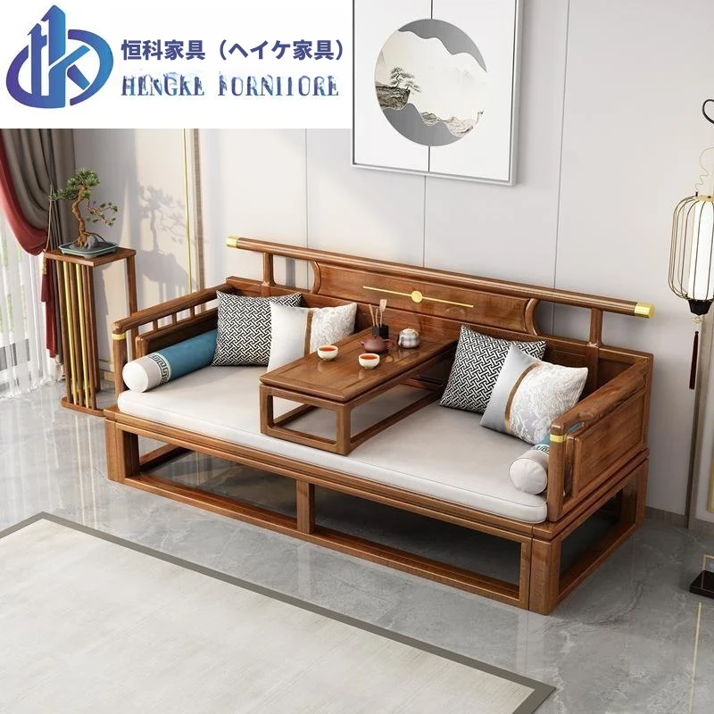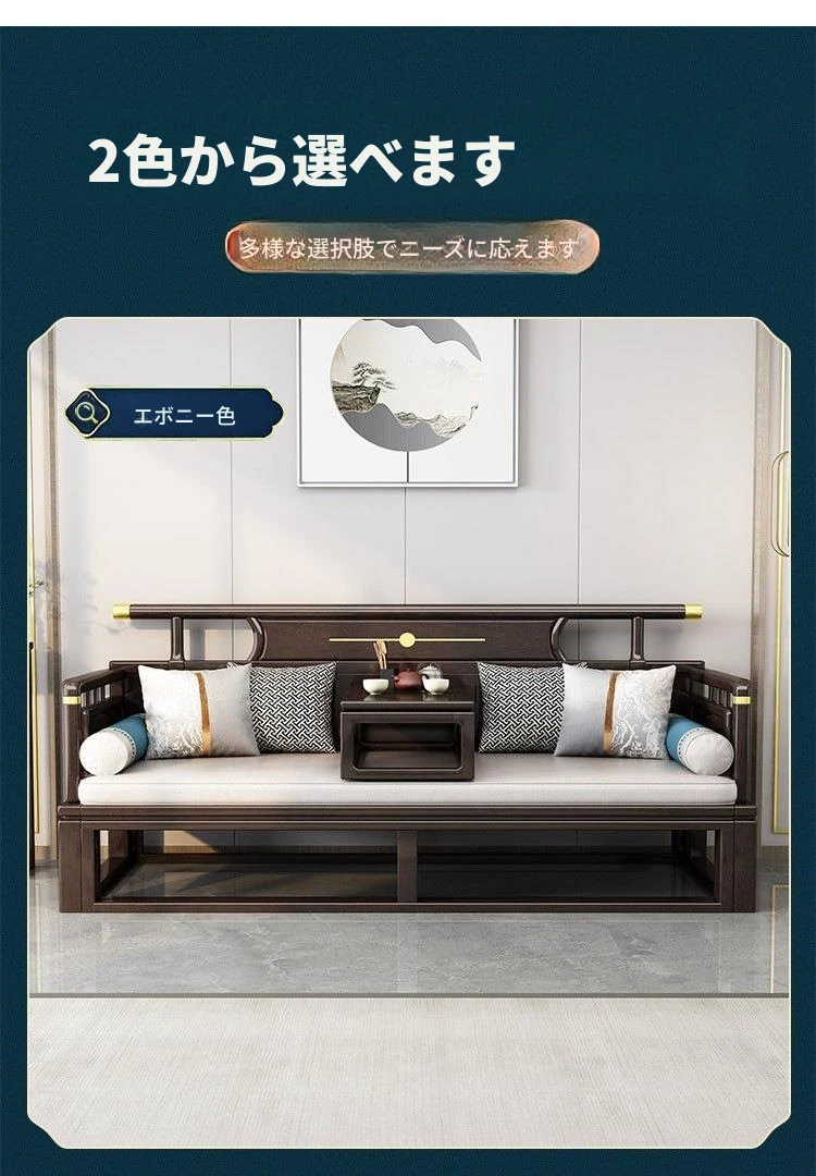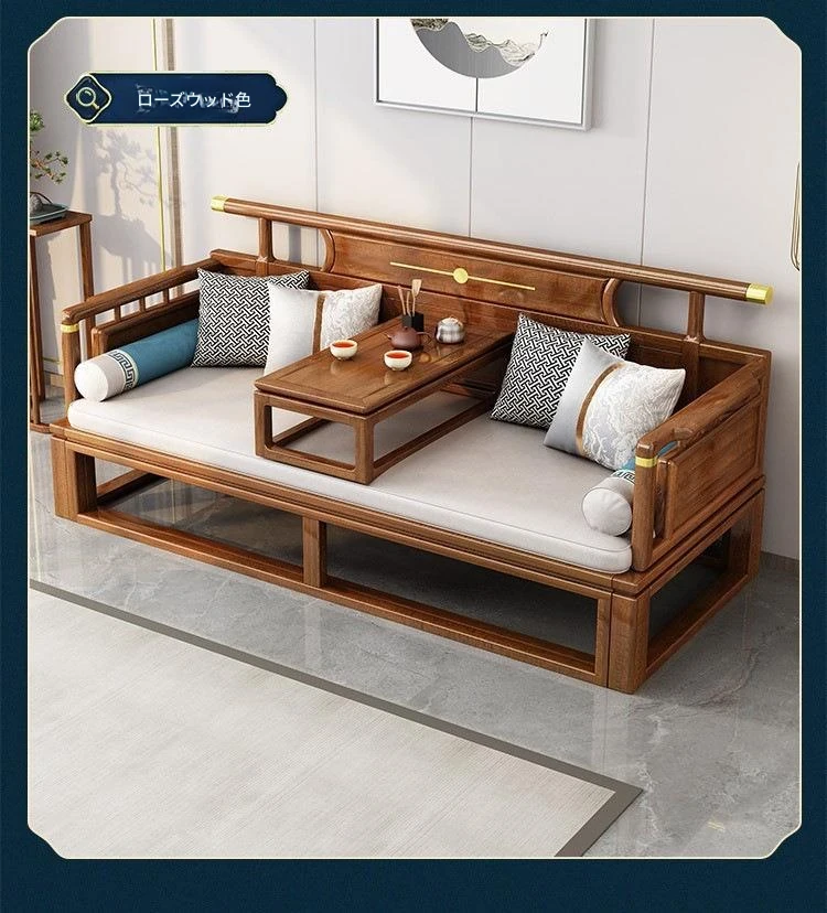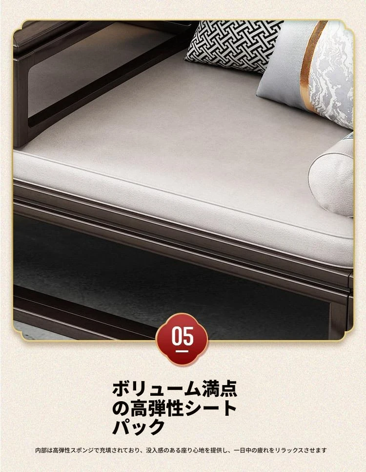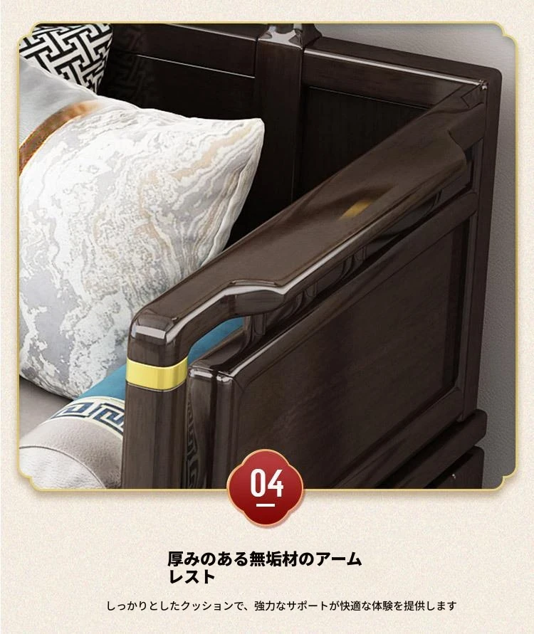新中式スタイルのコンパクトソファー|小さいお部屋に最適!冬夏兼用、リビングにぴったりの収納付きコーナーソファ|全木製、ゴムの木使用で高品質!