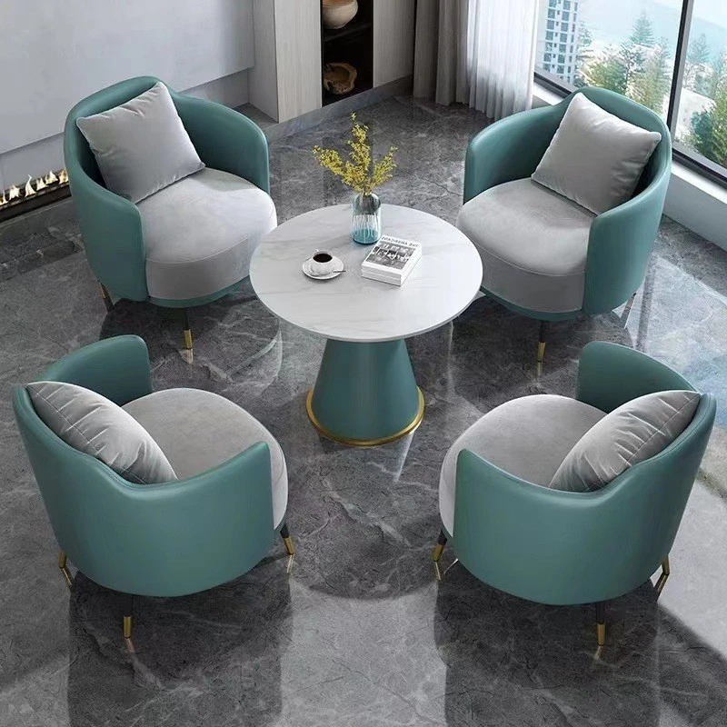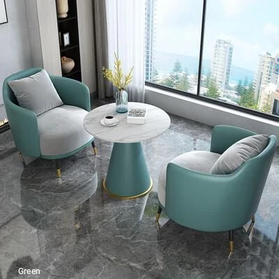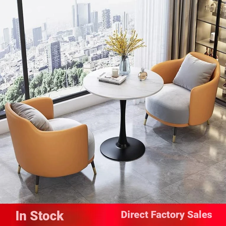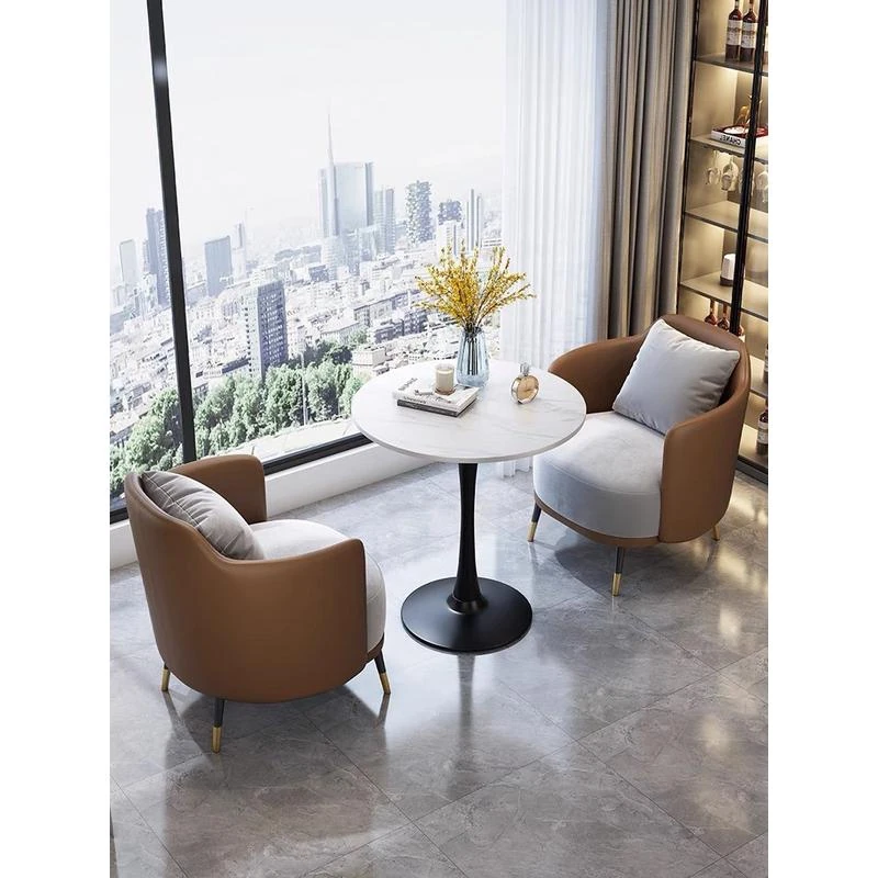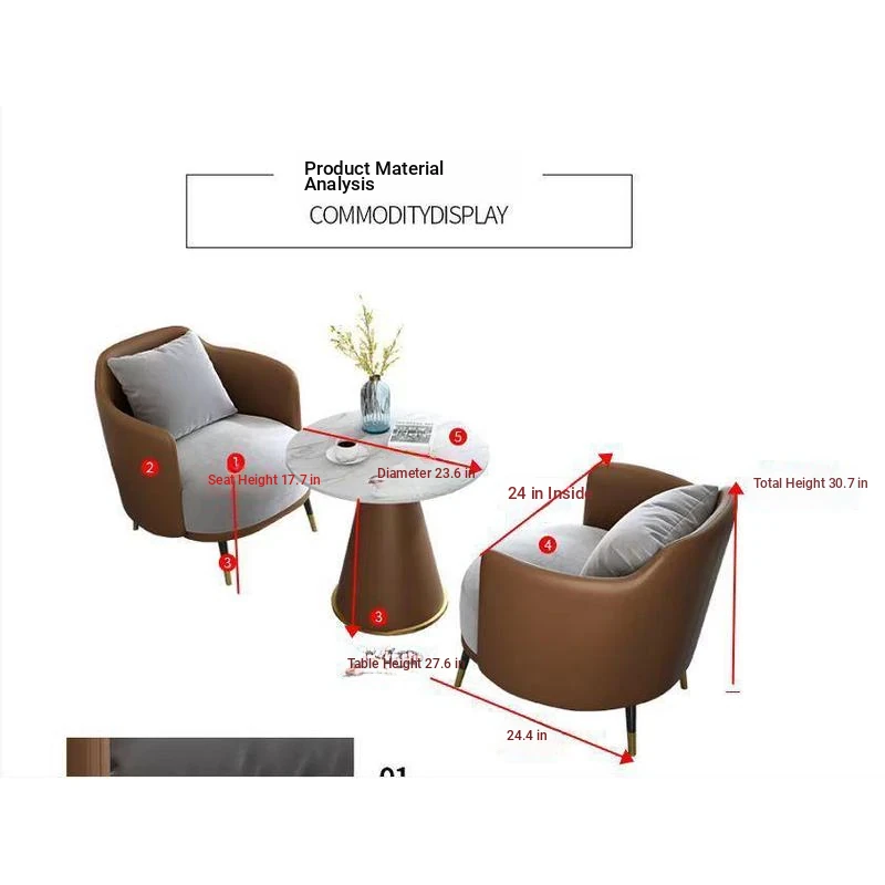 Modern Reception Table and Chair Set - Stylish Negotiation Sofa with Coffee Table, Perfect for Offices and Real Estate Sales, Includes One Round Table and Two Chairs for Comfortable Meetings and Relaxed Conversations.