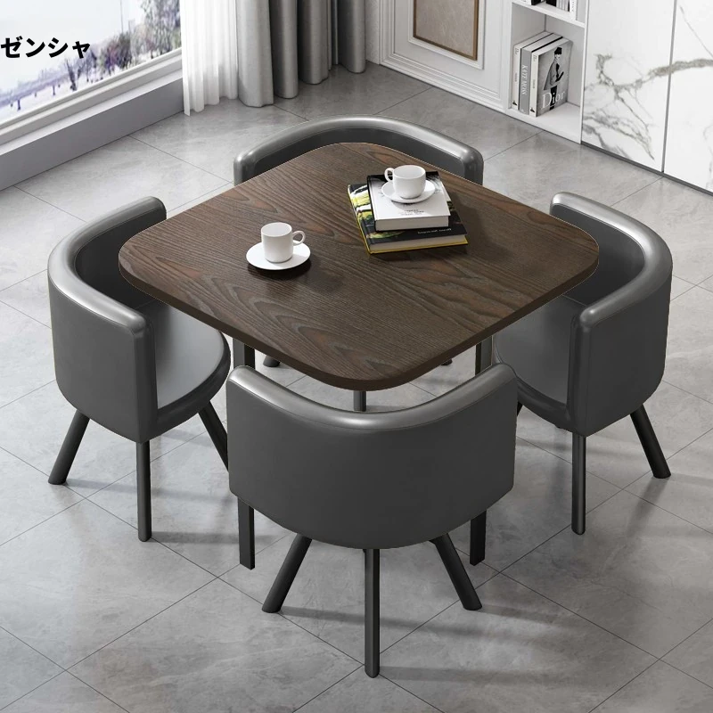 灰色の四角形 + 灰色の皮製椅子 1テーブル4椅子 80*80