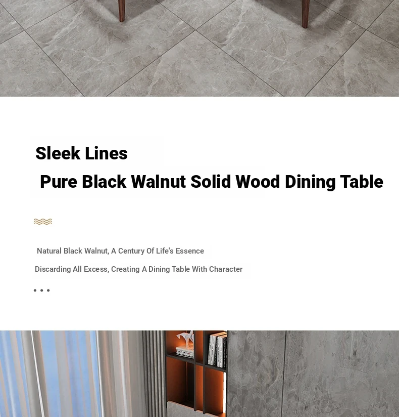 Modern Scandinavian Style Black Gold Wood and Marble Dining Table Set - Includes 1 Rectangular Solid Wood Table and 6 Chairs - Elegant and Minimalist Design for Contemporary Dining Spaces