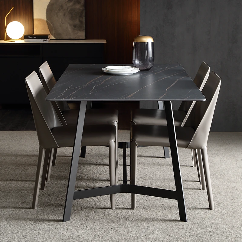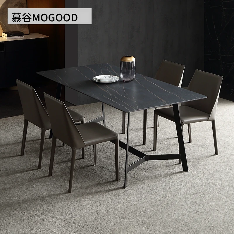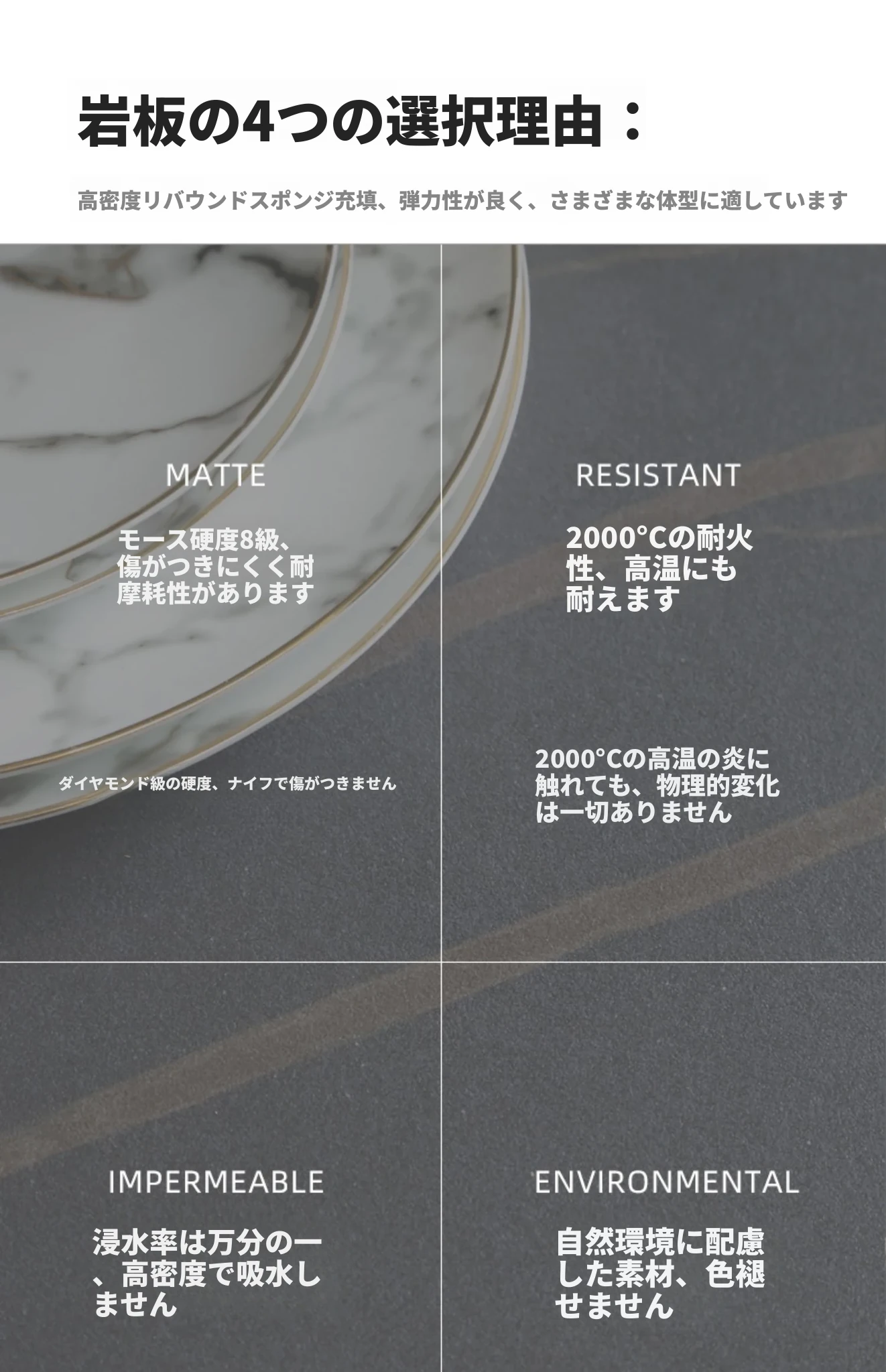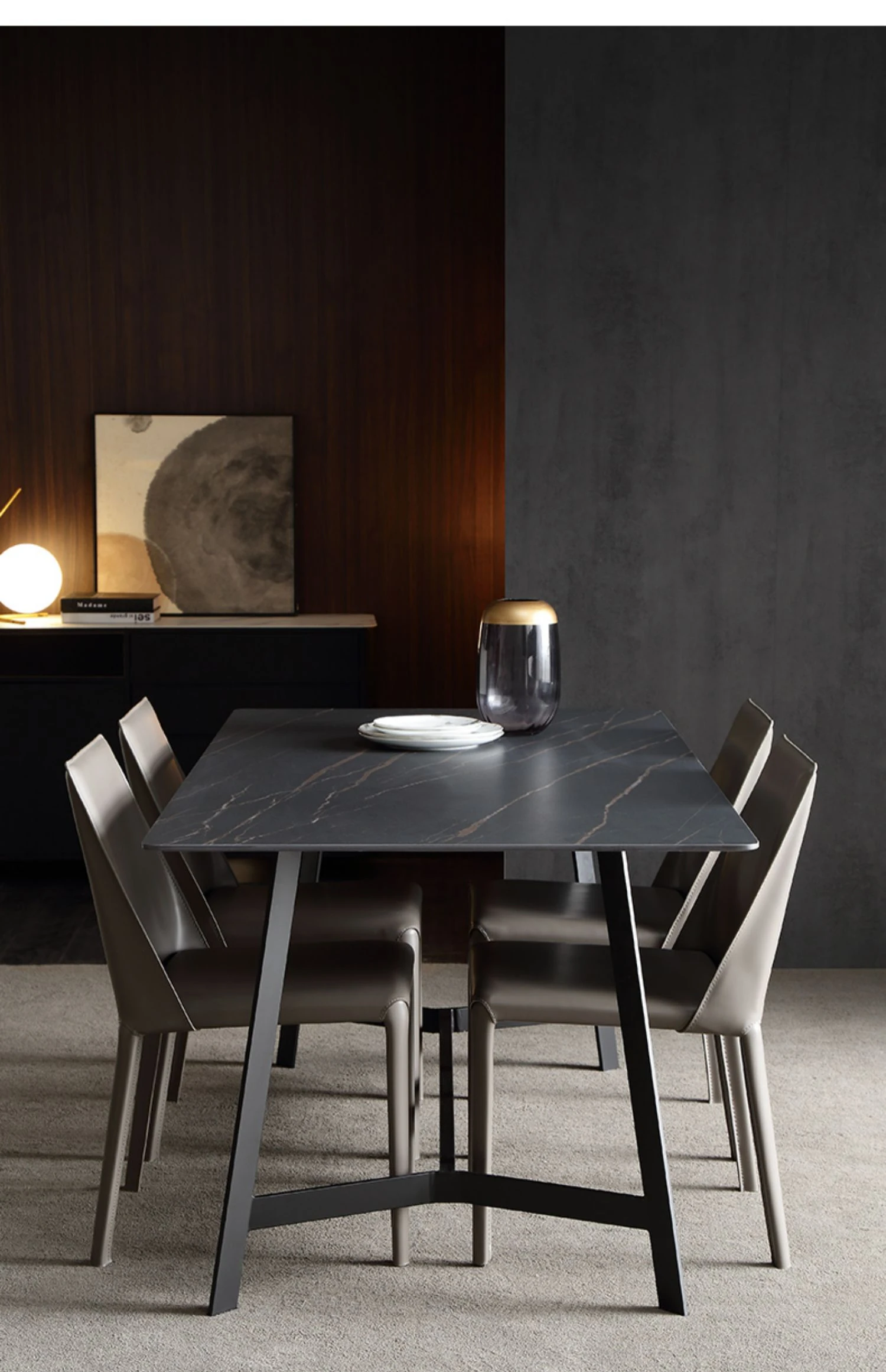 モグ・イタリアン・ストーン・長方形ダイニングテーブル - モダンでミニマルな北欧スタイル、コンパクトな空間にぴったりな軽やかなラグジュアリー感で食事を楽しむテーブル!