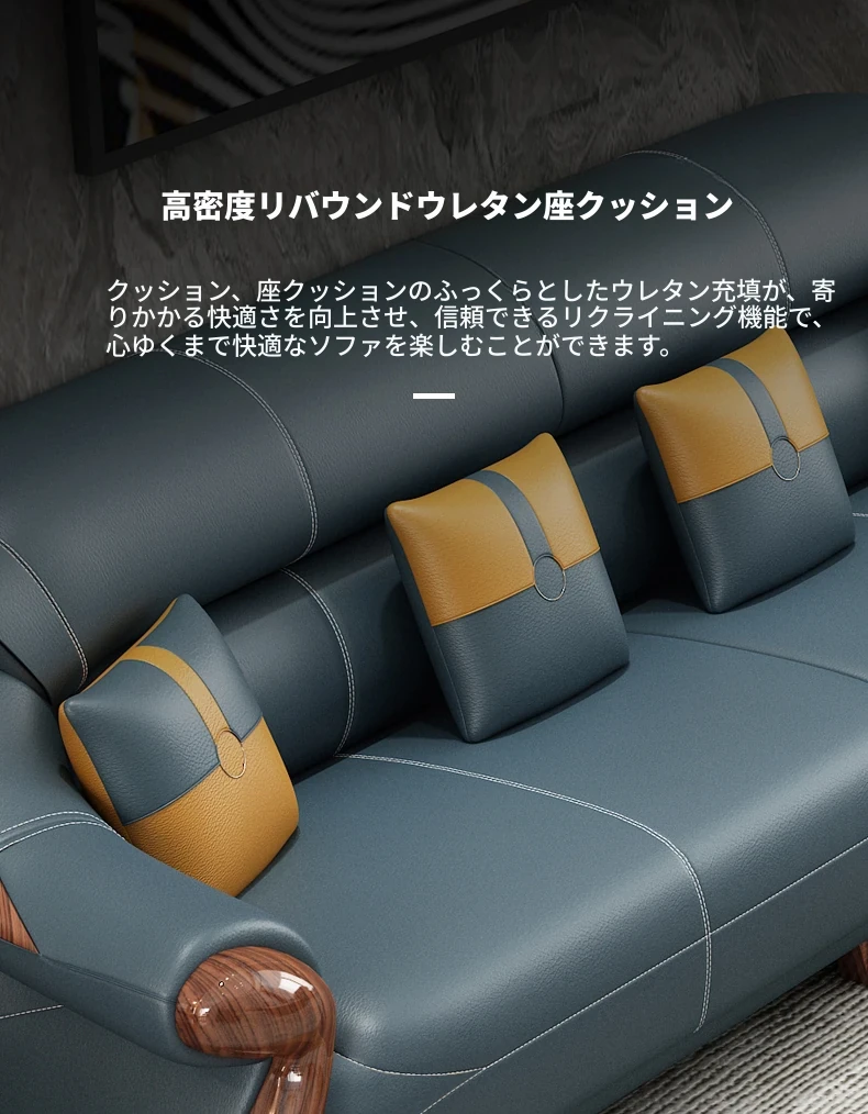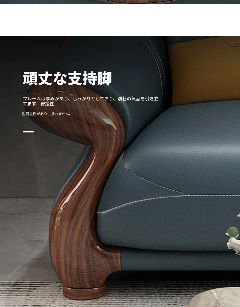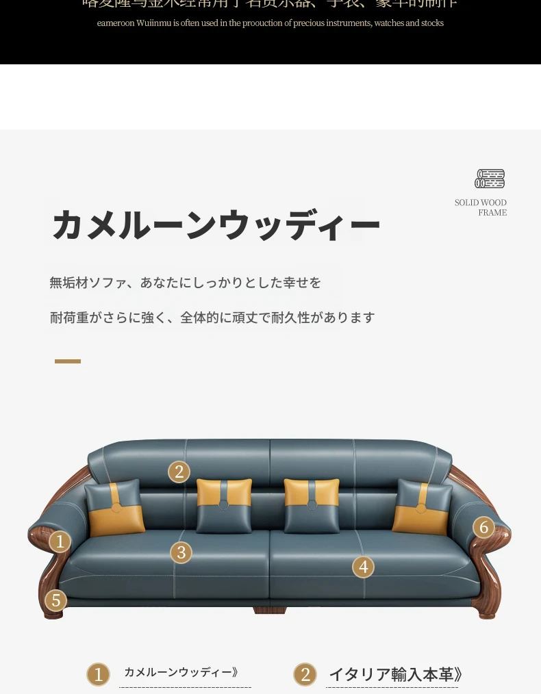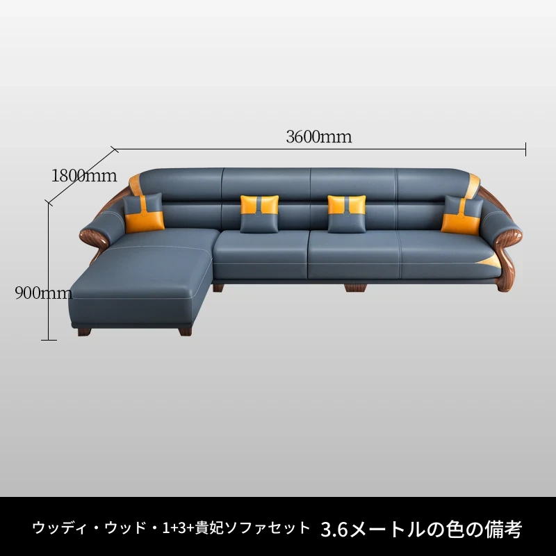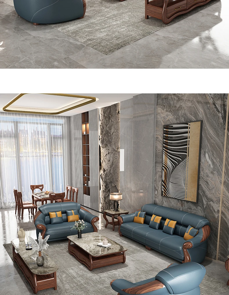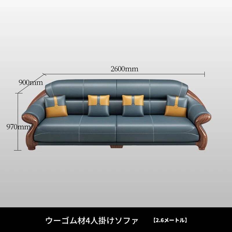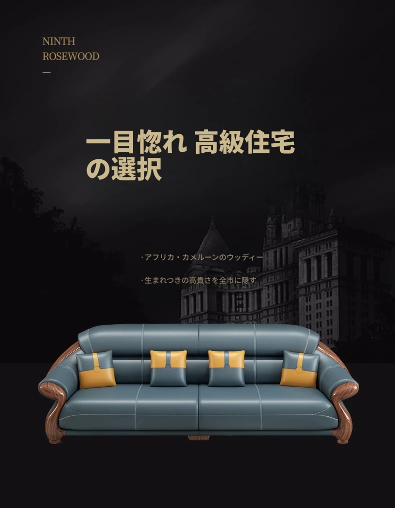 新中式ウッドブラックソファー - 高級本革使用の北欧スタイル、大型リビング向けの実木製ヴィラソファ。心地よい座り心地と洗練されたデザインで、あなたの空間を華やかに彩ります。