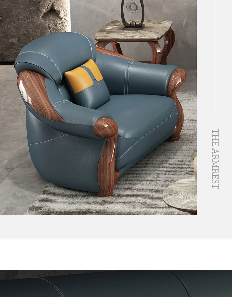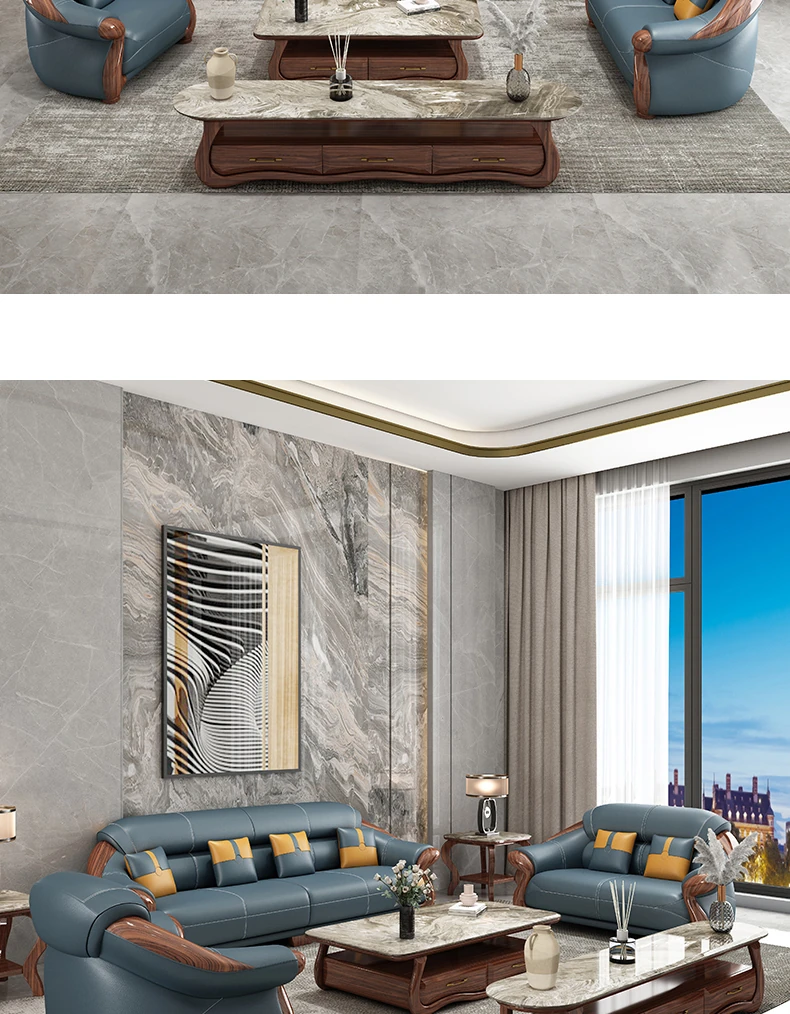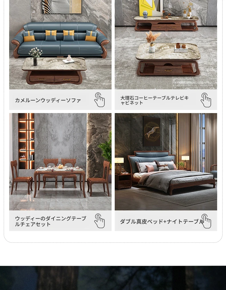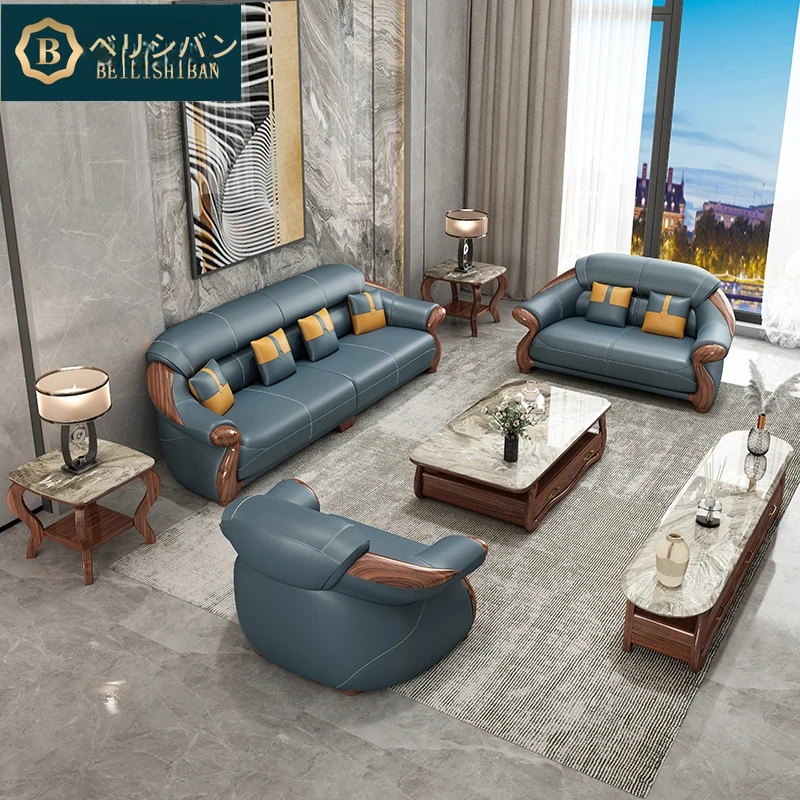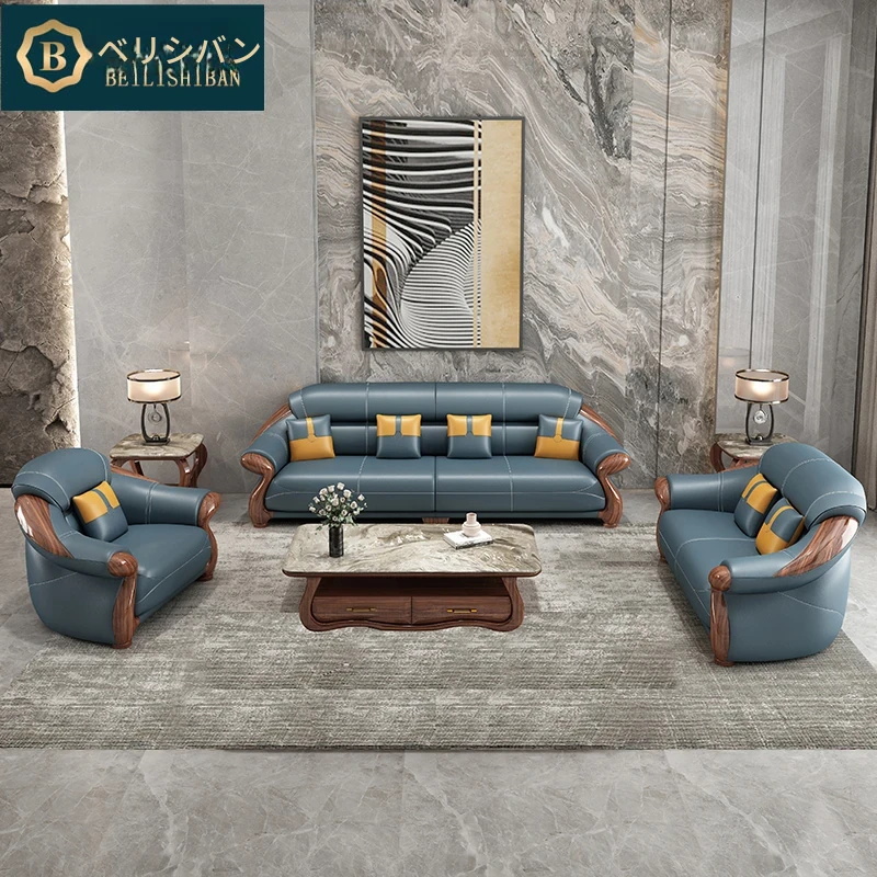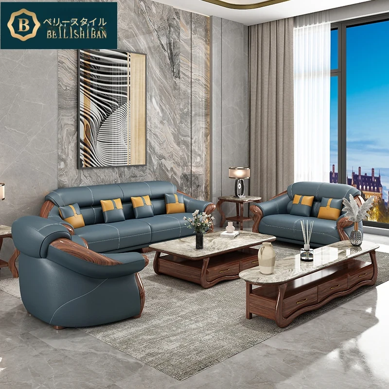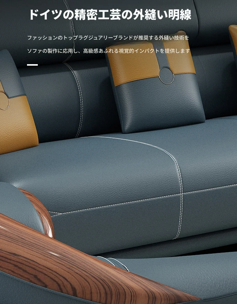 新中式ウッドブラックソファー - 高級本革使用の北欧スタイル、大型リビング向けの実木製ヴィラソファ。心地よい座り心地と洗練されたデザインで、あなたの空間を華やかに彩ります。