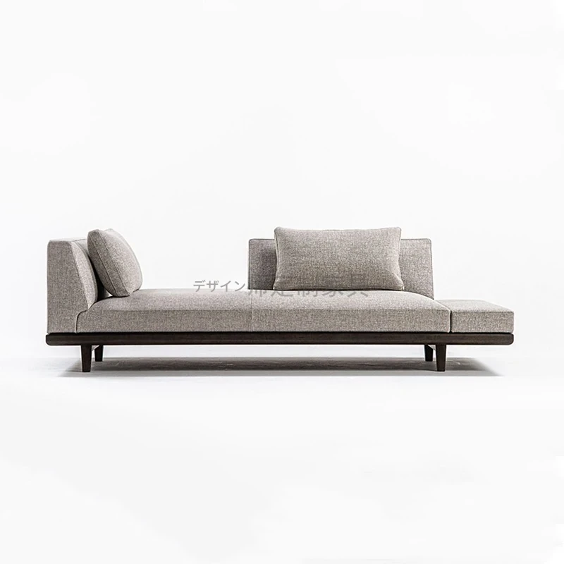 新中式デザインのクリエイティブボックス型アームレスト付き天然木製ソファセット - ホテル、クラブ、展示会、販売ロビーに最適な布製ソファコンビネーション!洗練されたスタイルで、心地よい空間を演出します。