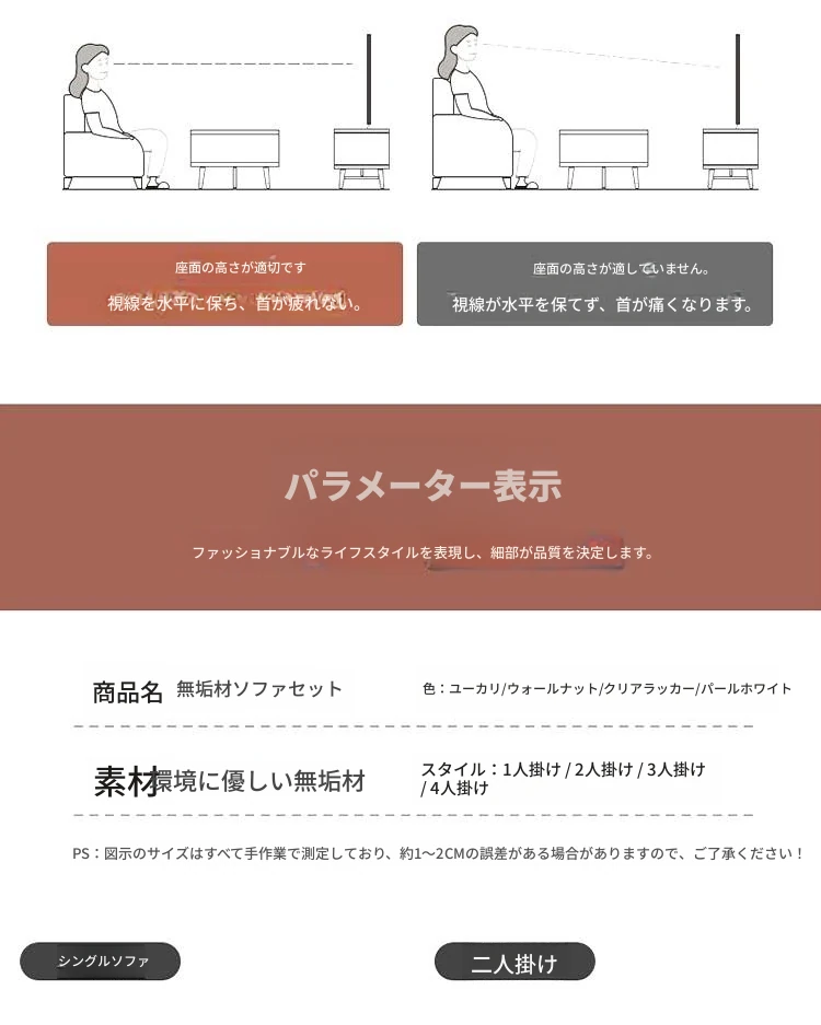 【2人用】ソファ1.4m/透明なクリアラッカー色【本物の木にクッションと抱き枕付き】