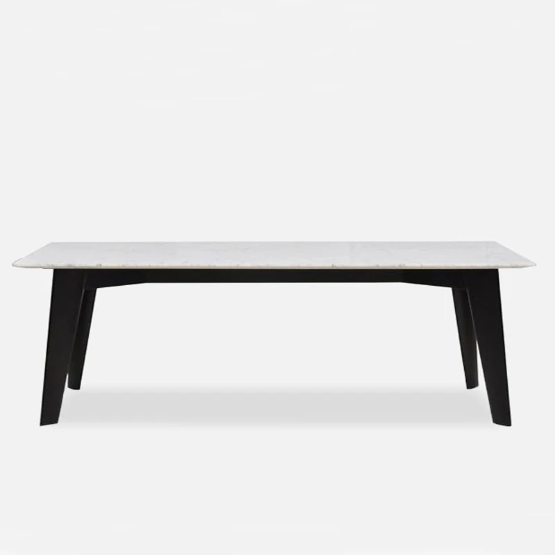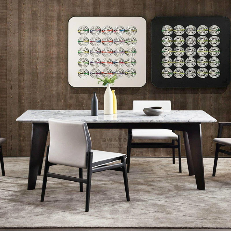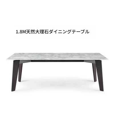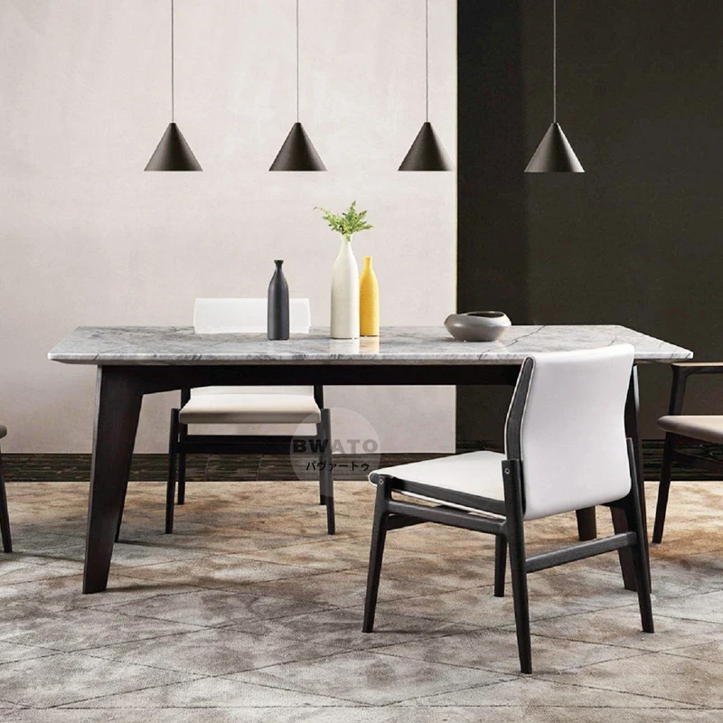 北欧スタイルのイタリアン天然大理石と無垢材の長方形ダイニングテーブル - 8人用デザイナーズモダン石材テーブル&チェアセットで、洗練された食卓を演出!