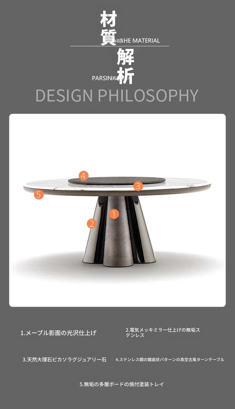 ポストモダン・ラグジュアリー・ジャズホワイト・エレガントストーン・ダイニングテーブル&チェアセット|高級デザイナーによるイタリアン・マーブル・ラウンドテーブルで、洗練された空間を演出!