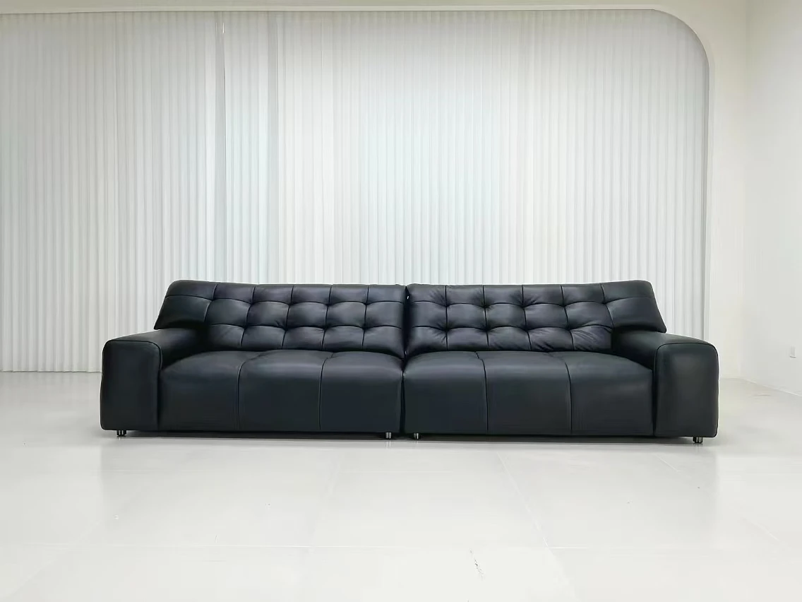 【大人気の高品質】本革製ブラックベアソファ - シンプルで洗練されたデザイン、贅沢な座り心地を実現!
