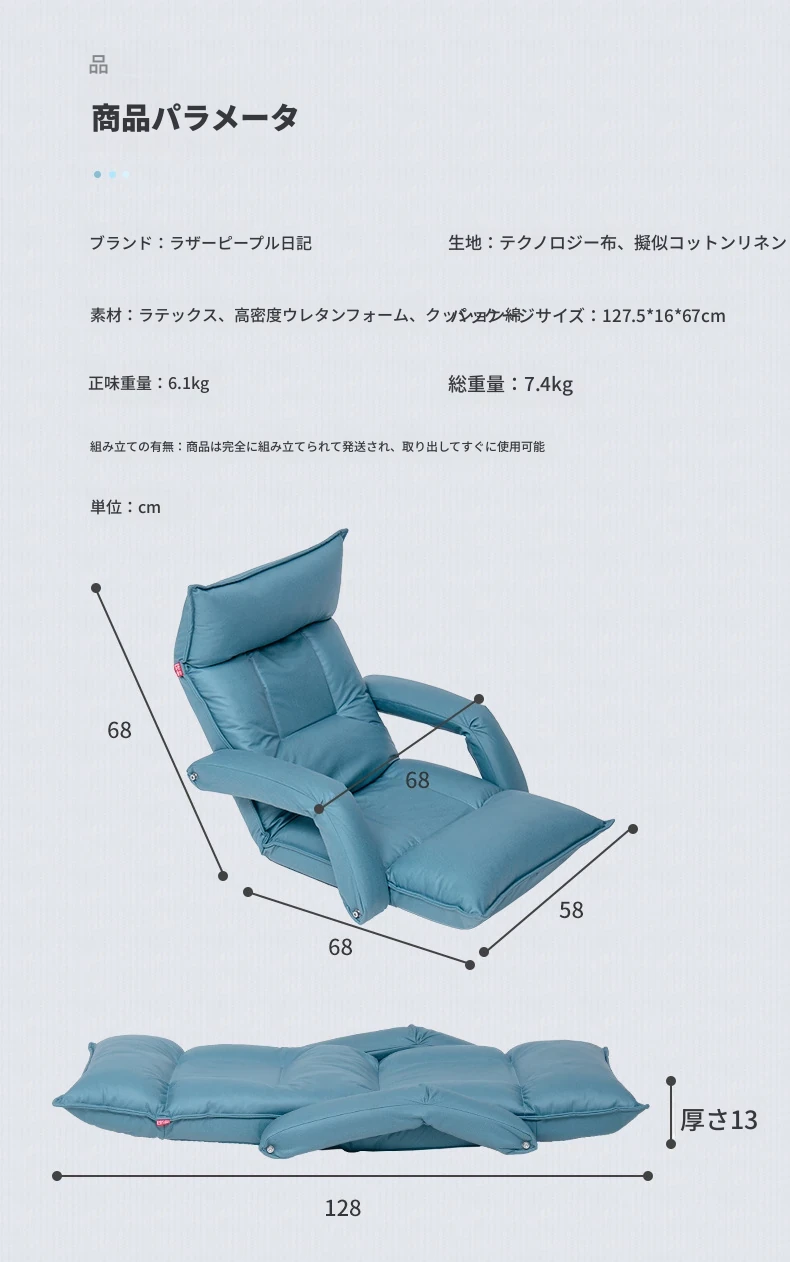 洗濯不要!快適な布製座椅子 - 折りたたみ式ラザソファ、タタミスタイルでリラックスしよう!