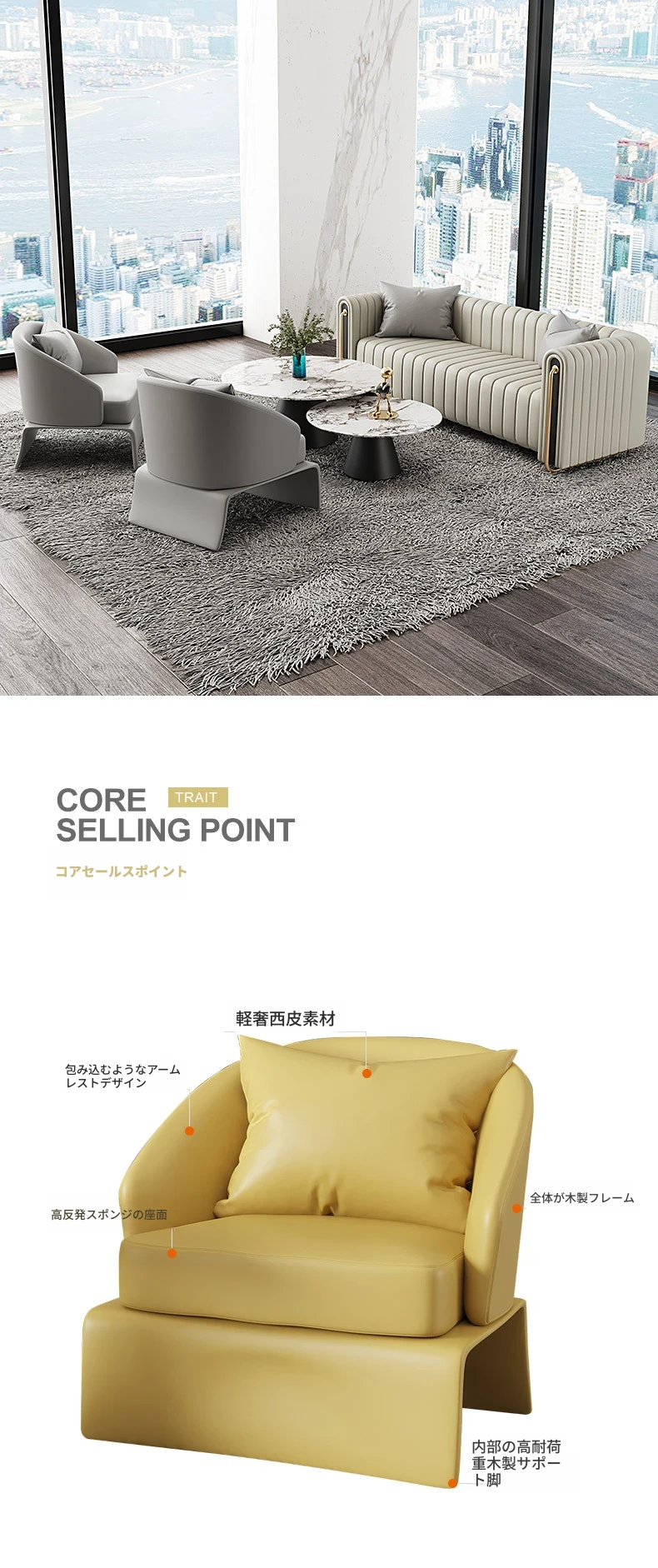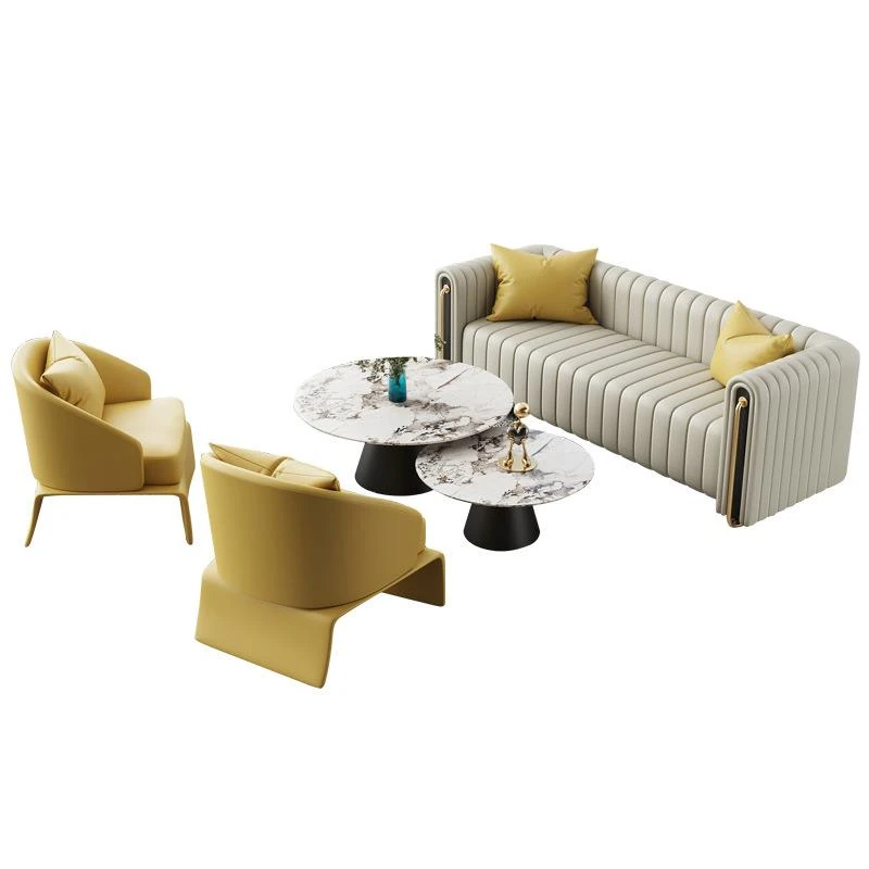 北欧スタイルのマーケティングセンターに最適!ホテルラウンジ用リラックスソファ&カジュアルカウンターセット。販売所や展示ホールでの打ち合わせに最適なデザイン!おしゃれで機能的な組み合わせ。