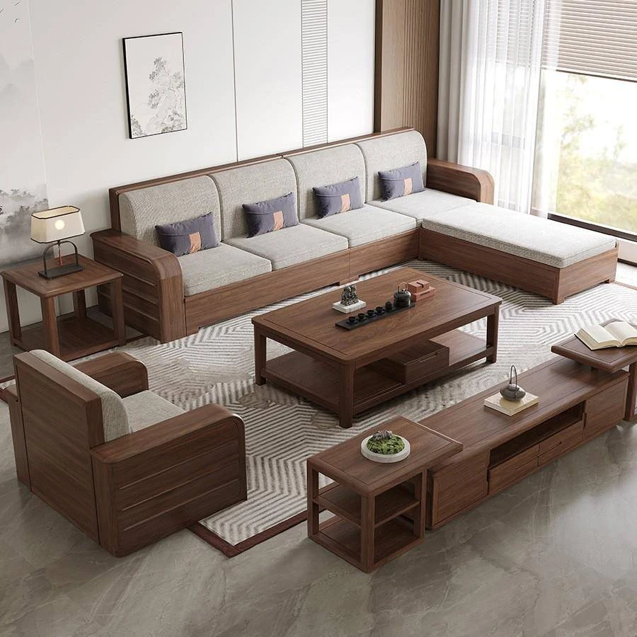 四人掛け+中箱+貴妃+正方形テーブル*2+引き出し付きロングコーヒーテーブル(南米FAS級ブラックウォールナット)