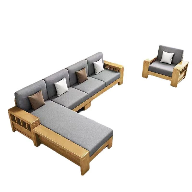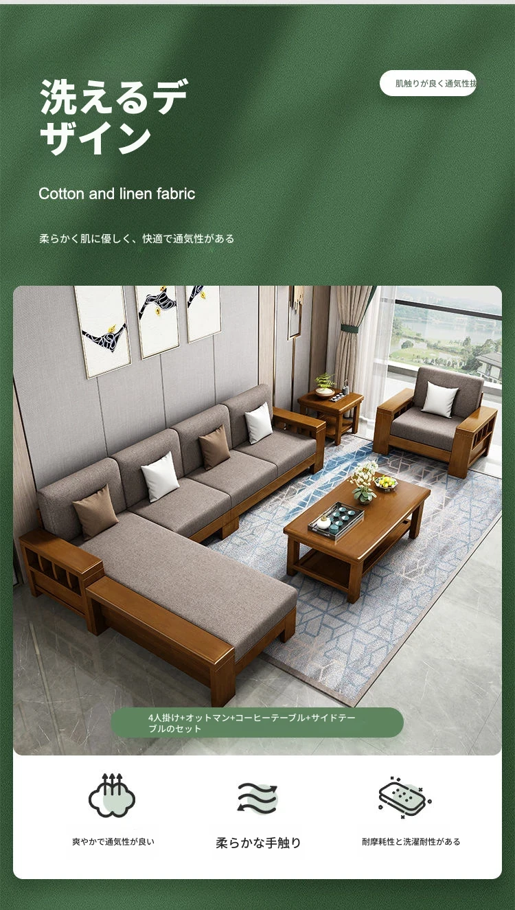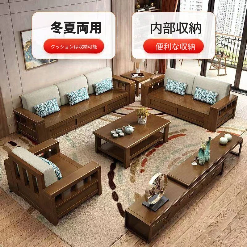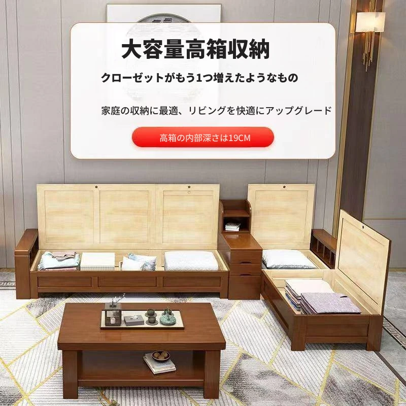 高品質の無垢材ソファ 中華風リビング家具 小型・中型向け 木製と布のコンビネーション収納付きハイボックスソファ 冬夏兼用の快適ソファセットで、スタイリッシュな空間を演出!