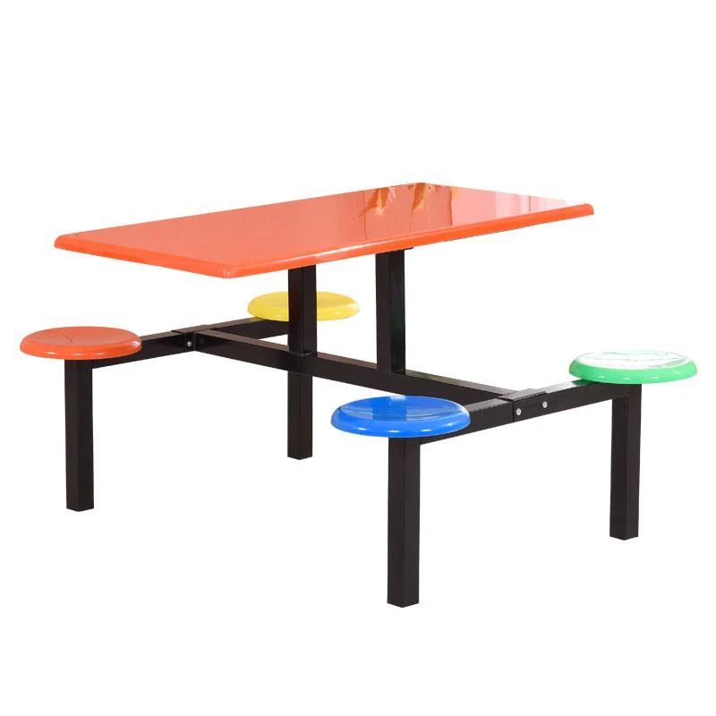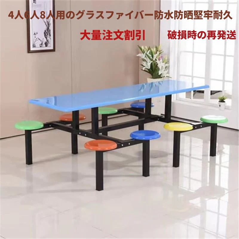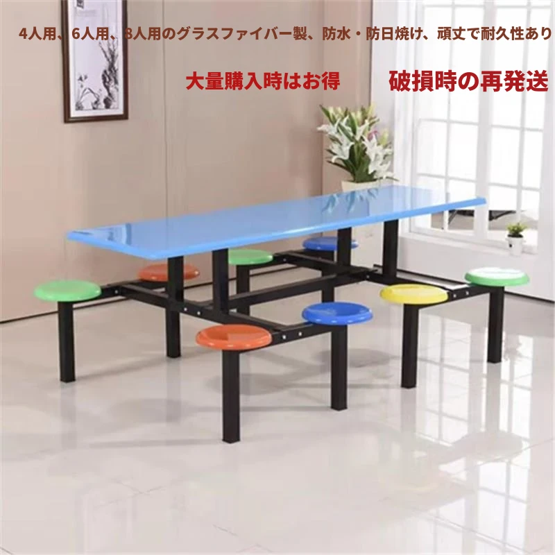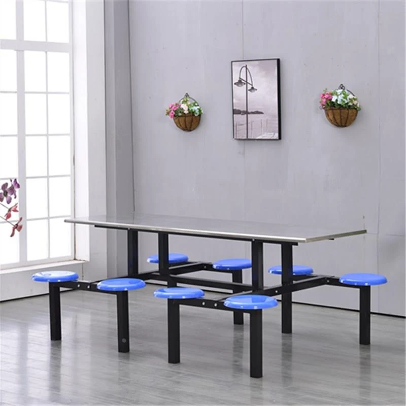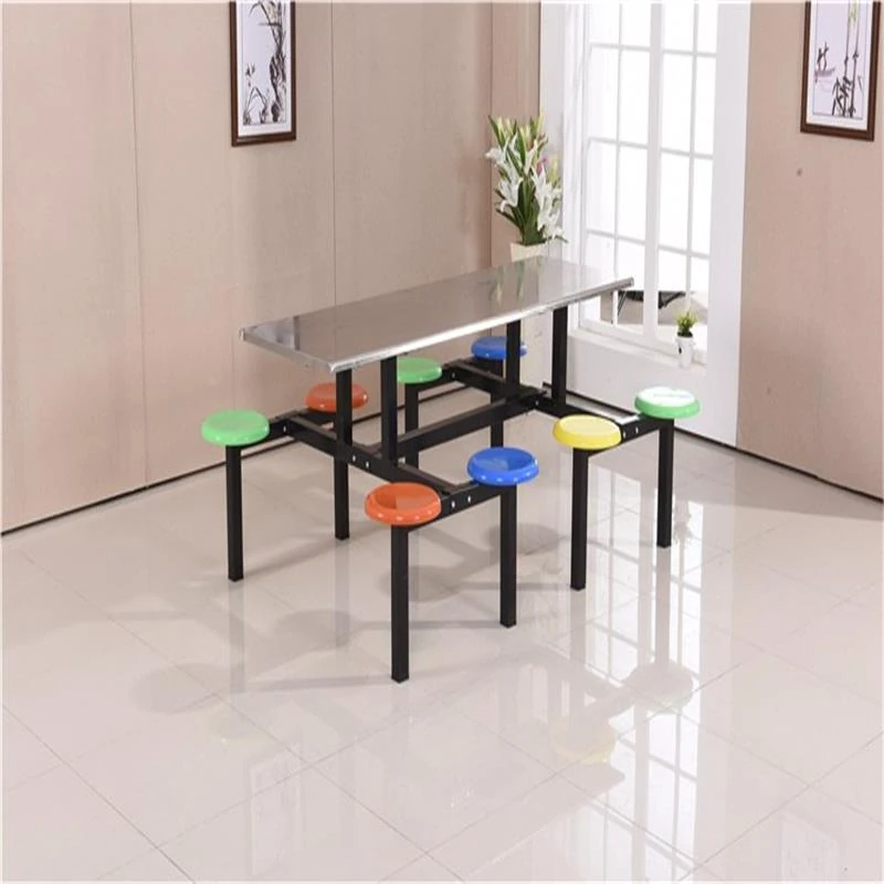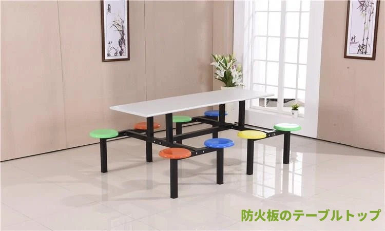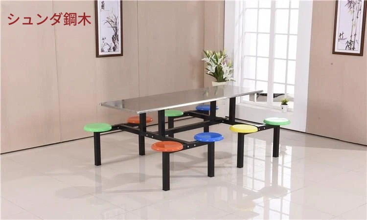 学校・食堂向け4人・6人・8人用連結型ファーストフードテーブルチェアセット!耐久性抜群のステンレス製で、学生やスタッフに最適な快適空間を提供します!