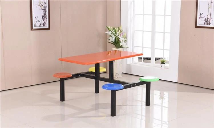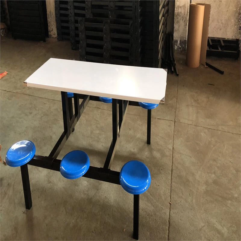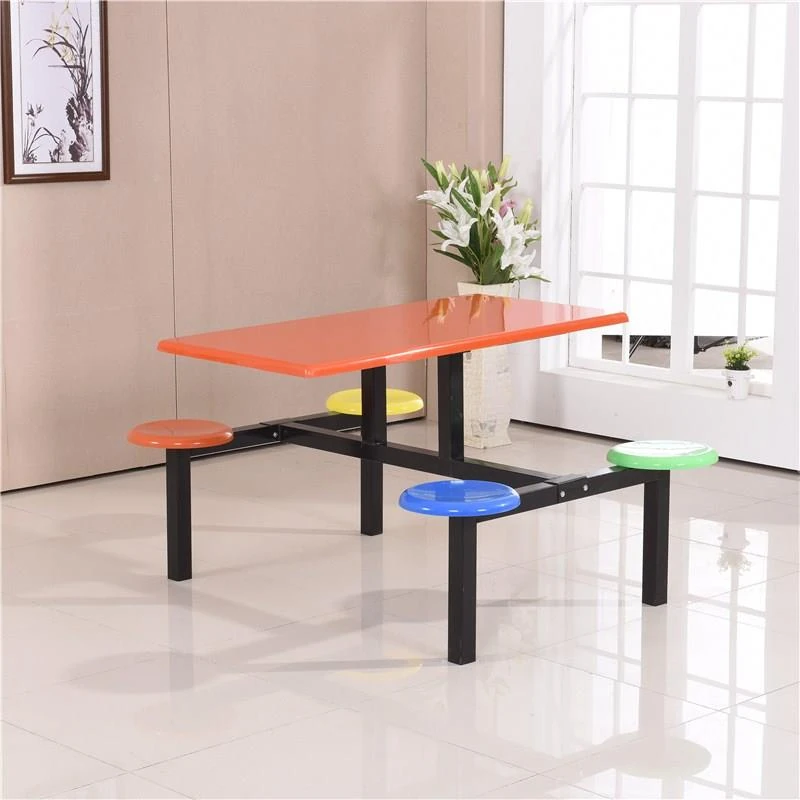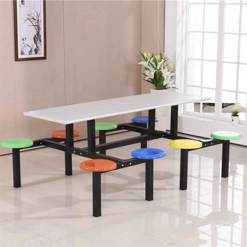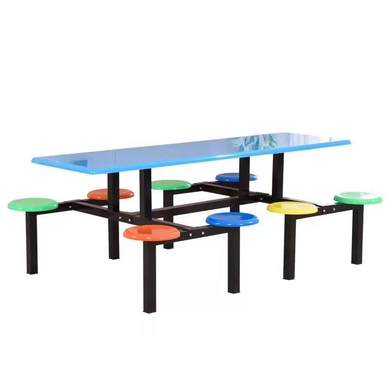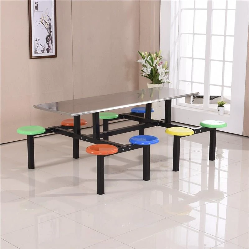 学校・食堂向け4人・6人・8人用連結型ファーストフードテーブルチェアセット!耐久性抜群のステンレス製で、学生やスタッフに最適な快適空間を提供します!