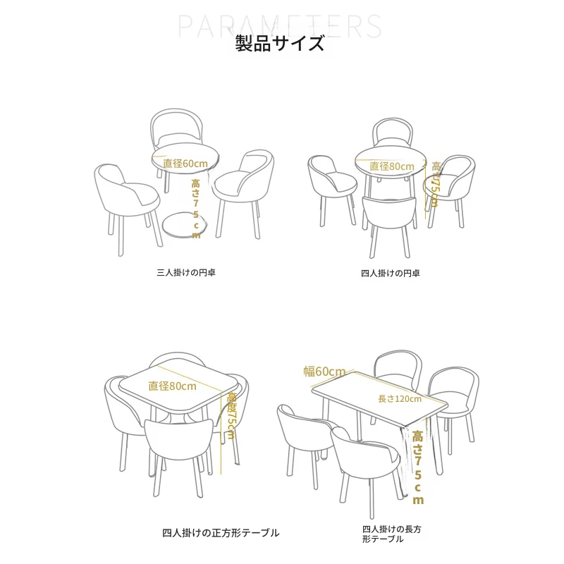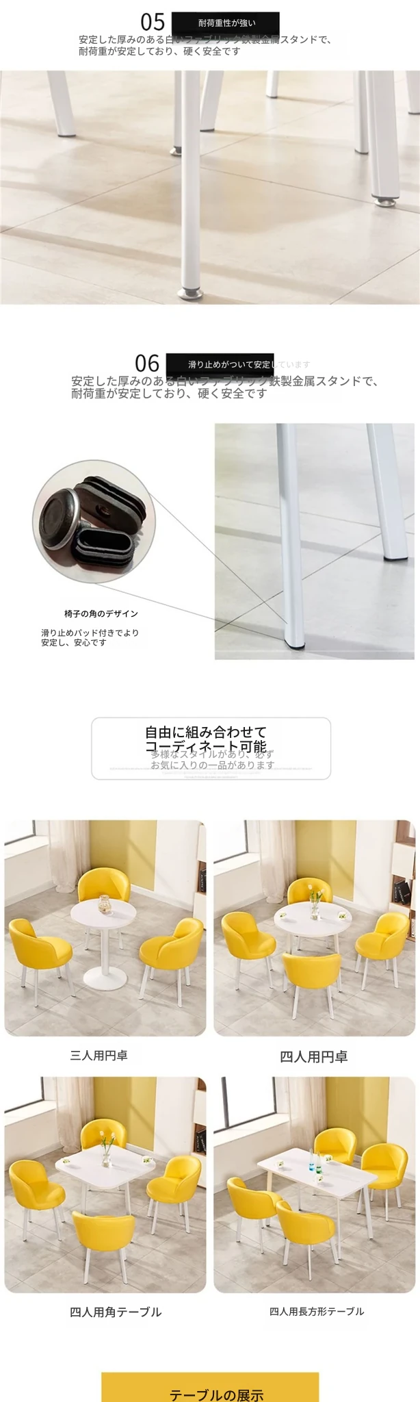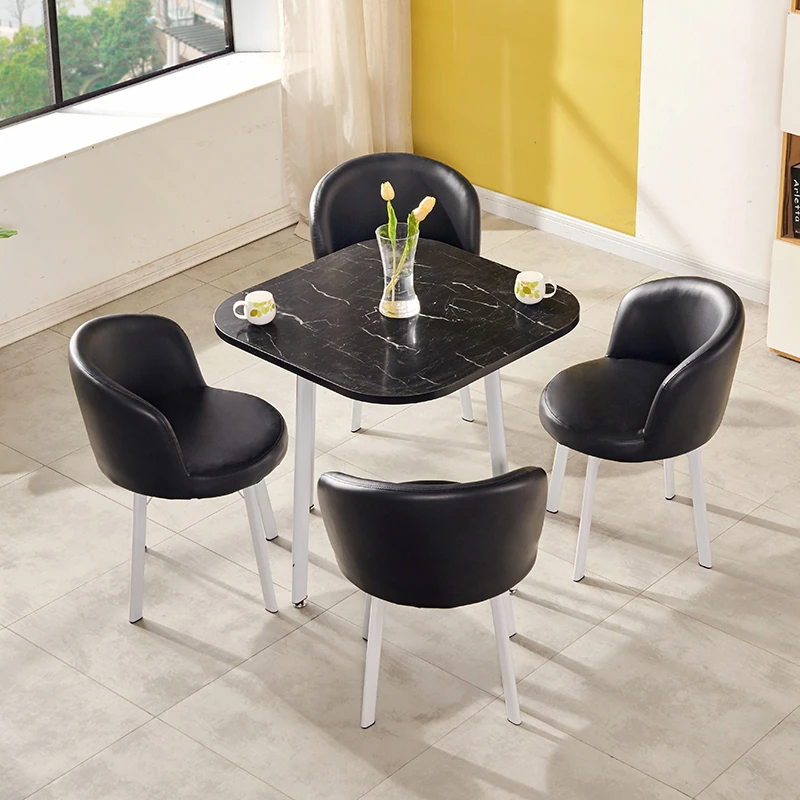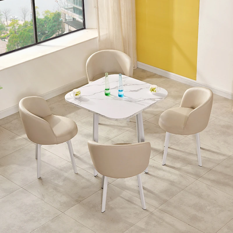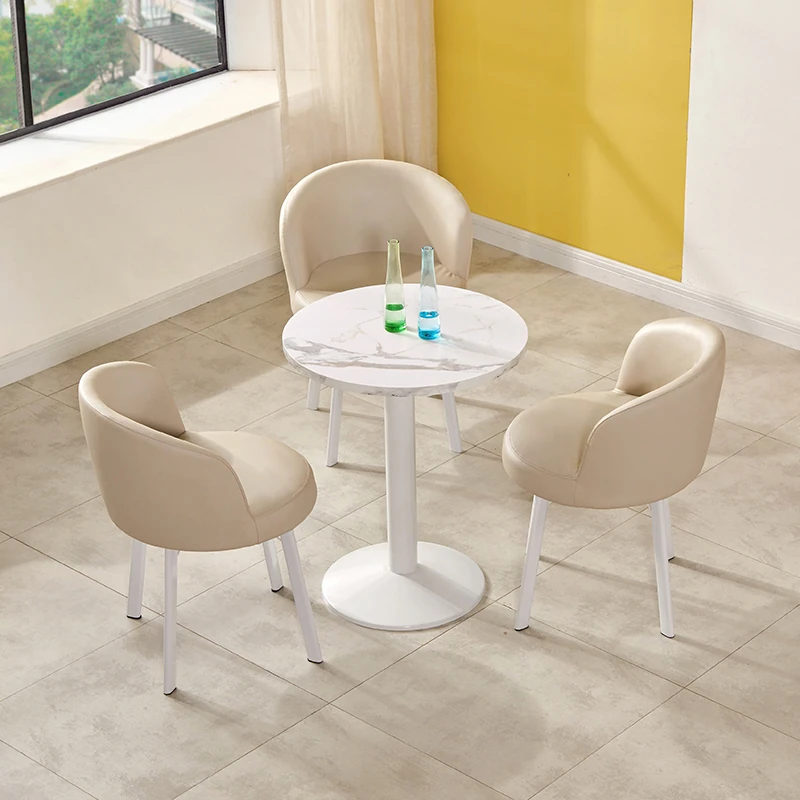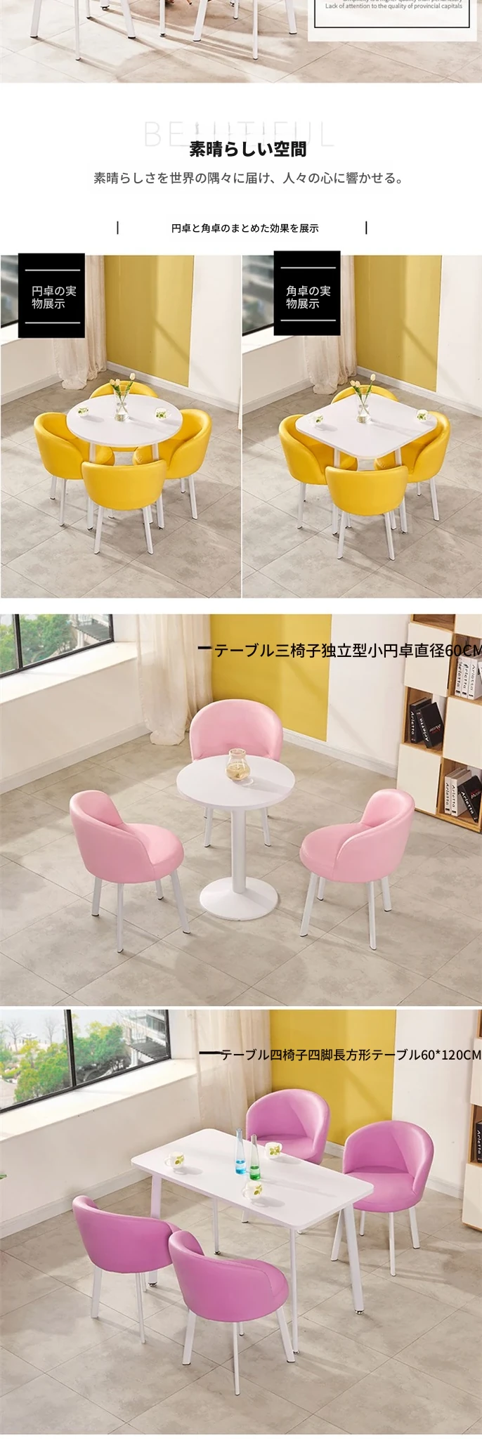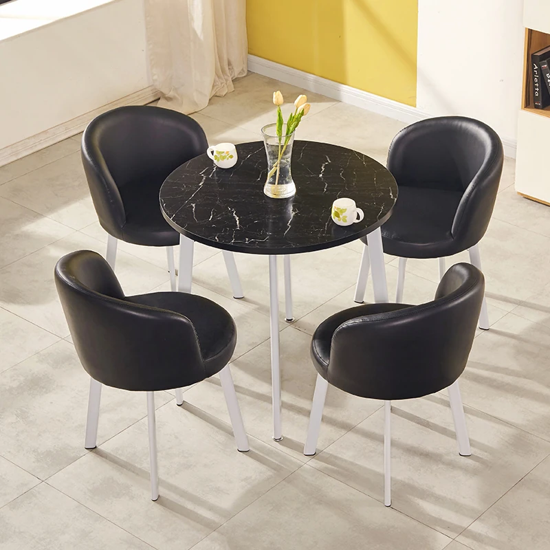シンプルなデザインの商談用テーブルセット|カフェやスイーツ店に最適な小型円形テーブル&長方形テーブル椅子のコンビネーション|快適な接客空間を演出!
