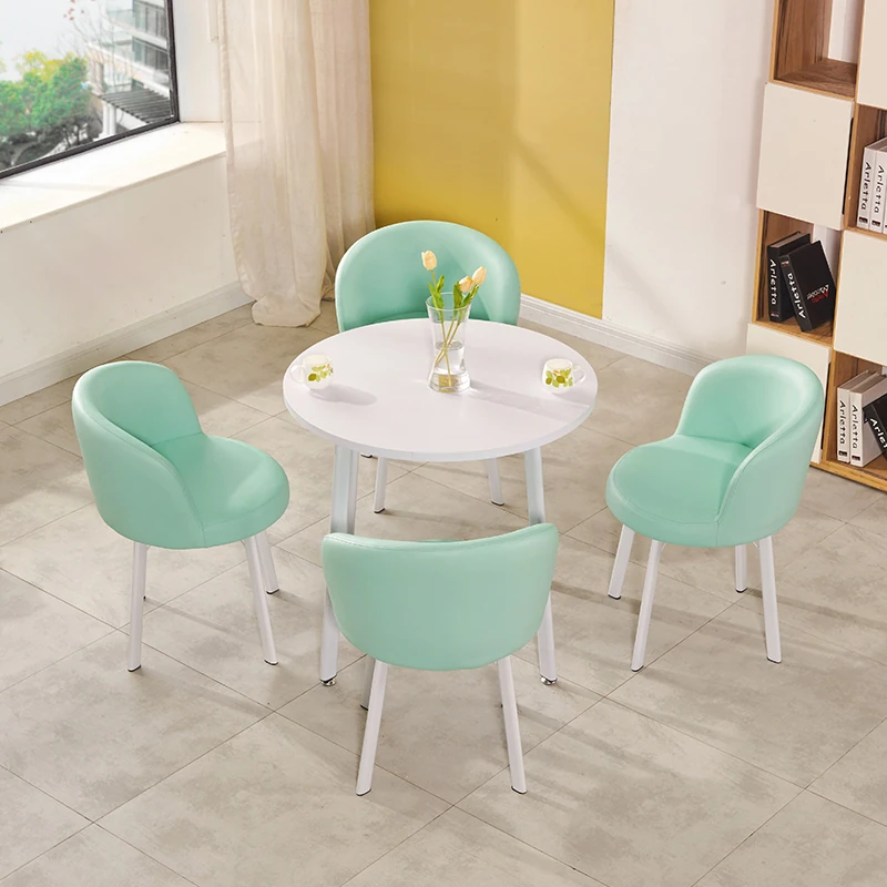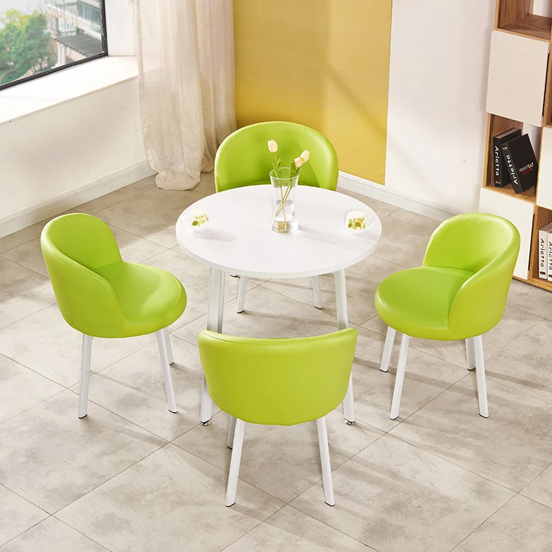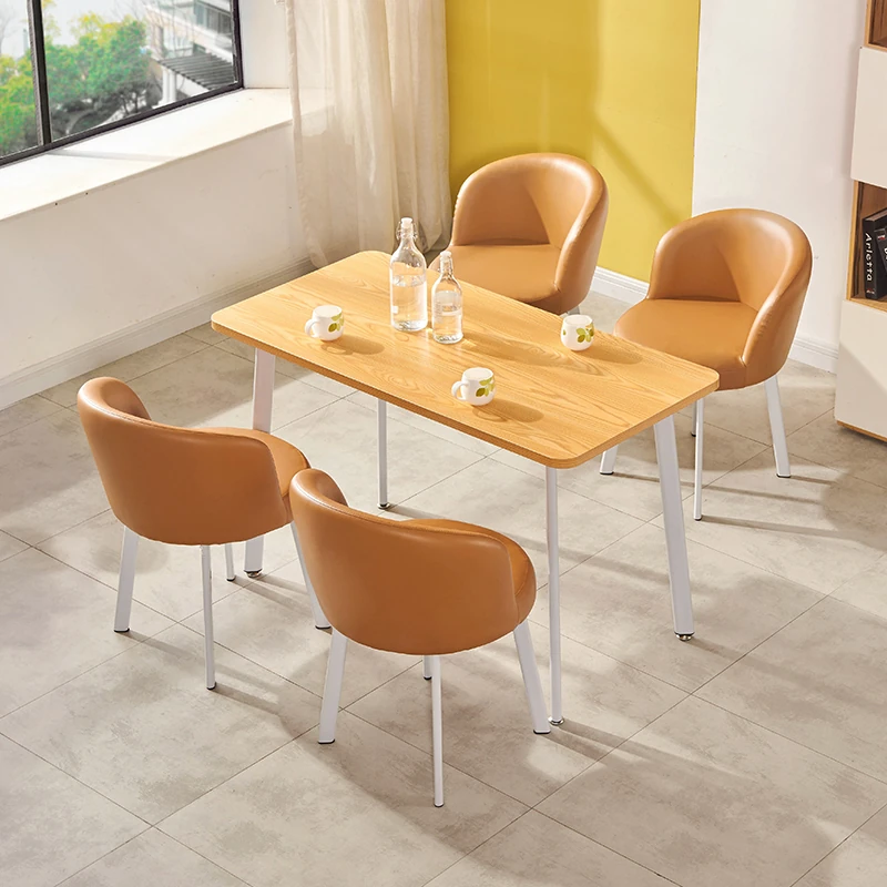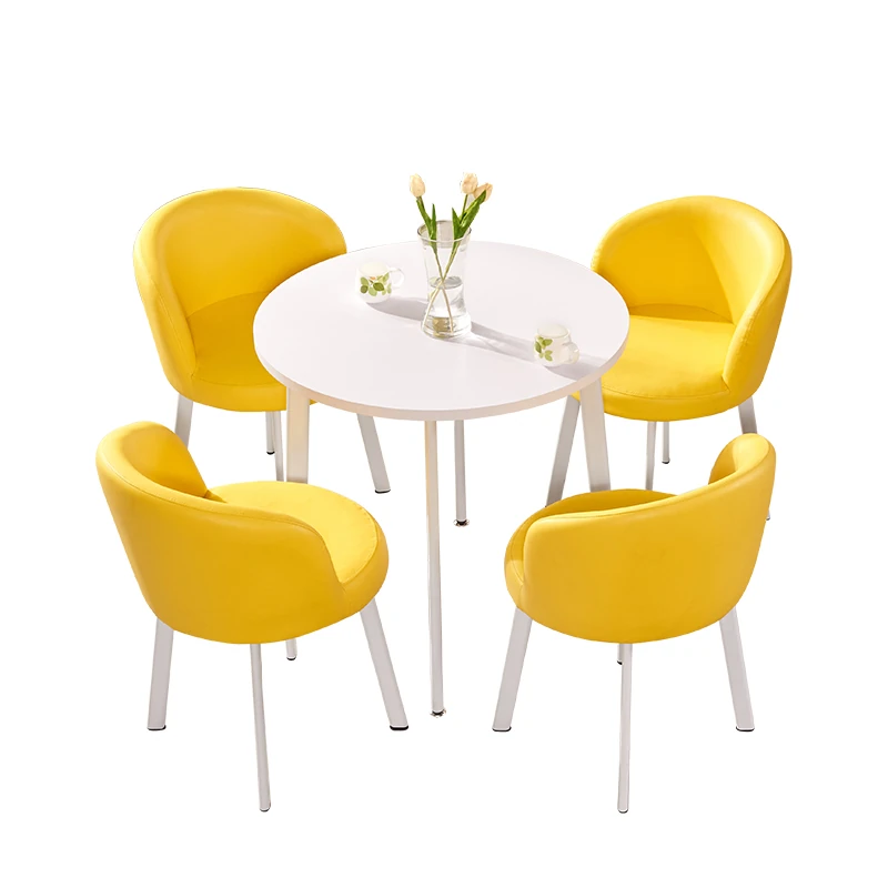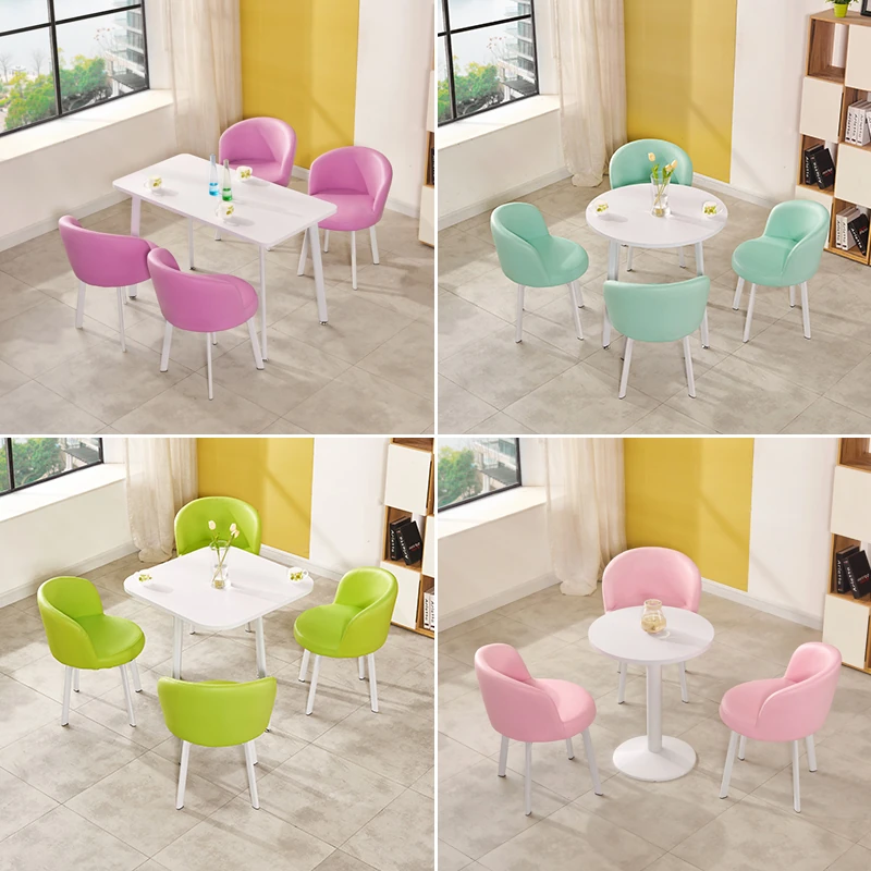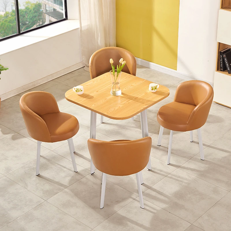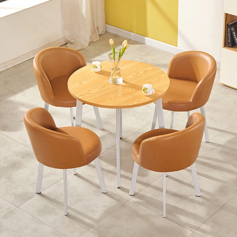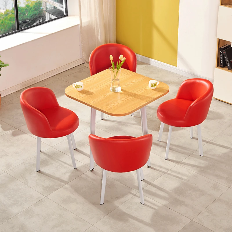 シンプルなデザインの商談用テーブルセット|カフェやスイーツ店に最適な小型円形テーブル&長方形テーブル椅子のコンビネーション|快適な接客空間を演出!