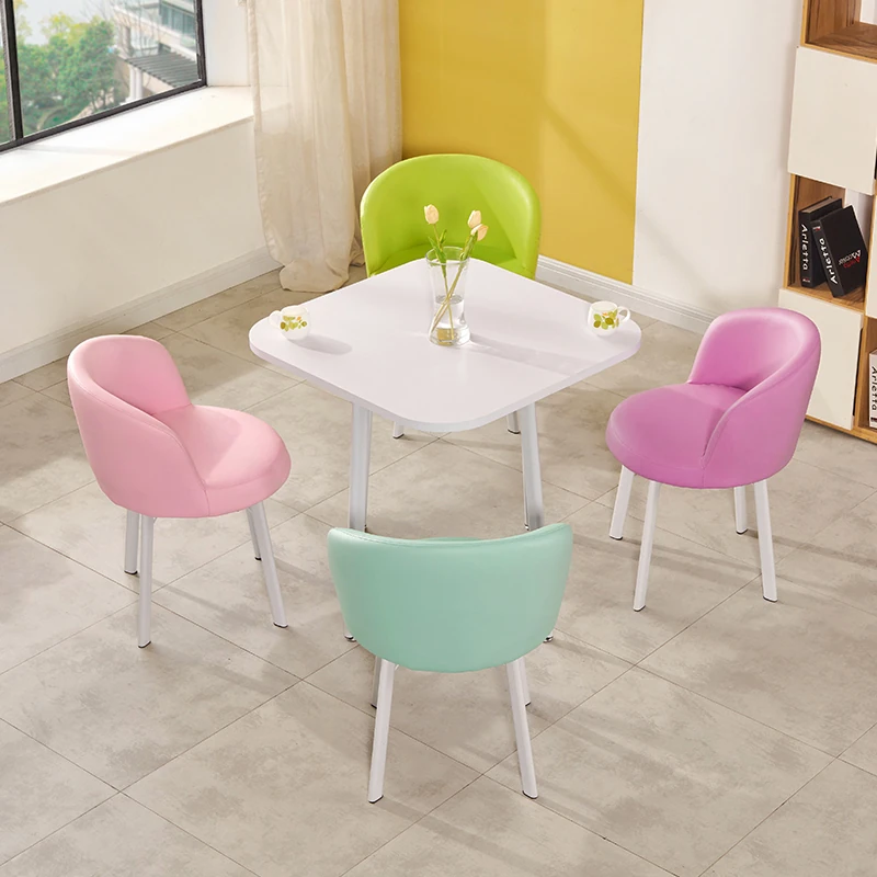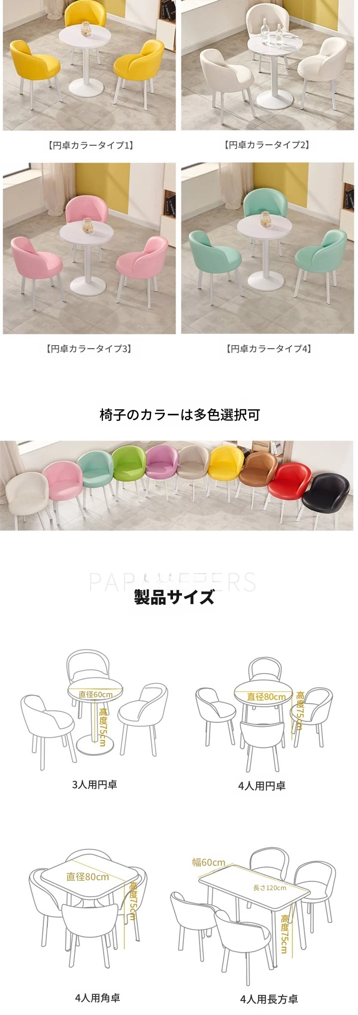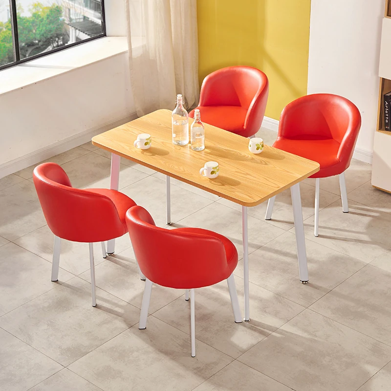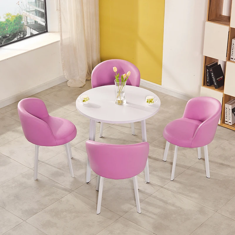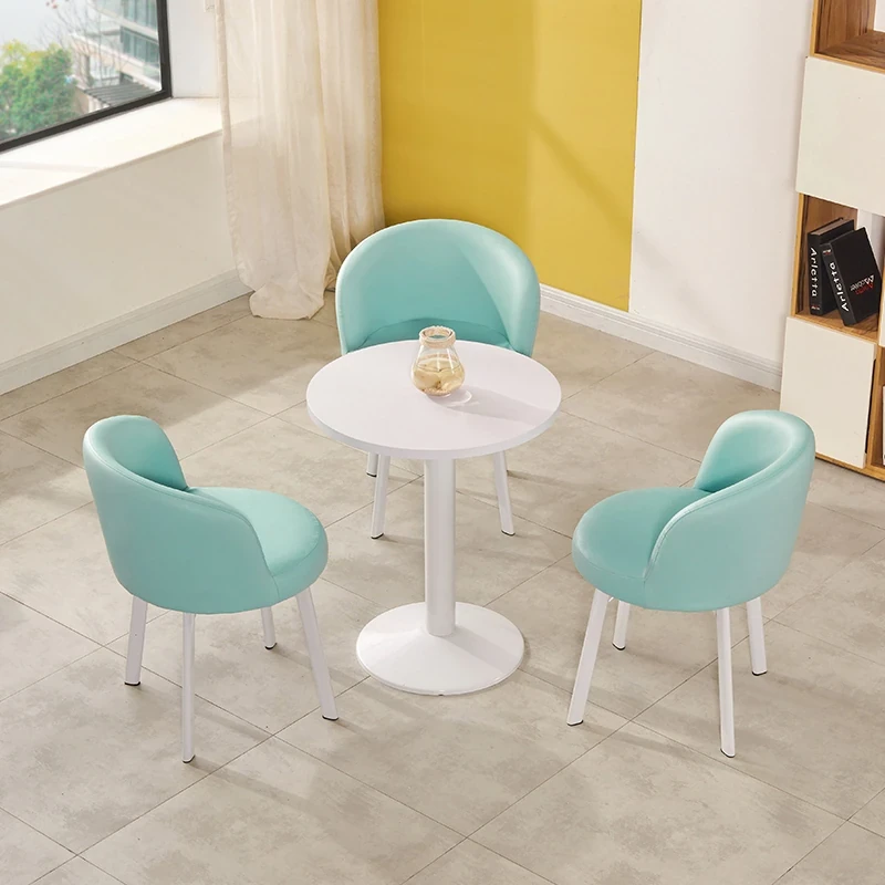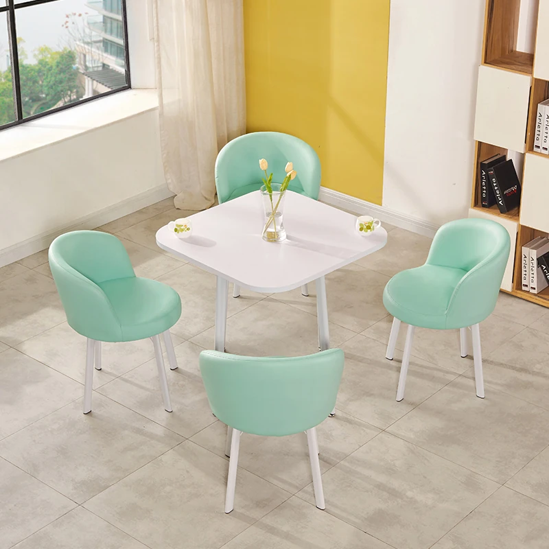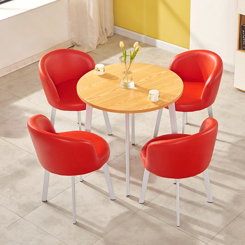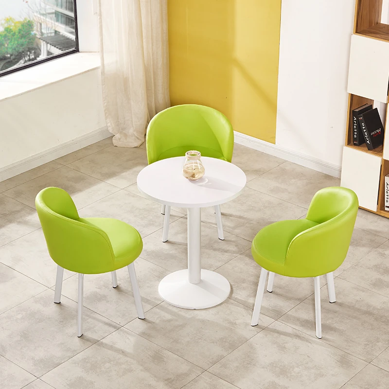 シンプルなデザインの商談用テーブルセット|カフェやスイーツ店に最適な小型円形テーブル&長方形テーブル椅子のコンビネーション|快適な接客空間を演出!