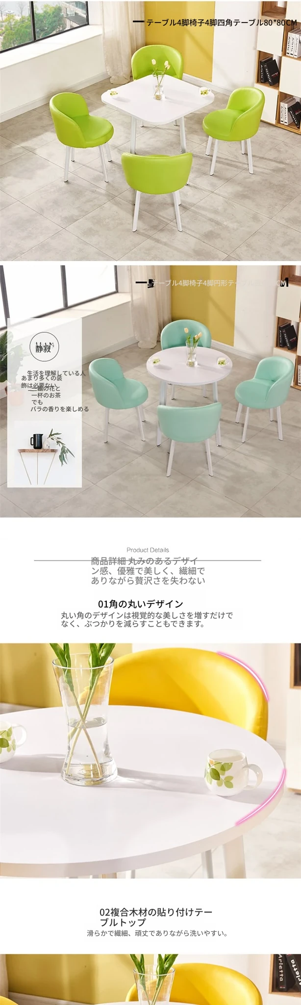 翠緑色 (80角テーブル)一卓四椅子