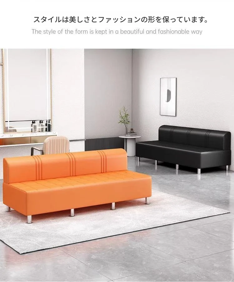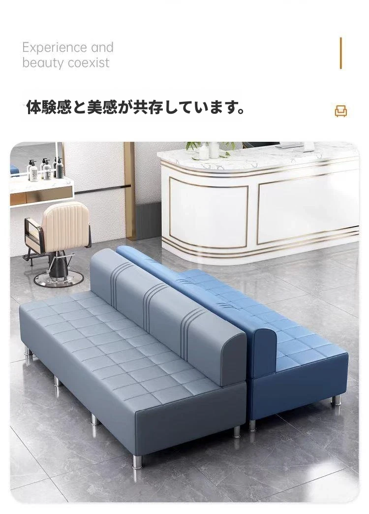 美容室の休憩エリアに最適!おしゃれなソファと待機用チェア、人気のヘアサロン専用ロングベンチ。お客様に快適な待ち時間を提供します!