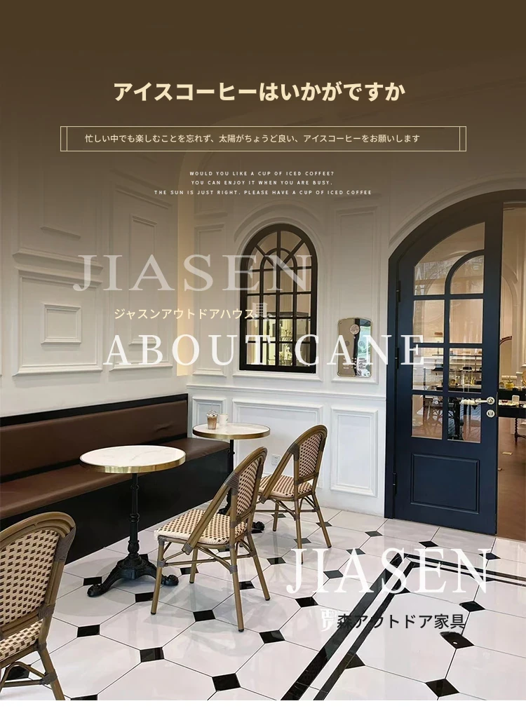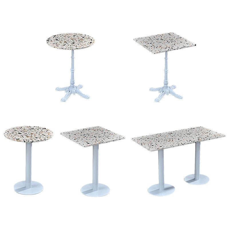 水磨石テーブル - 侘寂の美を感じる北欧スタイルのコーヒーテーブル。アウトドアにも最適なシンプルな四角いデザインで、スイーツショップや洽談にもぴったりなミニマルな円形テーブルです。