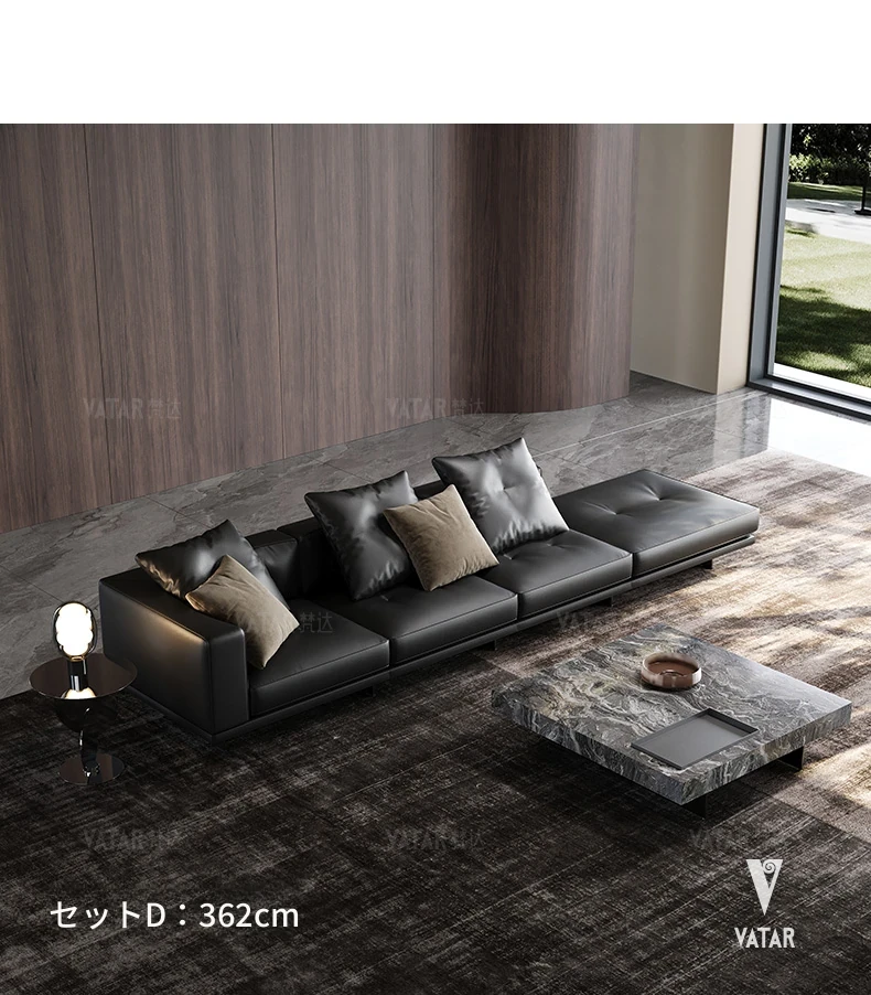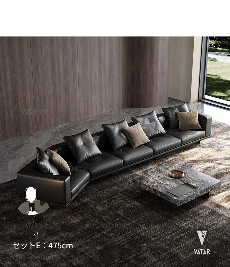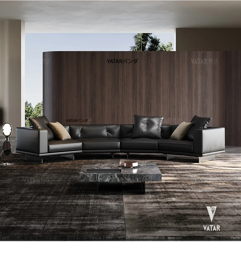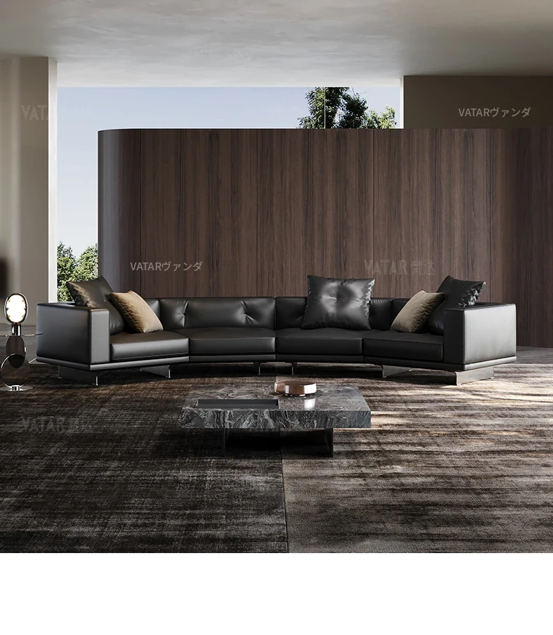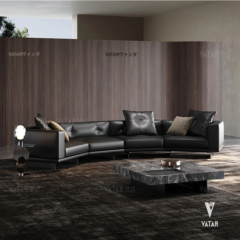 VATARヴァンダ 高級イタリアンミニマリスト別荘リビング用 ディラン本革ソファ 大型アーチ型 家庭用コンビネーションセットで、ラグジュアリーな空間を演出!