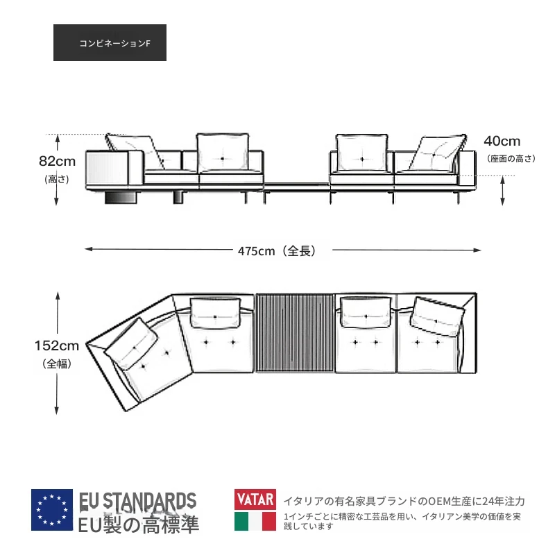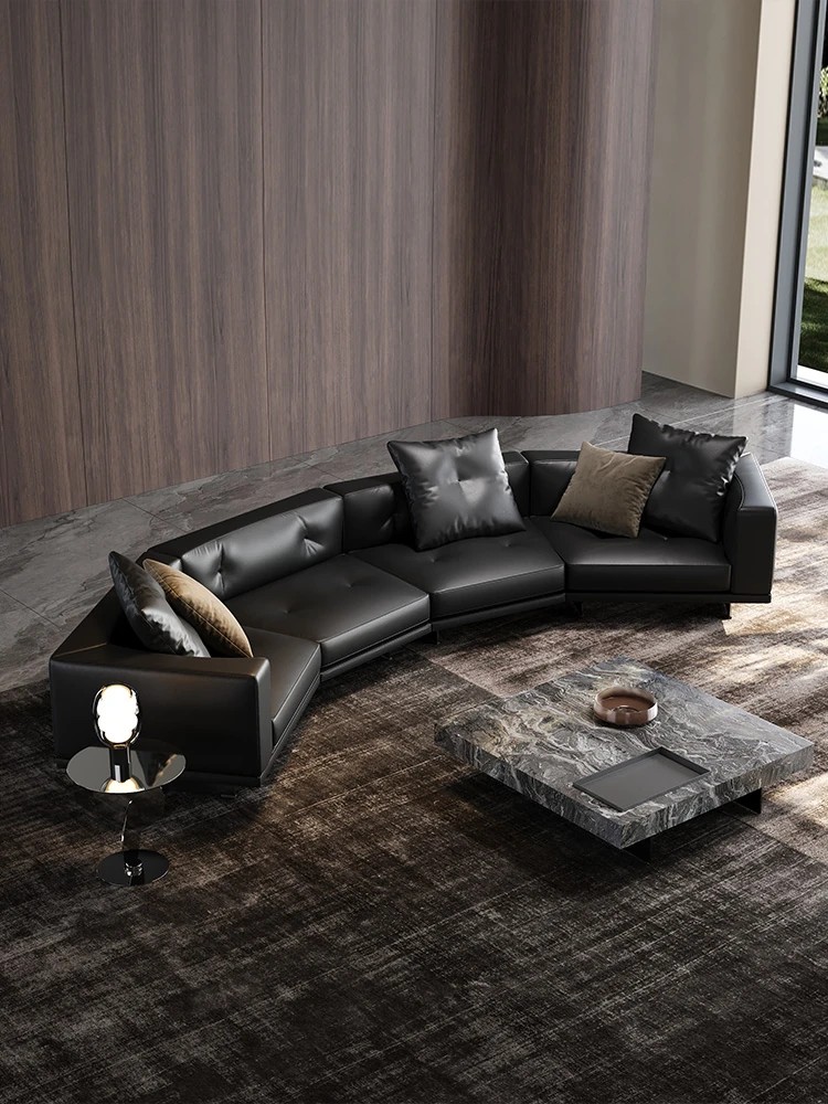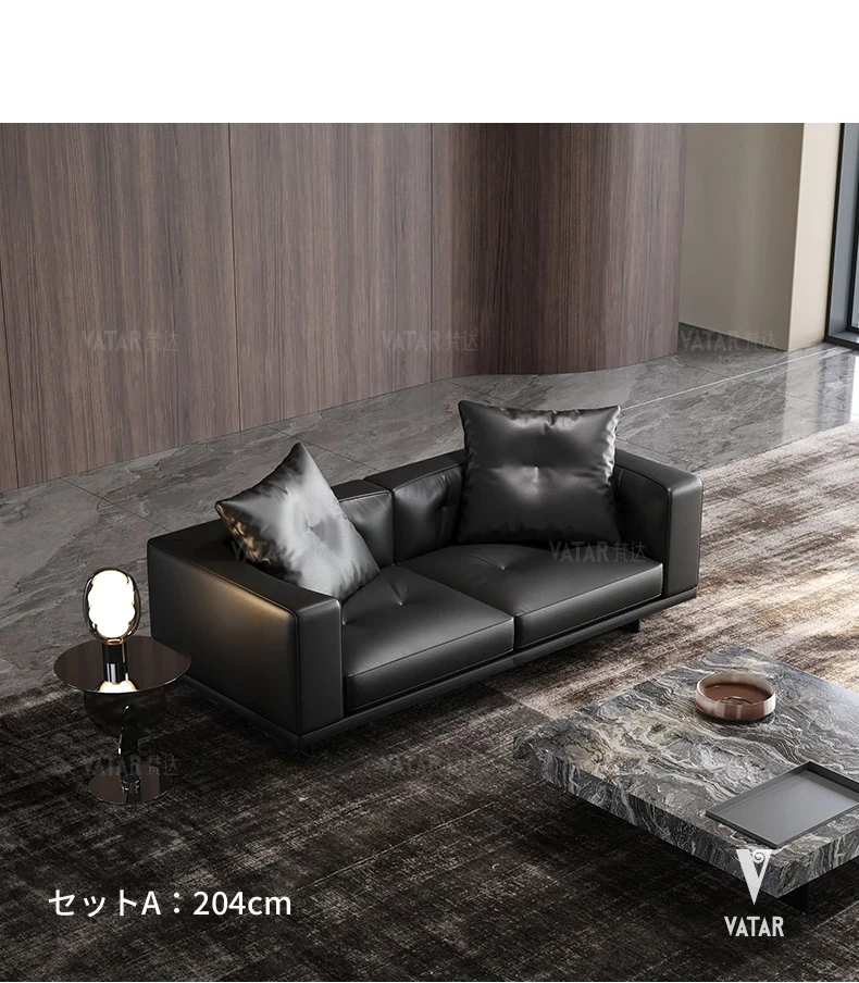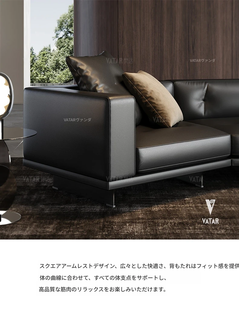 VATARヴァンダ 高級イタリアンミニマリスト別荘リビング用 ディラン本革ソファ 大型アーチ型 家庭用コンビネーションセットで、ラグジュアリーな空間を演出!