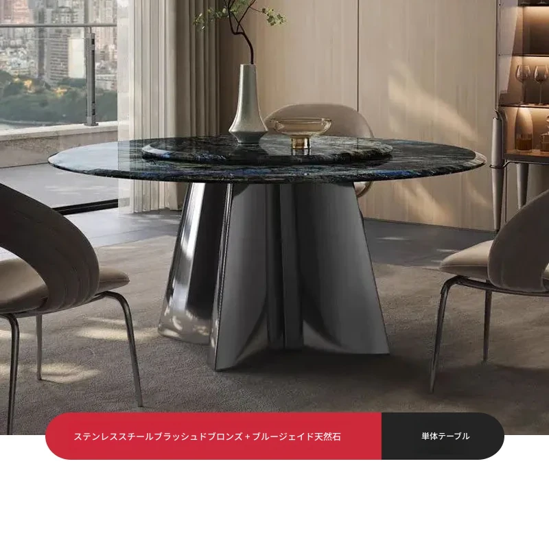 ステンレススチールブラシ仕上げの天然石ダイニングテーブル