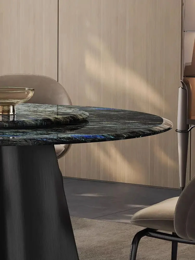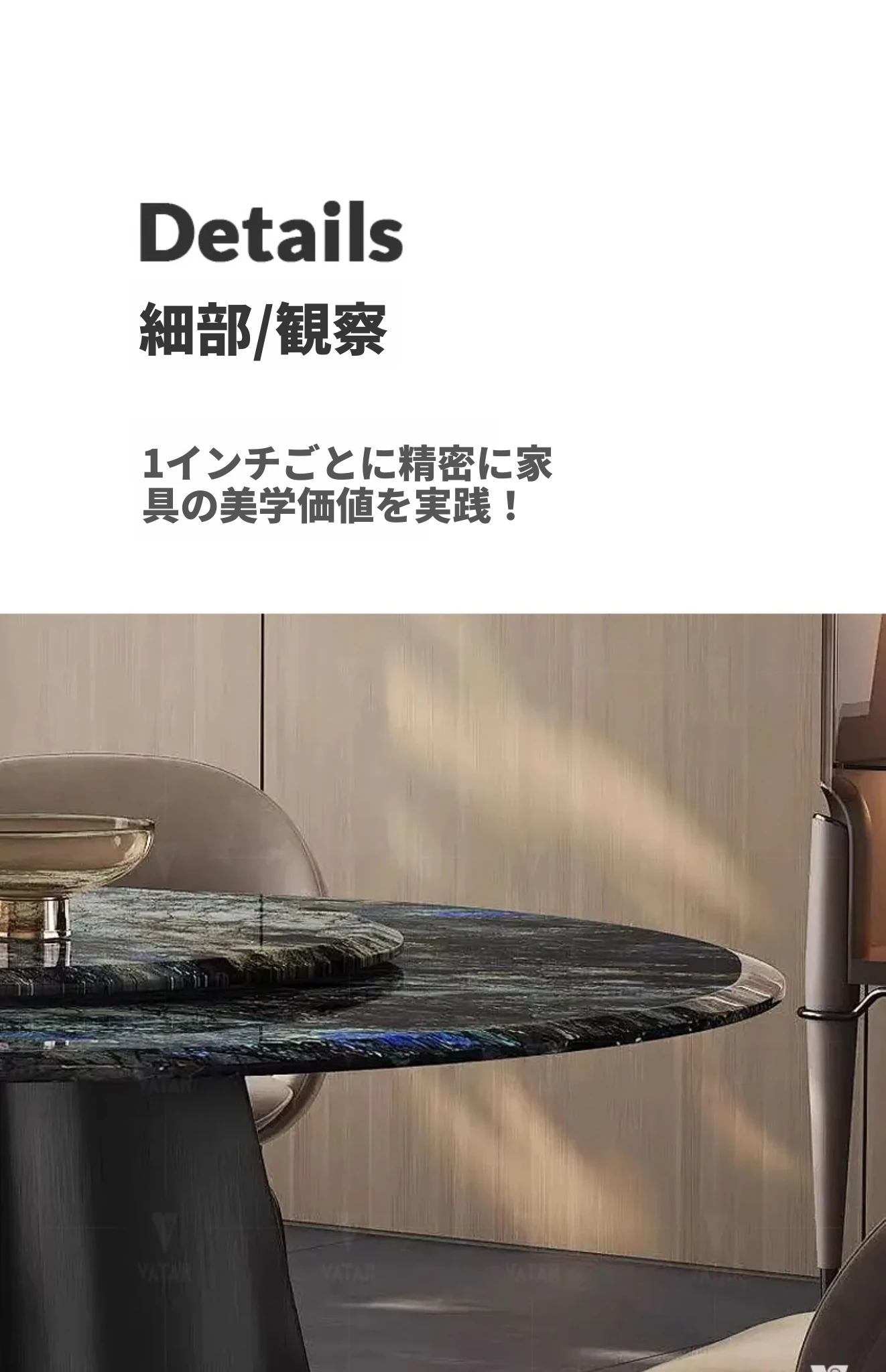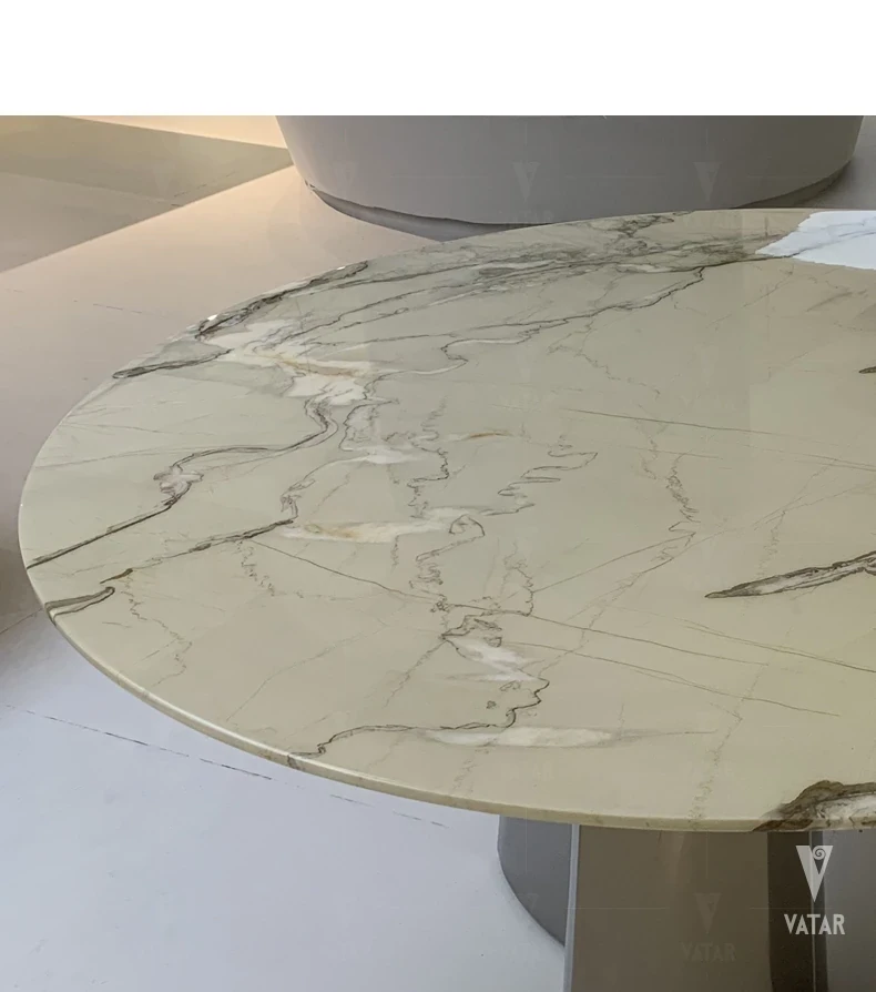 アメリカンラグジュアリーラウンドダイニングテーブル|メイク同型大理石製ラウンドテーブル|パークアベニュー風モダンテーブルで、洗練された食卓を演出!