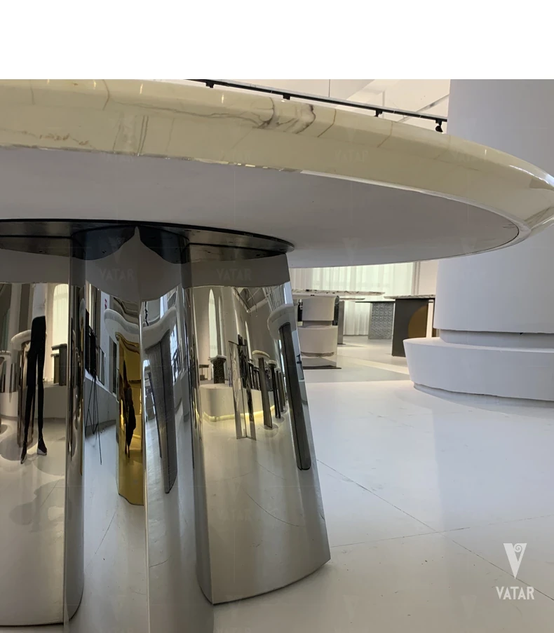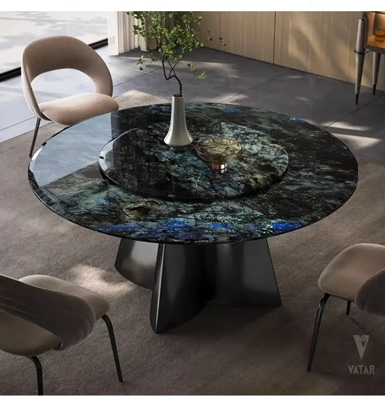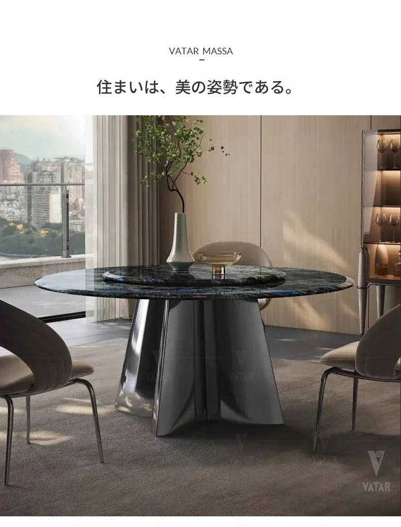 VATARヴァンダ 高級ステンレス製 イタリアンミニマルアート 軽 luxe レストラン用 丸型ダイニングテーブル 回転式プレート付き でおしゃれな食事体験を楽しもう!
