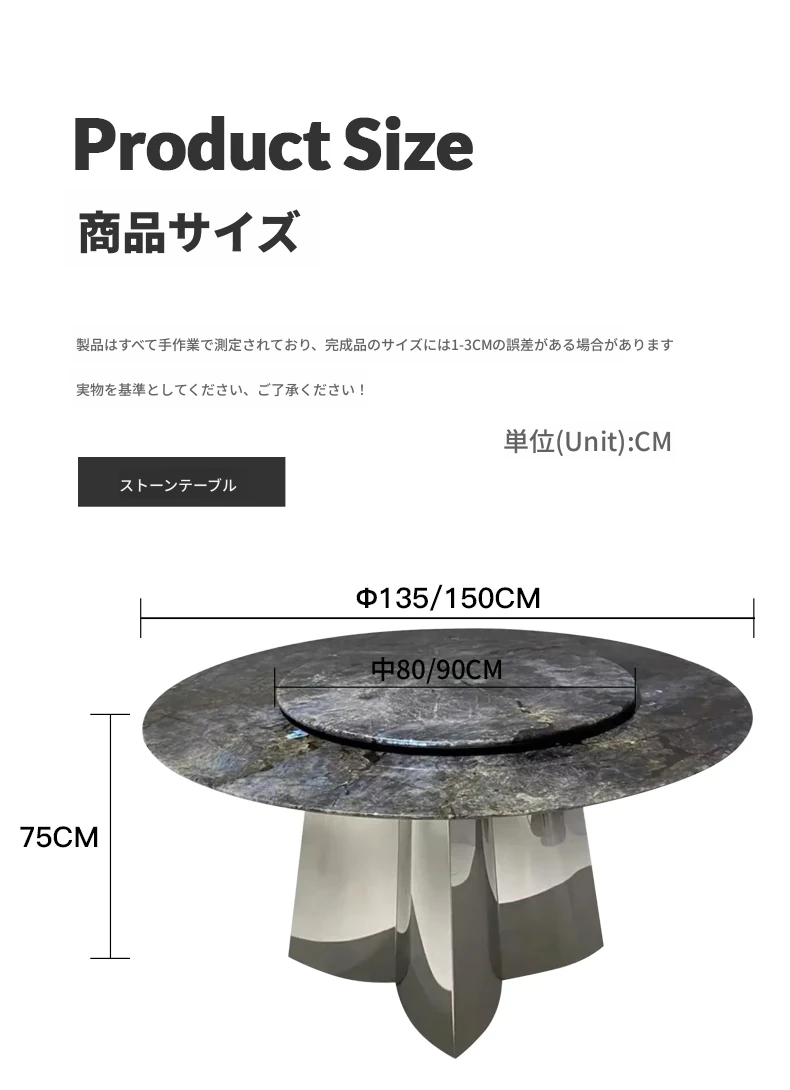 高級大理石製の円形ダイニングテーブルセット|6人・8人用|モダンでシンプルなイタリアンデザイン|回転式テーブル|家庭用に最適!おしゃれで機能的な空間を演出します。