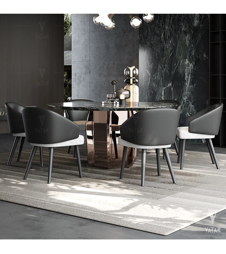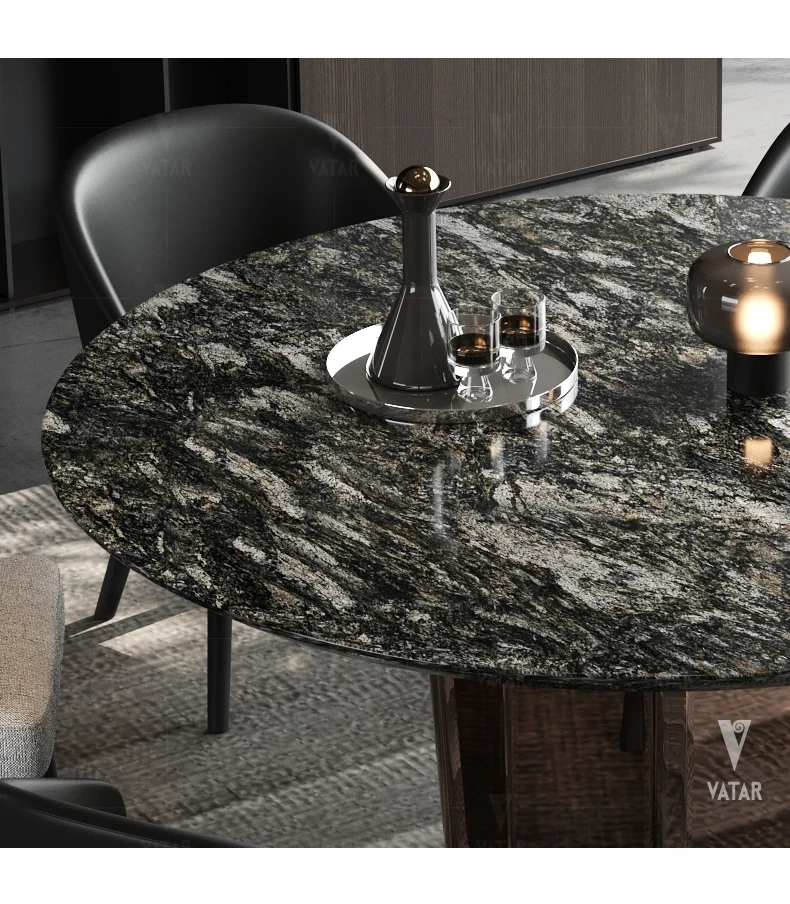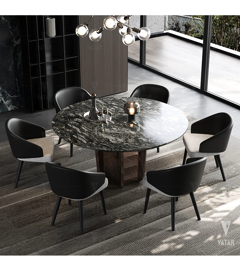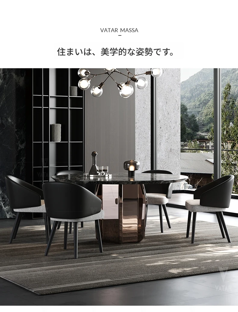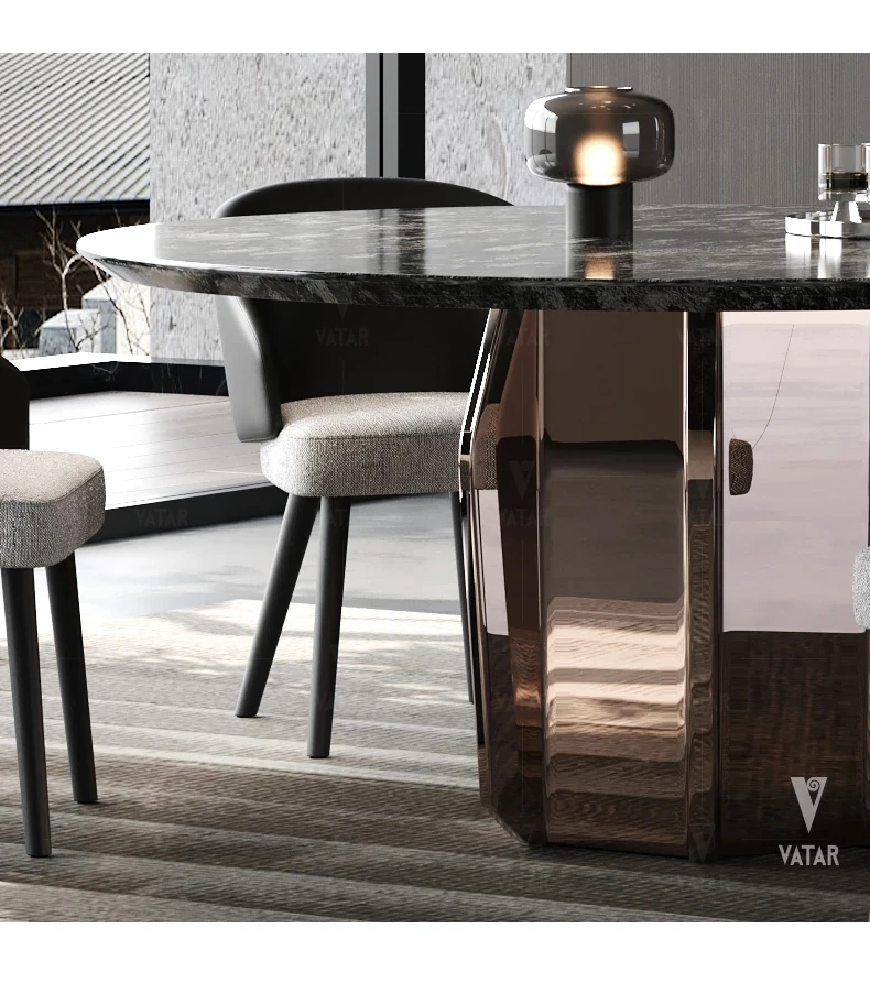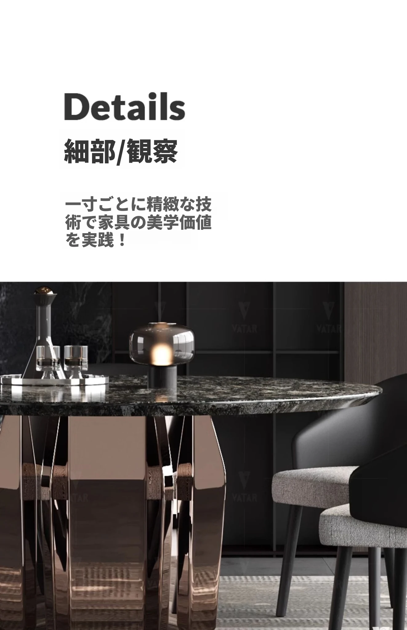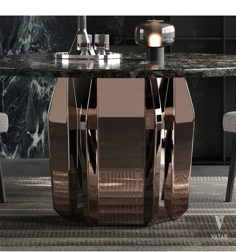 VATAR梵达ラウンドダイニングテーブル - アンティークブロンズ仕上げのステンレス製、イタリアンミニマリズムを体現した天然石の高級感あふれる食卓。家庭の食事を特別なひとときに!