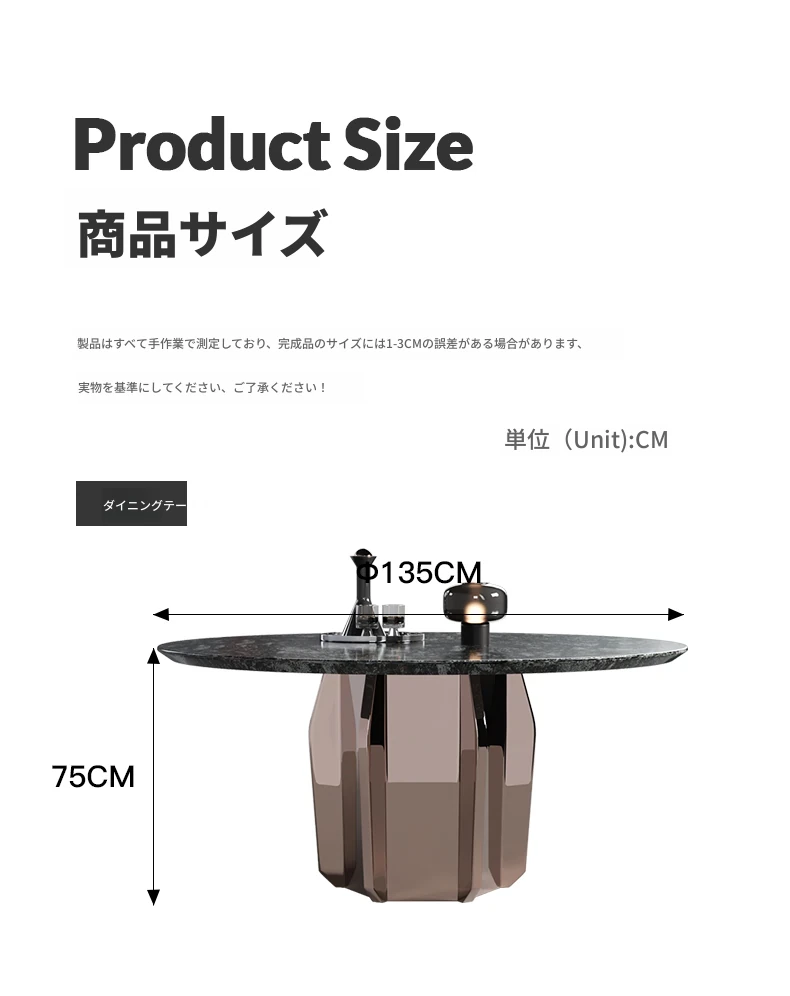 プラチナダイヤモンドラグジュアリー石製丸テーブル150*75*80cm
