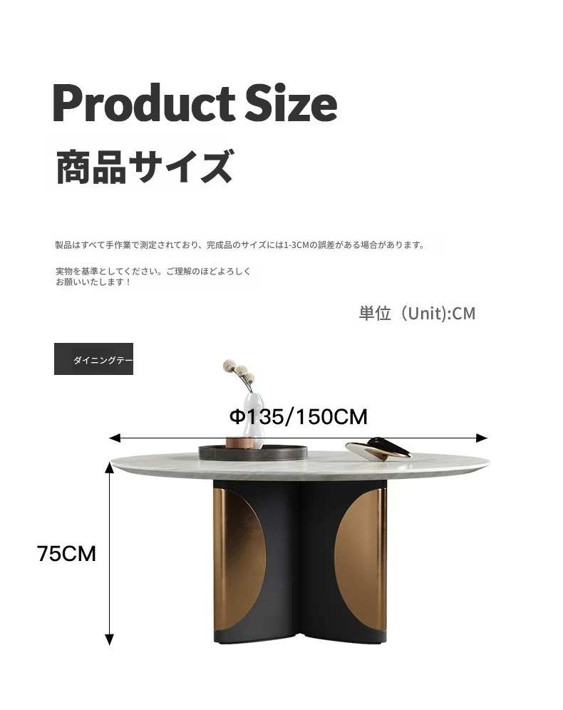 カリアイス玉天然石円形ダイニングテーブル150*75*80cm